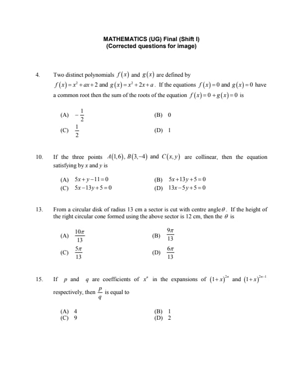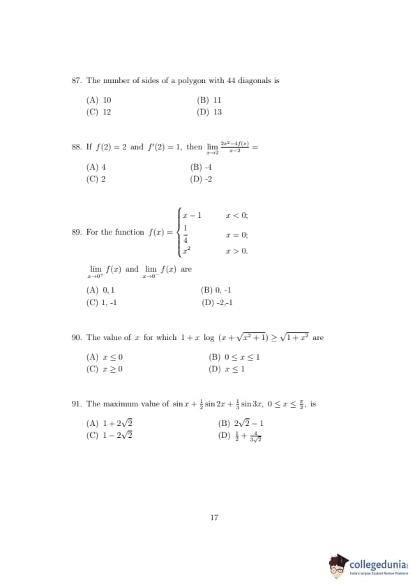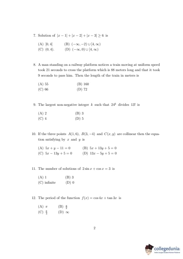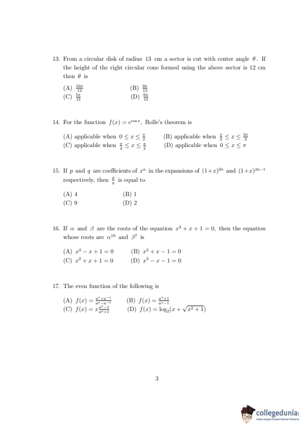 CUSAT CAT 2017 B.Tech Question Paper with Answer Key PDFs