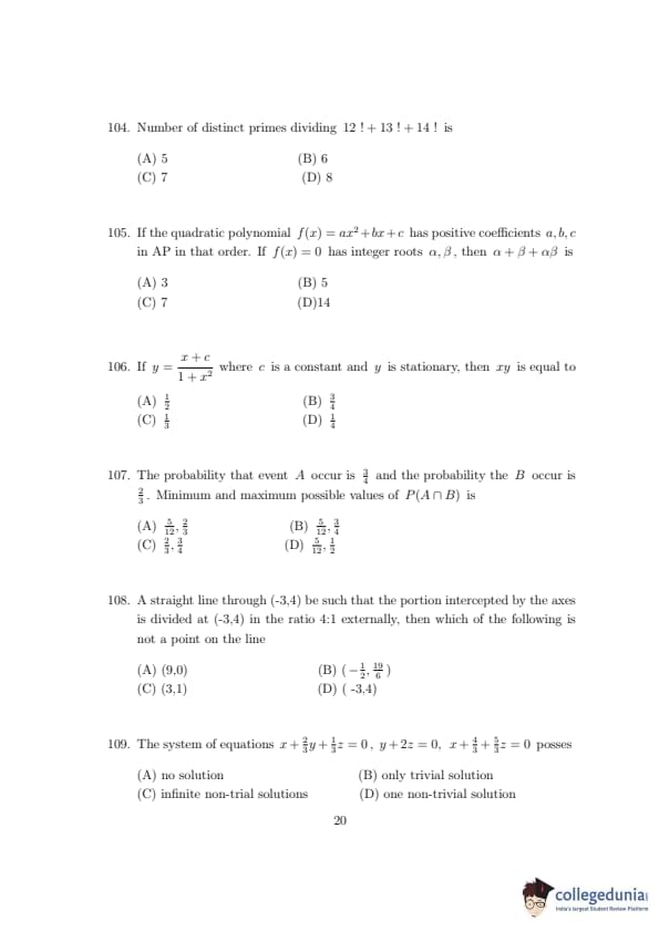 CUSAT CAT 2017 B.Tech Question paper with answer key pdf is available for download. The exam was successfully organized by Cochin University of Science & Technology. The question paper comprised a total of 125 questions.