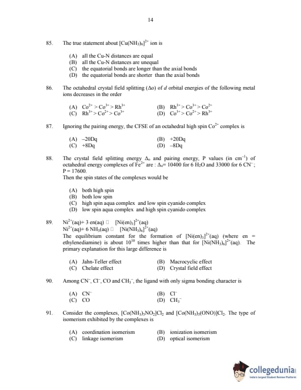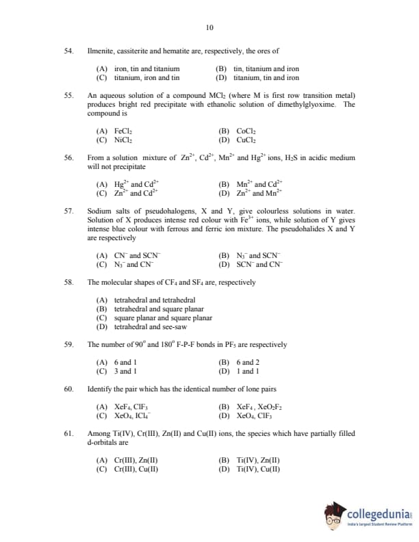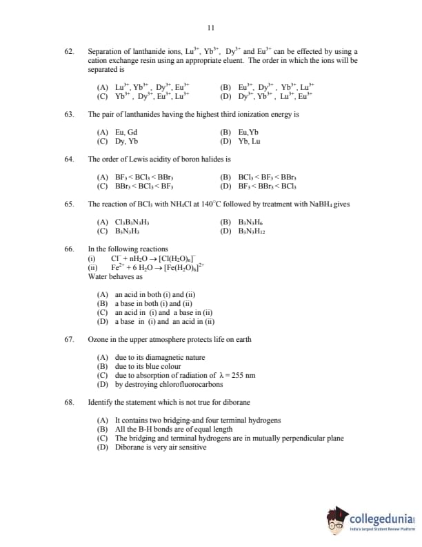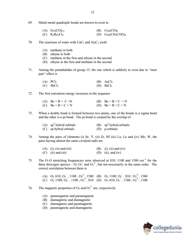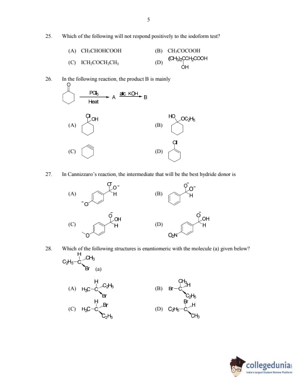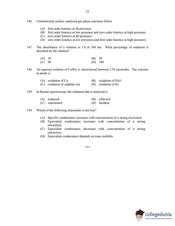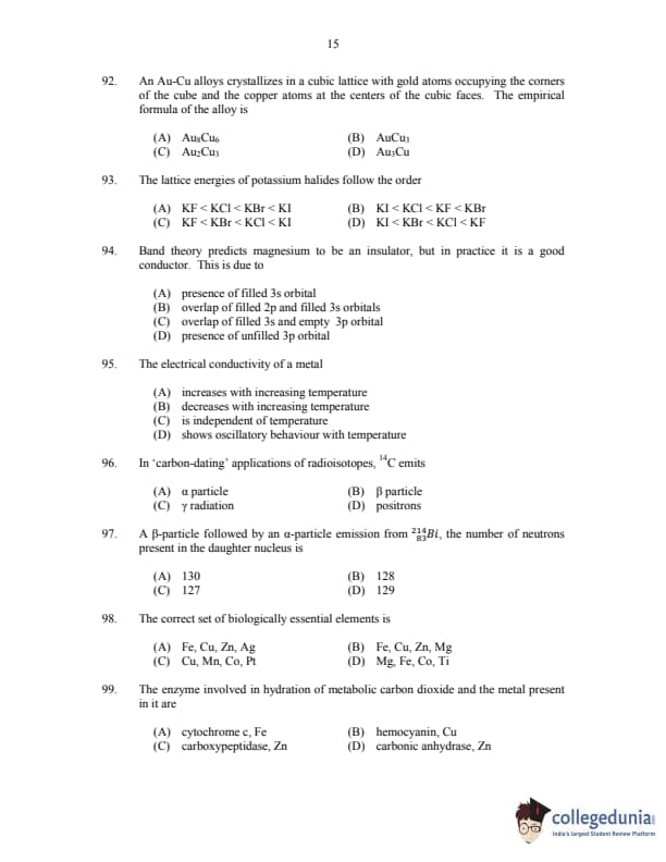CUSAT CAT 2017 Chemistry Question paper with answer key pdf is available for download. The exam was successfully organized by Cochin University of Science & Technology. The question paper comprised a total of 150 questions.