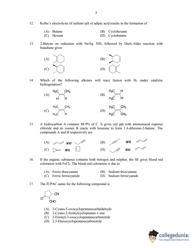 CUSAT CAT 2017 Chemistry Question Paper with Answer Key PDFs