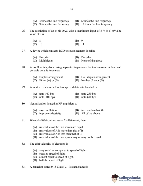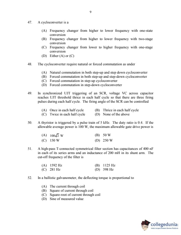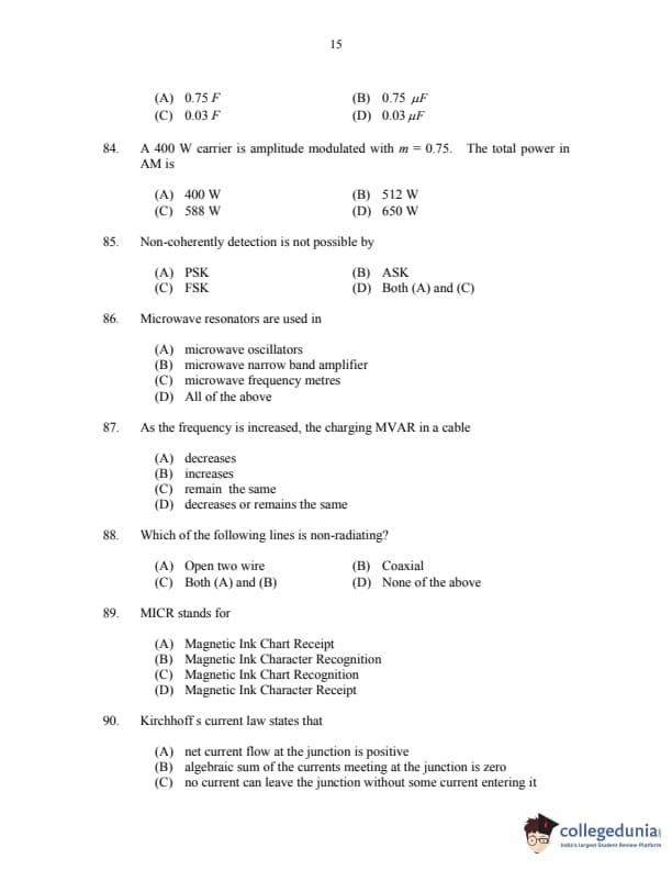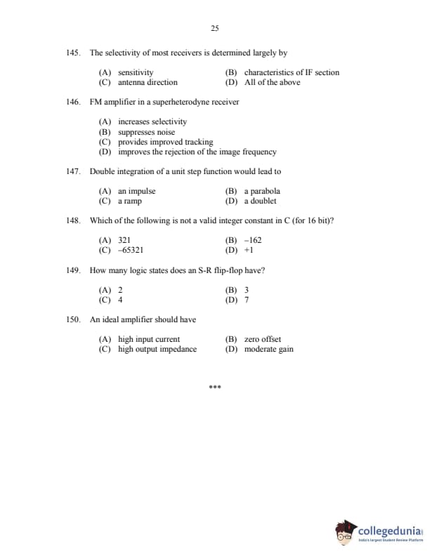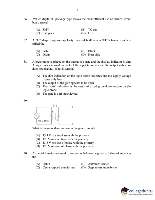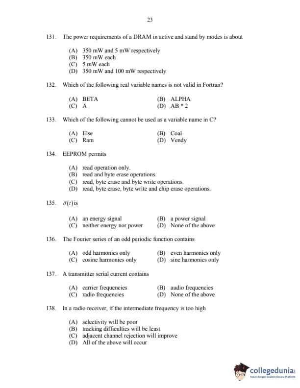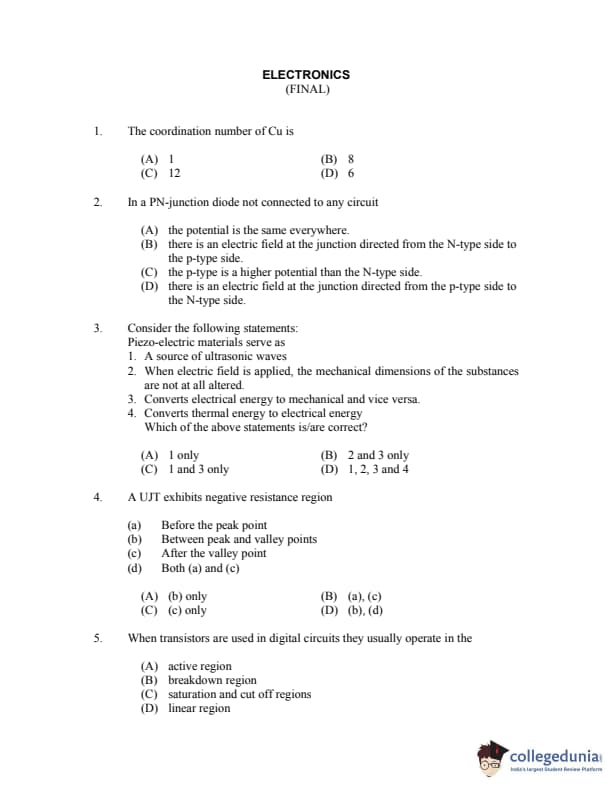CUSAT CAT 2017 Electronics Question paper with answer key pdf is available for download. The exam was successfully organized by Cochin University of Science & Technology. The question paper comprised a total of 150 questions.