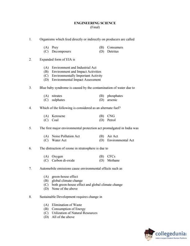 | CUSAT CAT 2017 Engineering Science Question Paper PDF | CUSAT CAT 2017 Engineering Science Answer Key PDF |