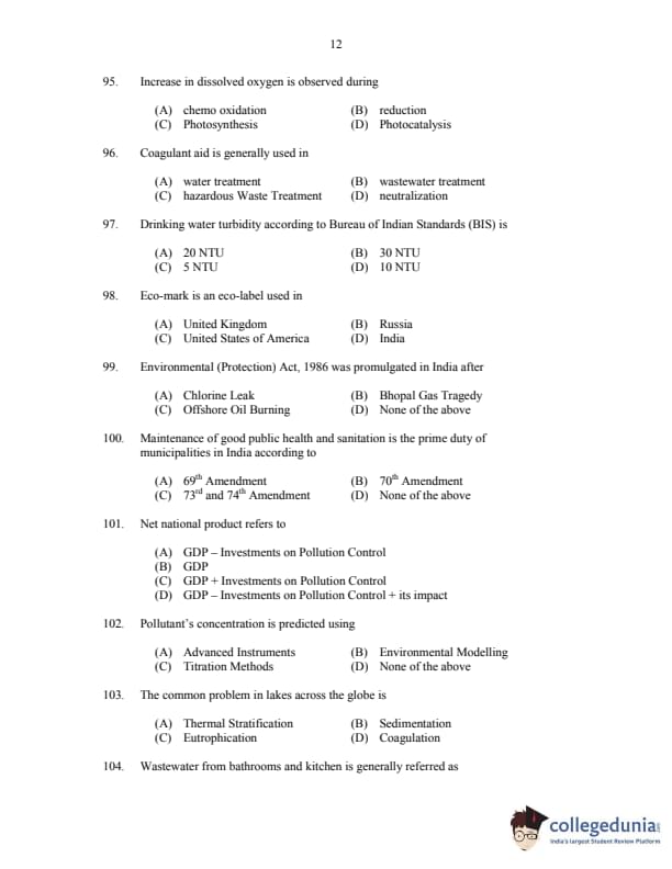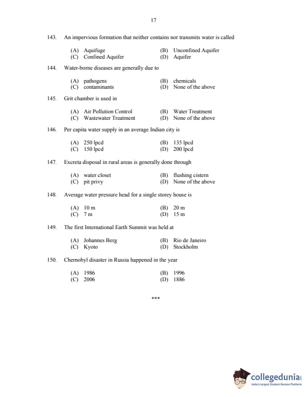 CUSAT CAT 2017 Engineering Science Question paper with answer key pdf is available for download. The exam was successfully organized by Cochin University of Science & Technology. The question paper comprised a total of 150 questions.