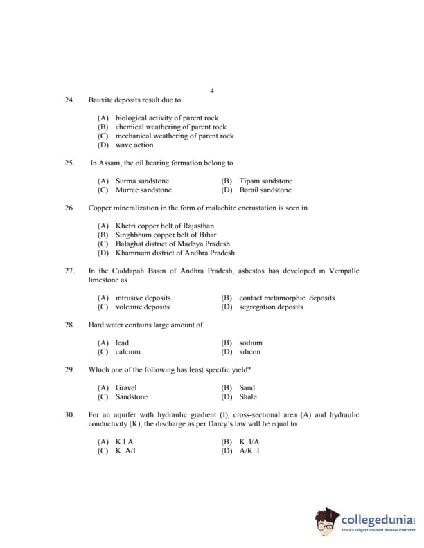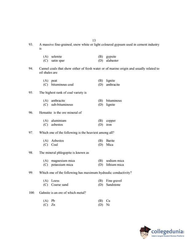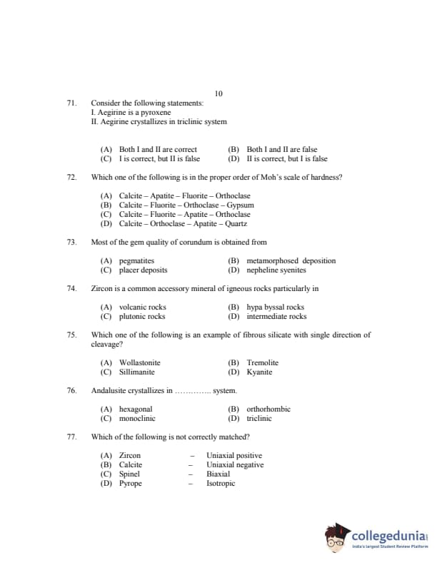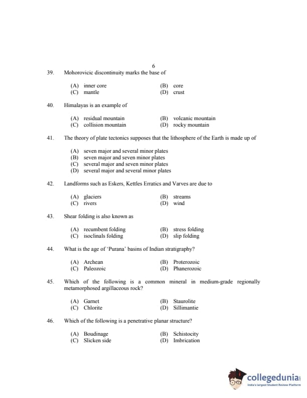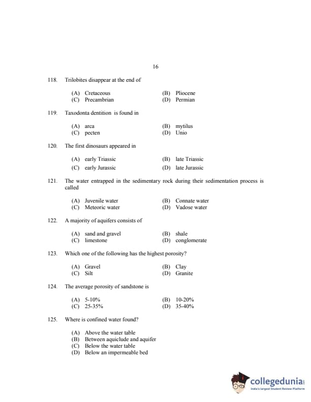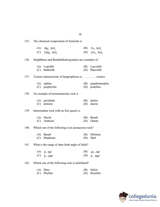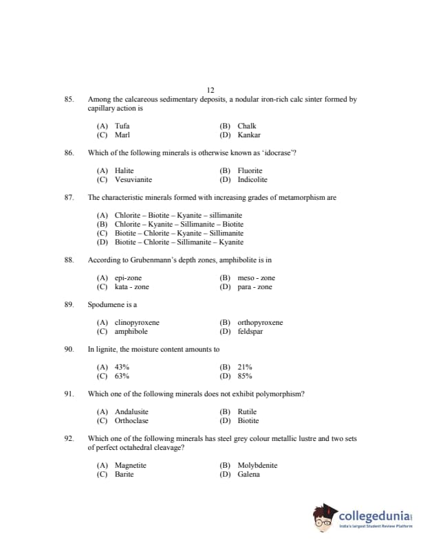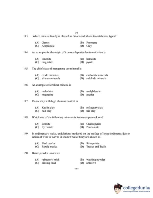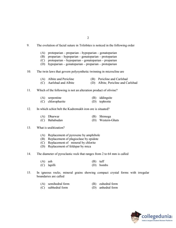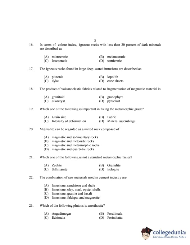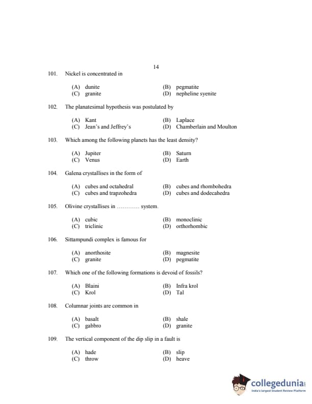 CUSAT CAT 2017 Geology Question paper with answer key pdf is available for download. The exam was successfully organized by Cochin University of Science & Technology. The question paper comprised a total of 150 questions.