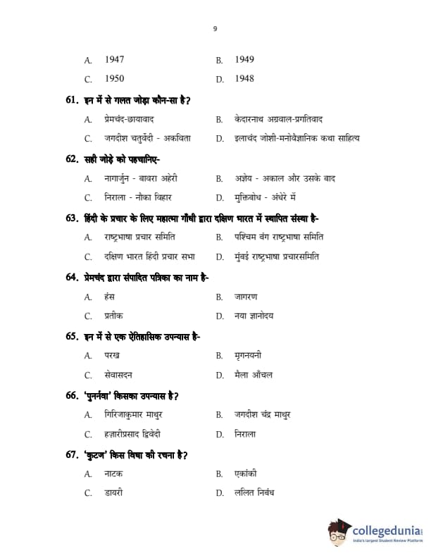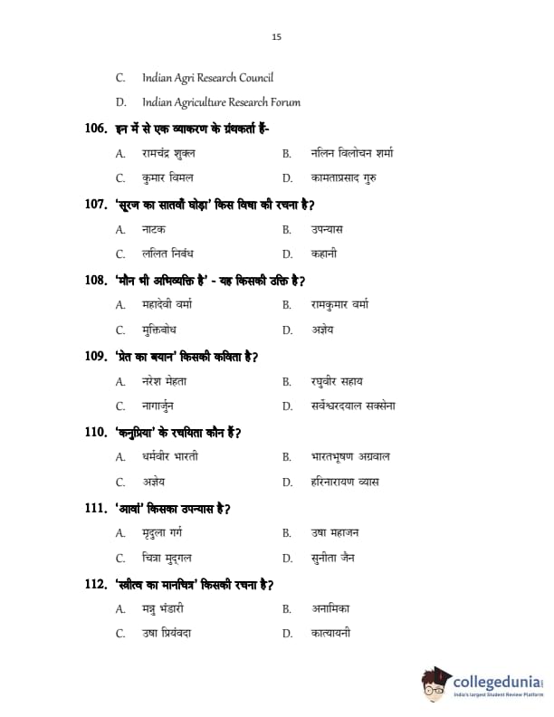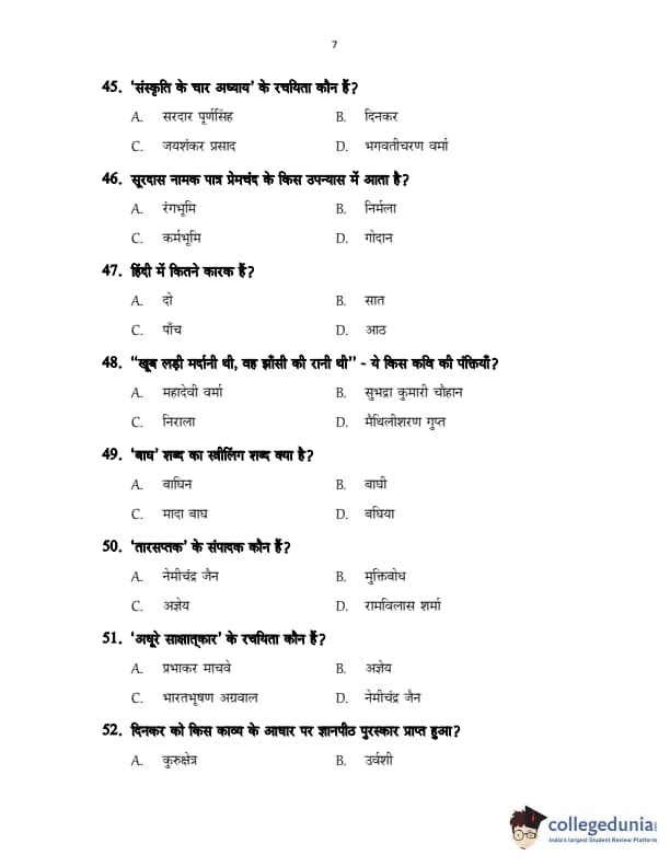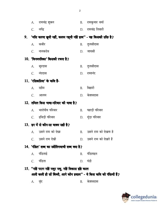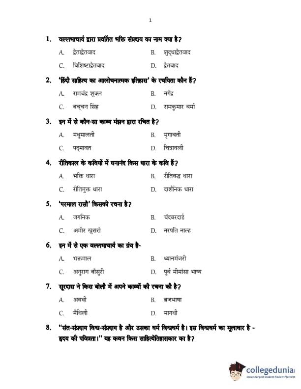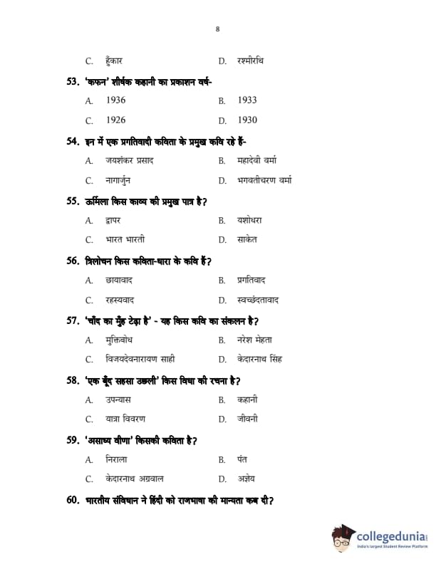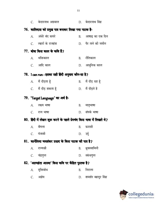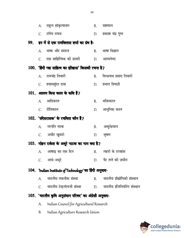 CUSAT CAT 2017 Hindi Question Paper with Answer Key PDFs in Hindi