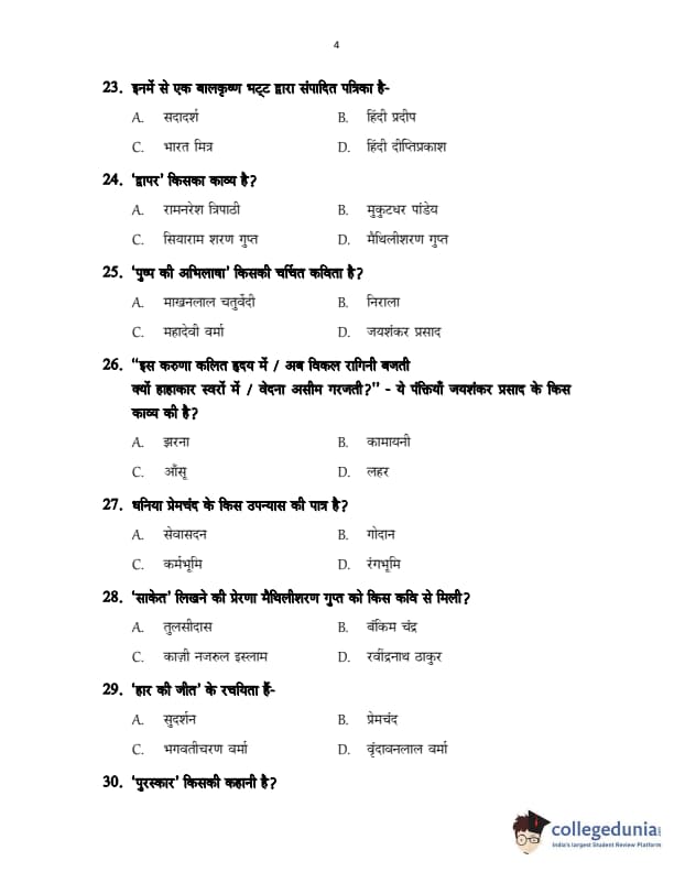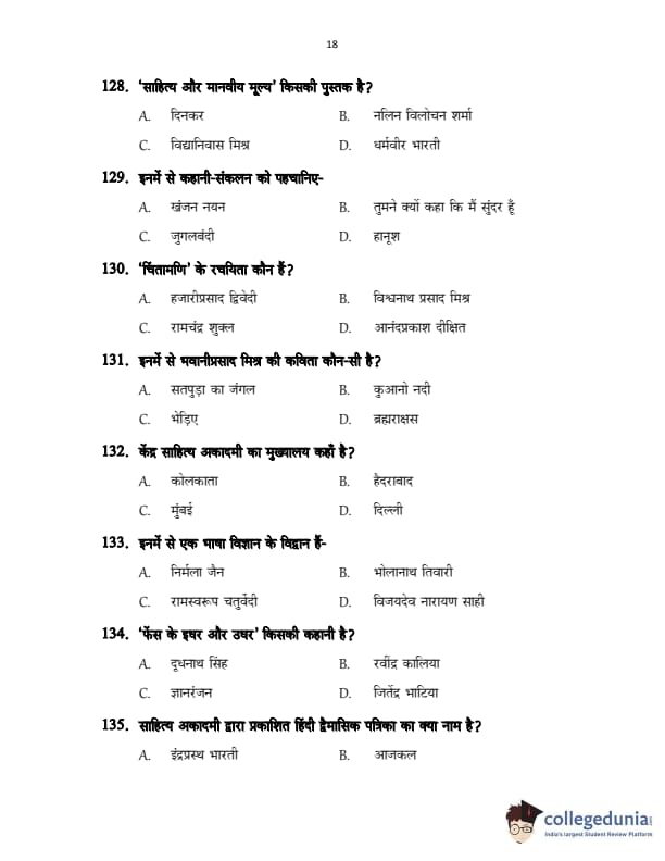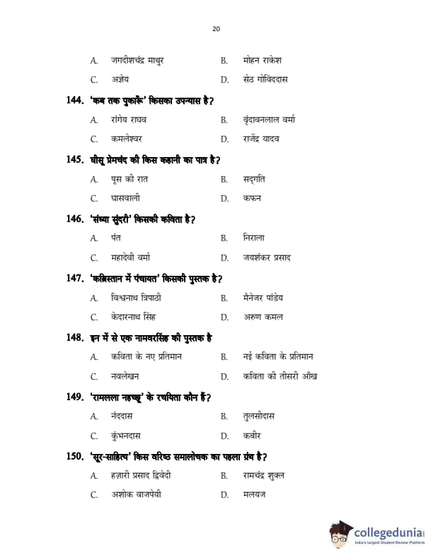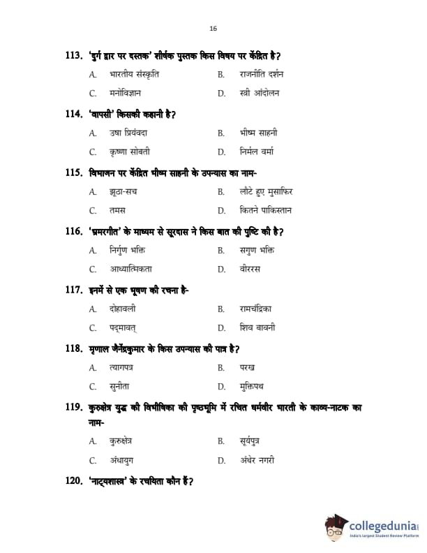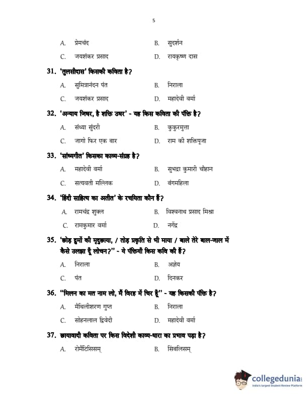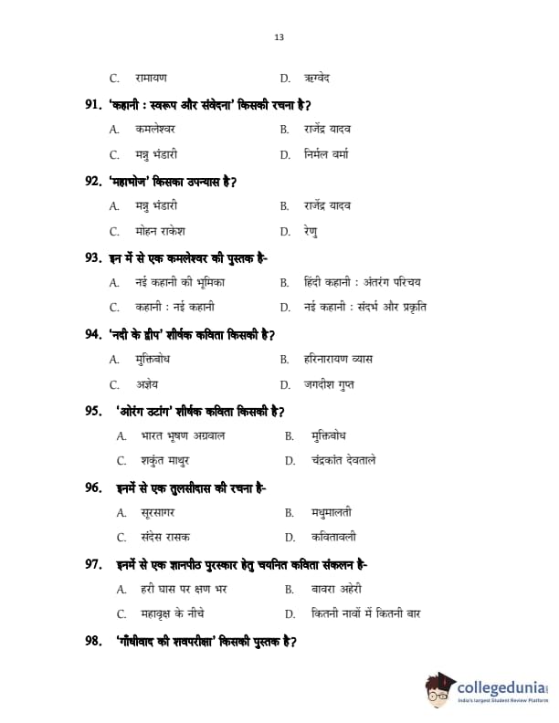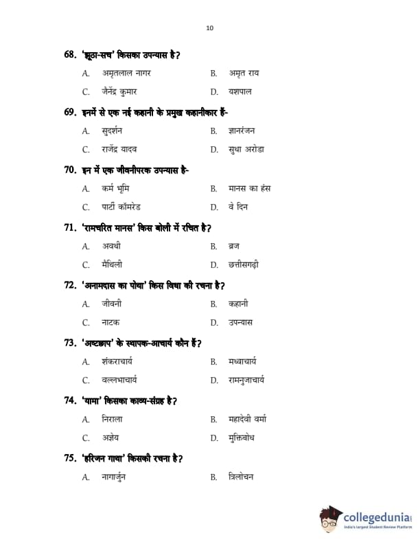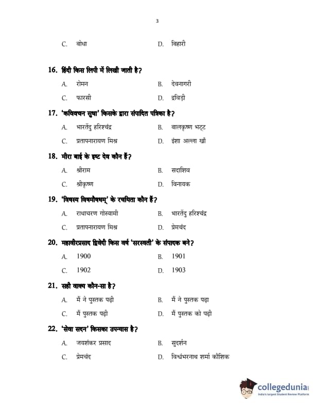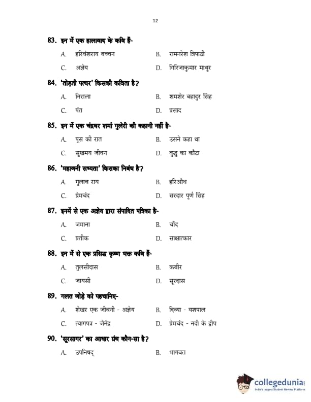 CUSAT CAT 2017 Hindi Question Paper with Answer Key PDFs in Hindi