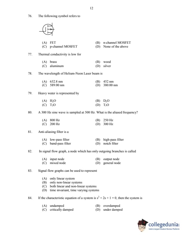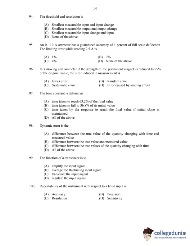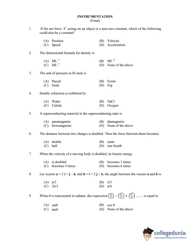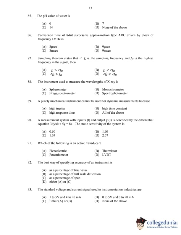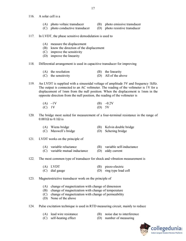 CUSAT CAT 2017 Instrumentation Question paper with answer key pdf is available for download. The exam was successfully organized by Cochin University of Science & Technology. The question paper comprised a total of 150 questions.