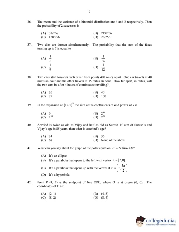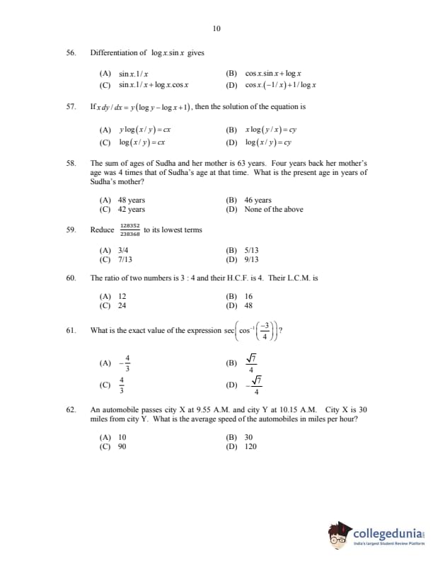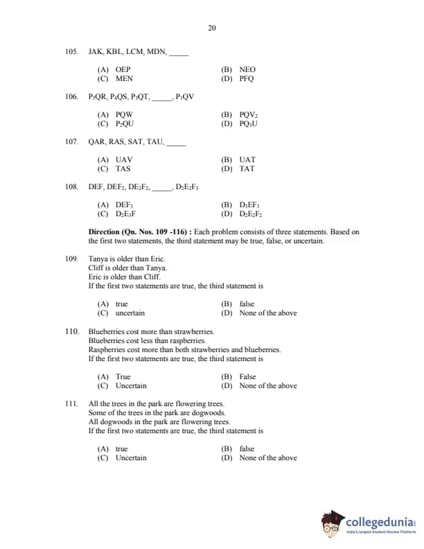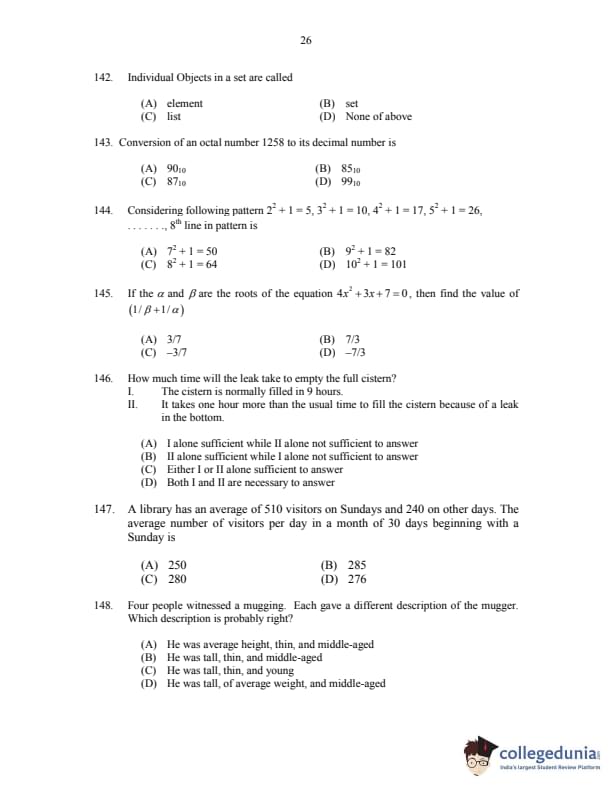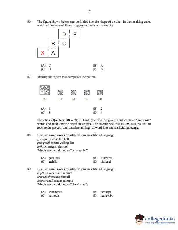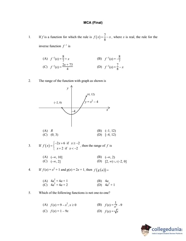 CUSAT CAT 2017 MCA Question Paper with Answer Key PDFs