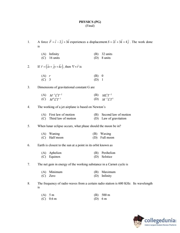 | CUSAT CAT 2017 Physics Question Paper PDF | CUSAT CAT 2017 Physics Answer Key PDF |