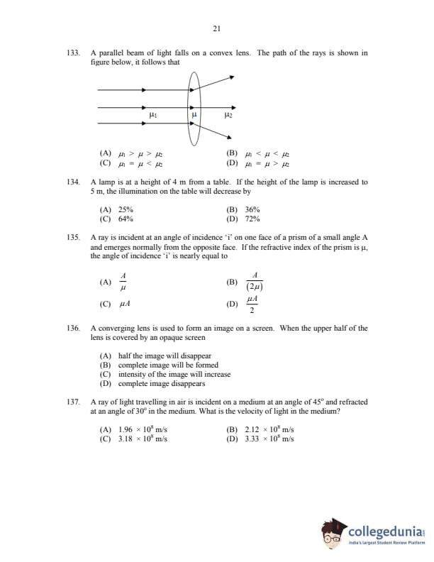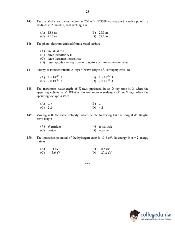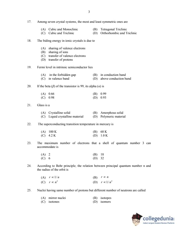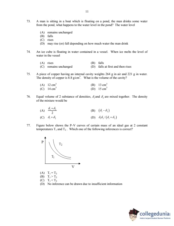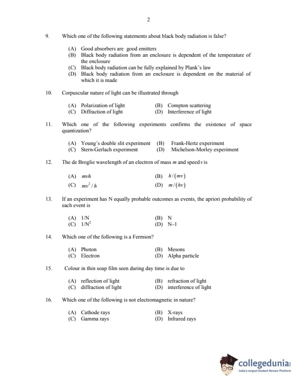 CUSAT CAT 2017 Physics Question paper with answer key pdf is available for download. The exam was successfully organized by Cochin University of Science & Technology. The question paper comprised a total of 150 questions.