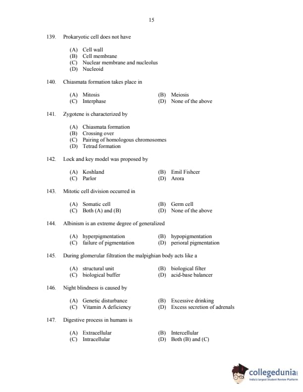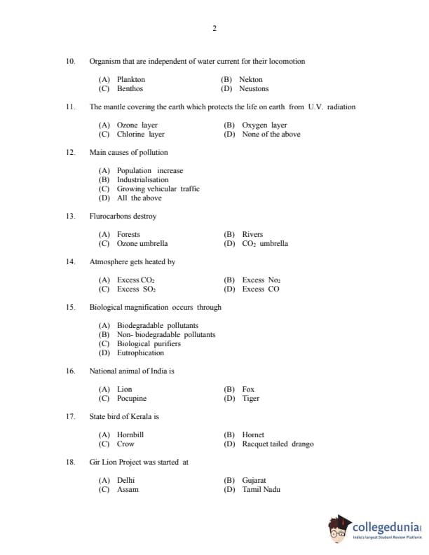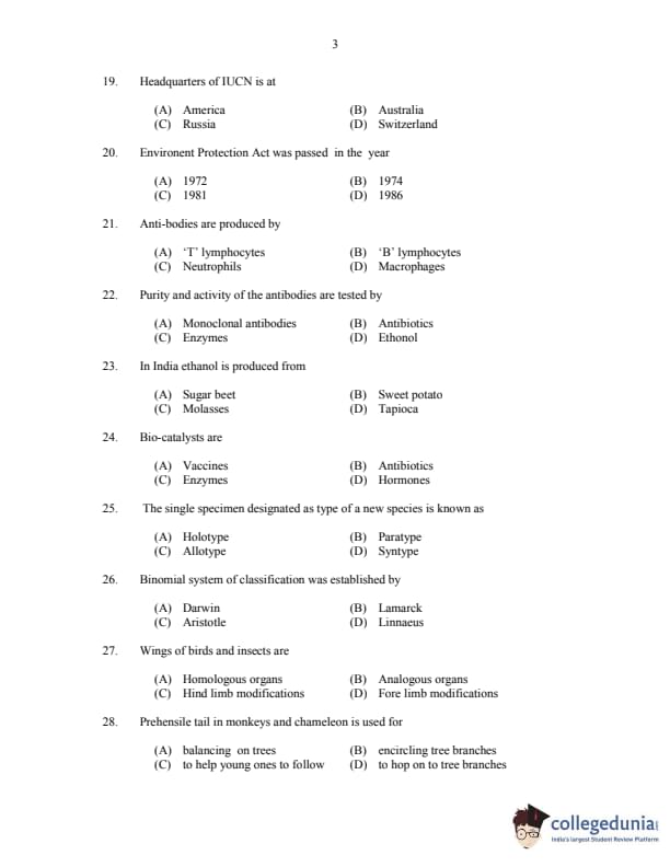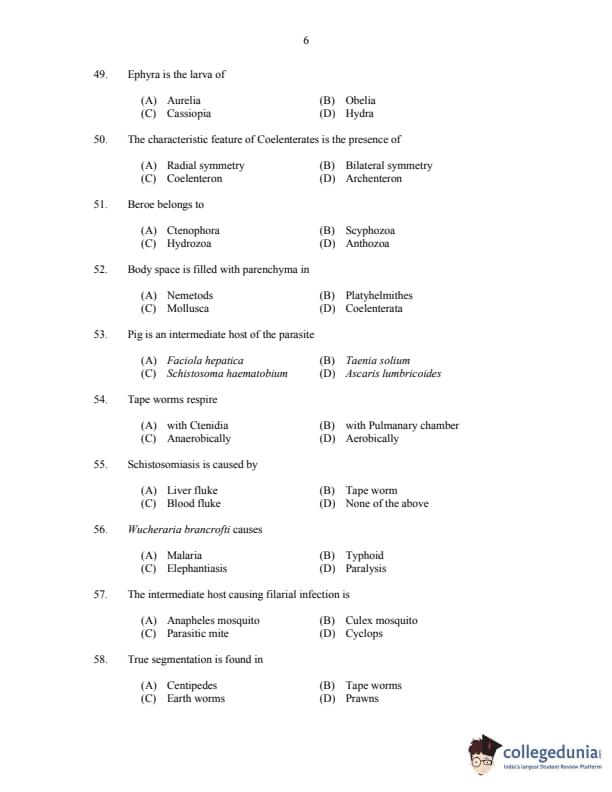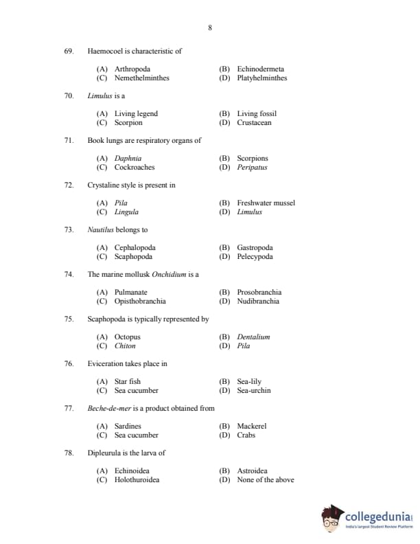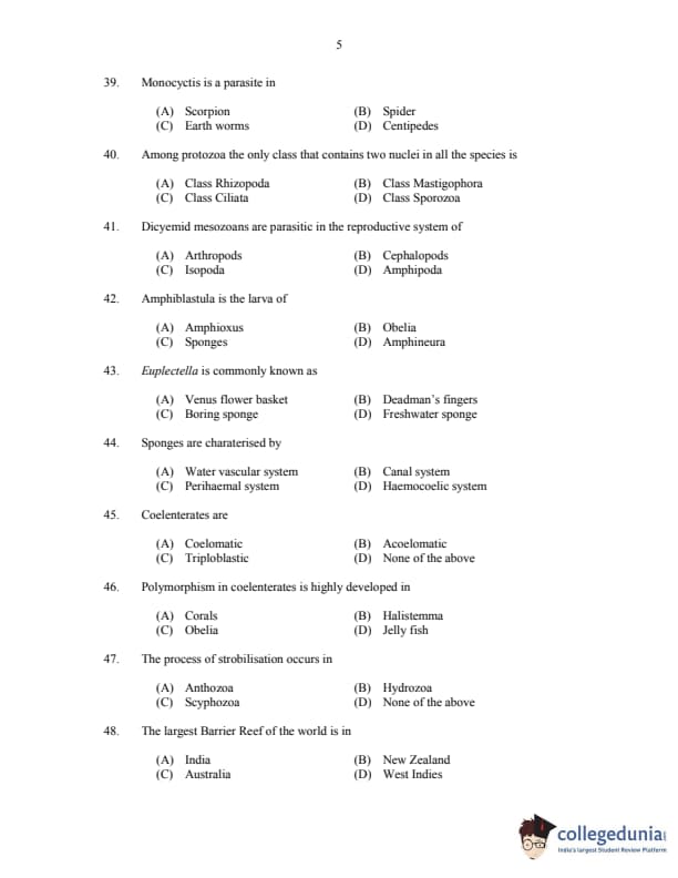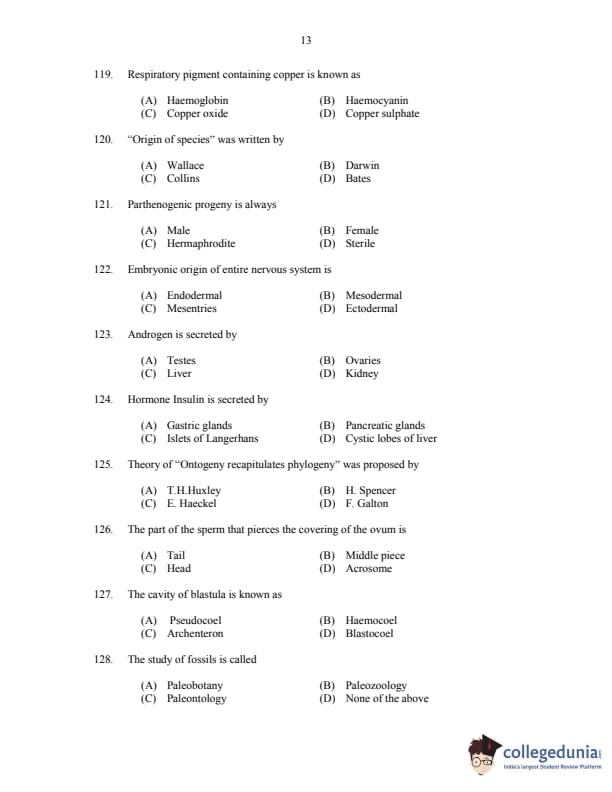 CUSAT CAT 2017 Zoology Question paper with answer key pdf is available for download. The exam was successfully organized by Cochin University of Science & Technology. The question paper comprised a total of 150 questions.