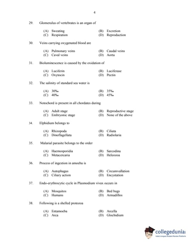 CUSAT CAT 2017 Zoology Question Paper with Answer Key PDFs