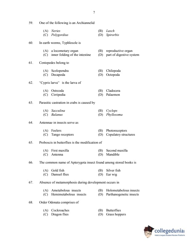 | CUSAT CAT 2017 Zoology Question Paper PDF | CUSAT CAT 2017 Zoology Answer Key PDF |