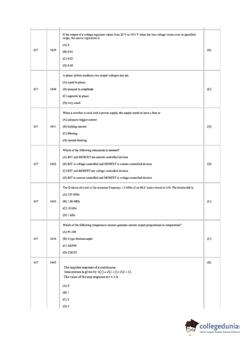 CUSAT CAT 2018 Instrumentation Question paper with answer key pdf is available for download. The exam was successfully organized by Cochin University of Science & Technology. The question paper comprised a total of 150 questions.
