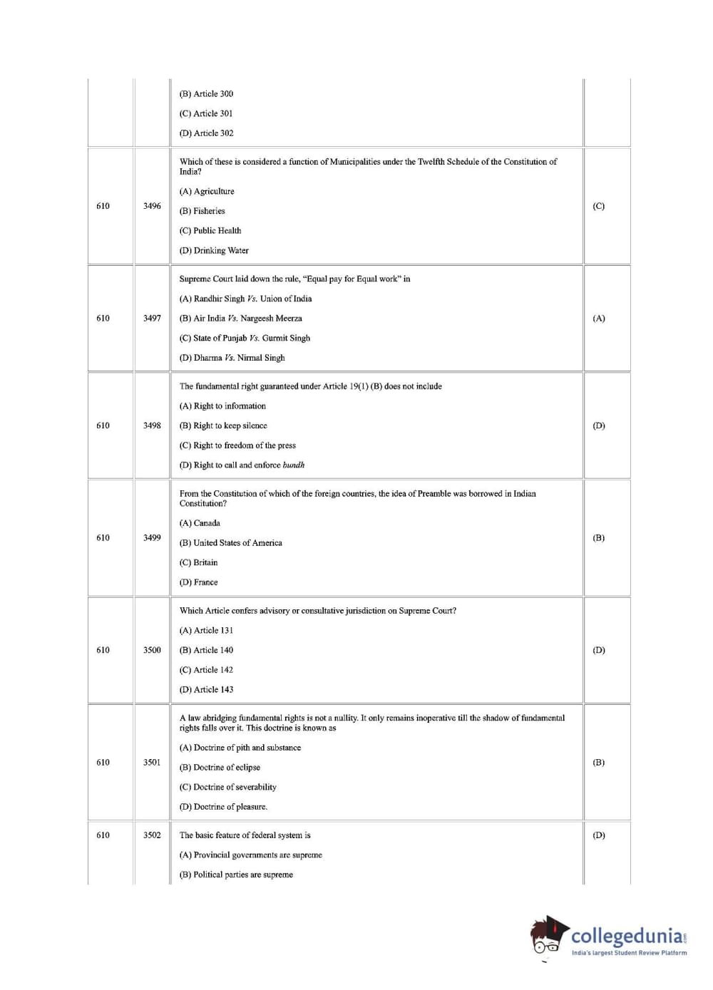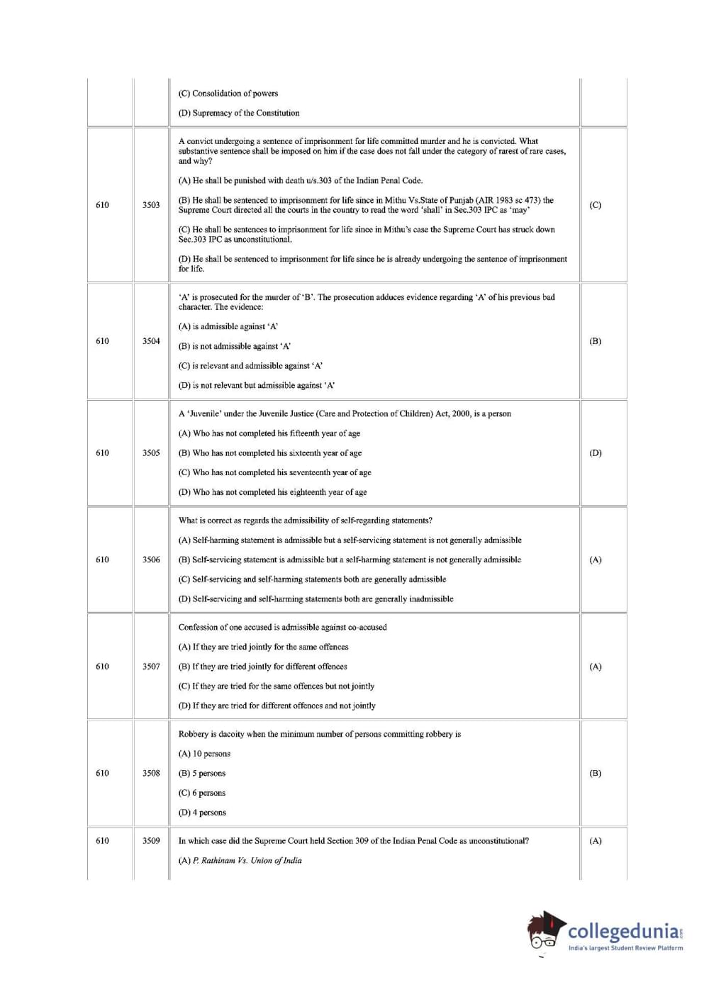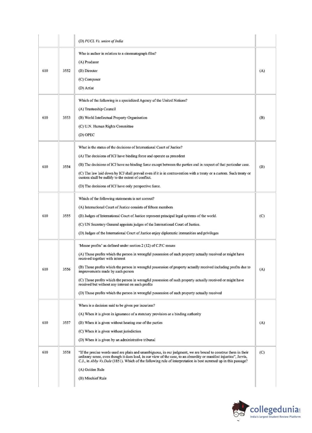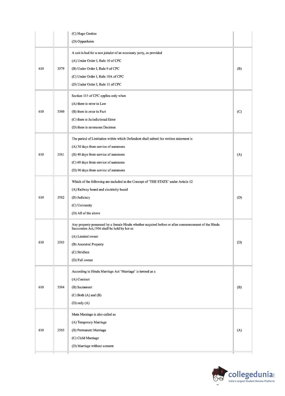 | CUSAT CAT 2018 LLM Question Paper PDF | CUSAT CAT 2018 LLM Answer Key PDF |