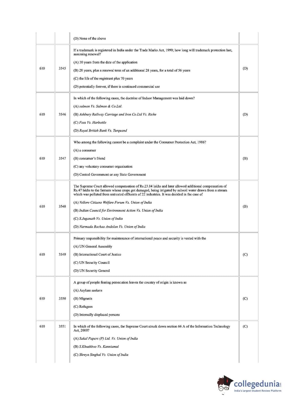 CUSAT CAT 2018 LLM Question Paper with Answer Key PDFs