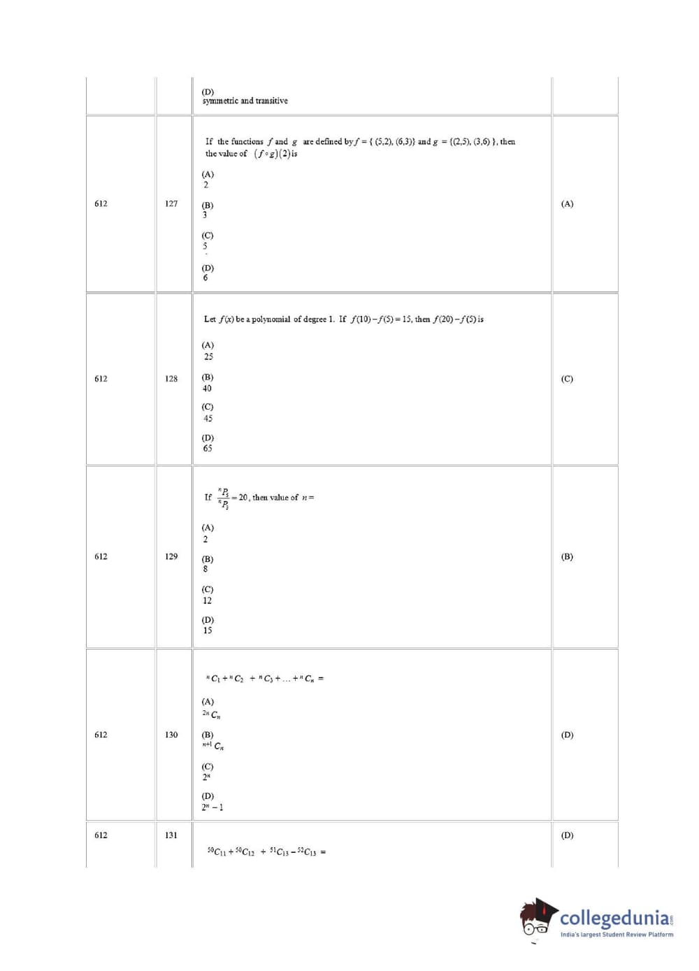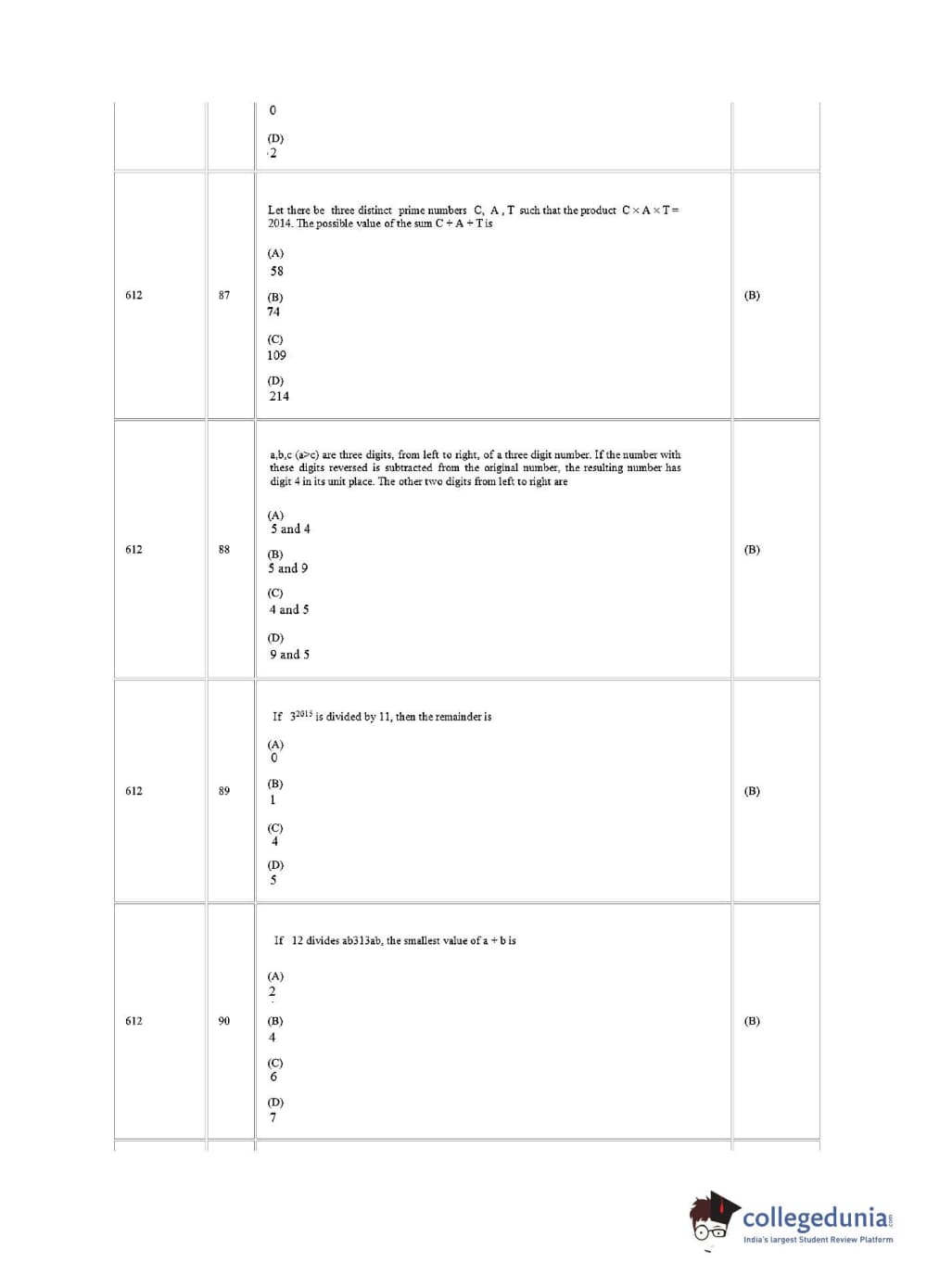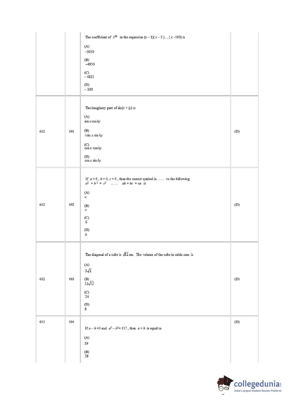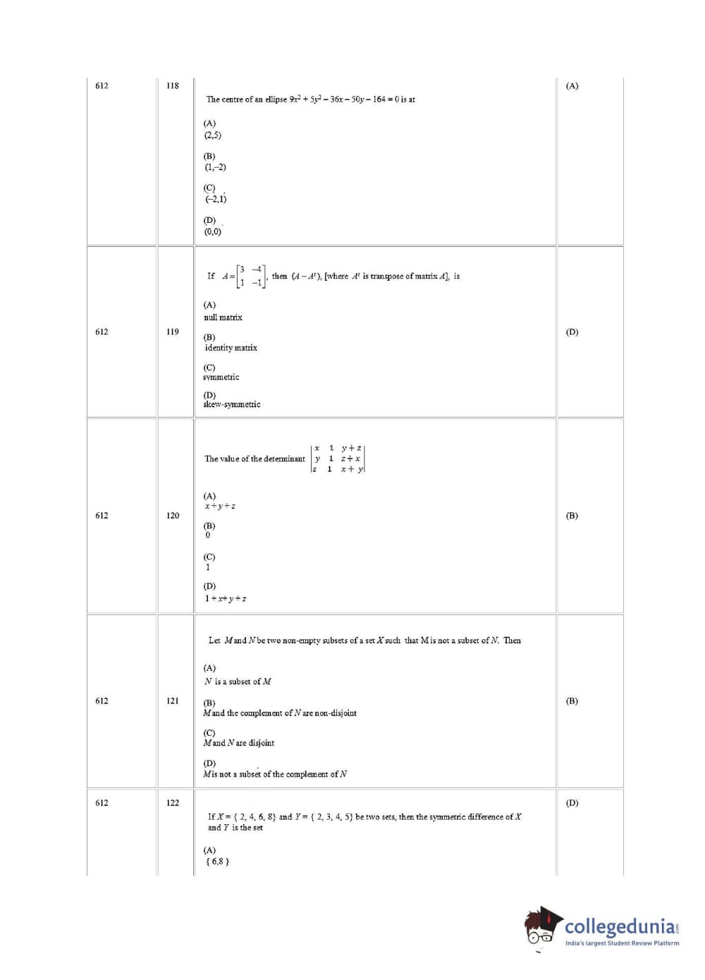 CUSAT CAT 2018 Mathematics Question paper with answer key pdf is available for download. The exam was successfully organized by Cochin University of Science & Technology. The question paper comprised a total of 150 questions.