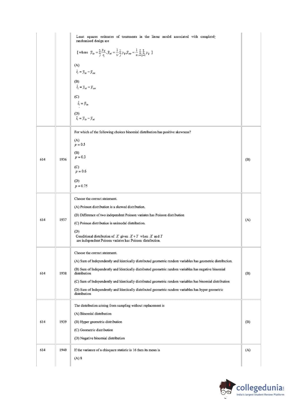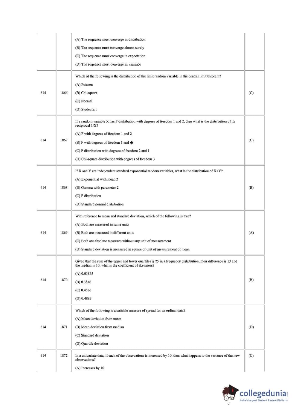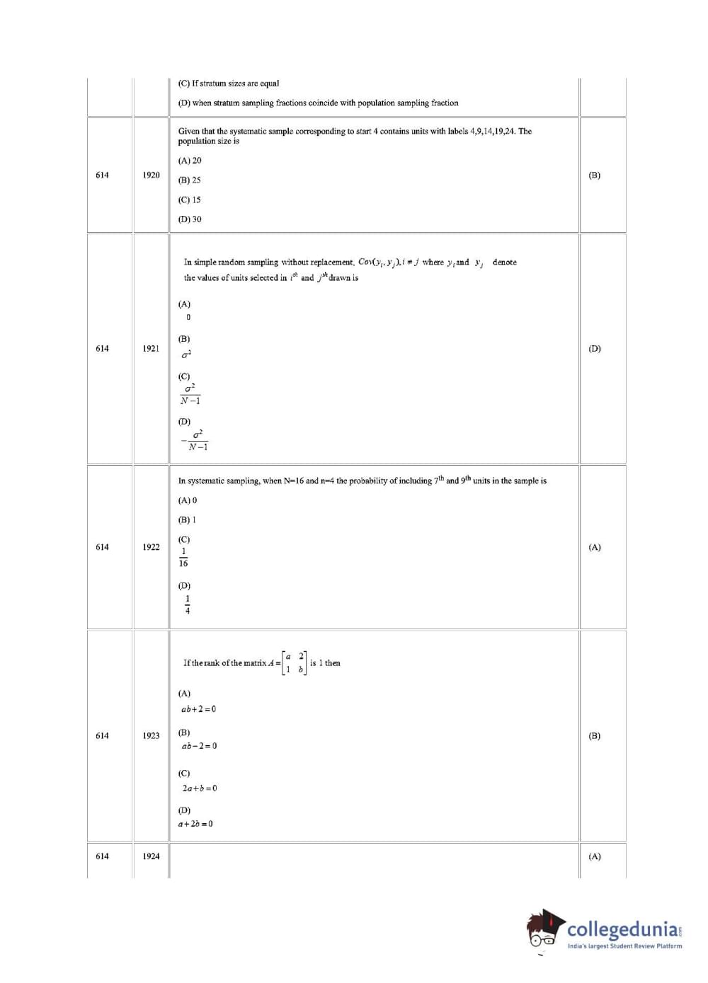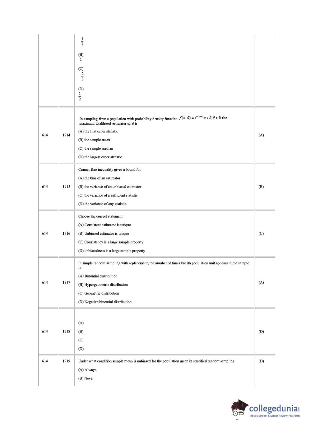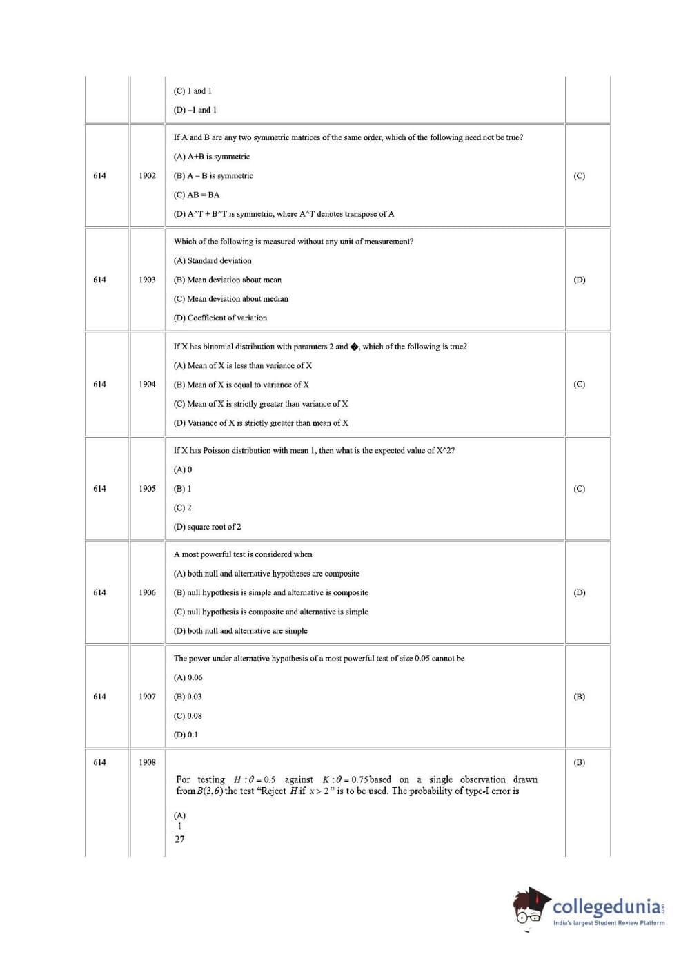 | CUSAT CAT 2018 Statistics Question Paper PDF | CUSAT CAT 2018 Statistics Answer Key PDF |