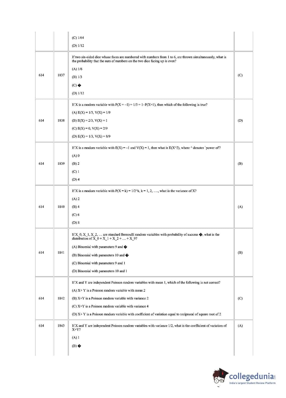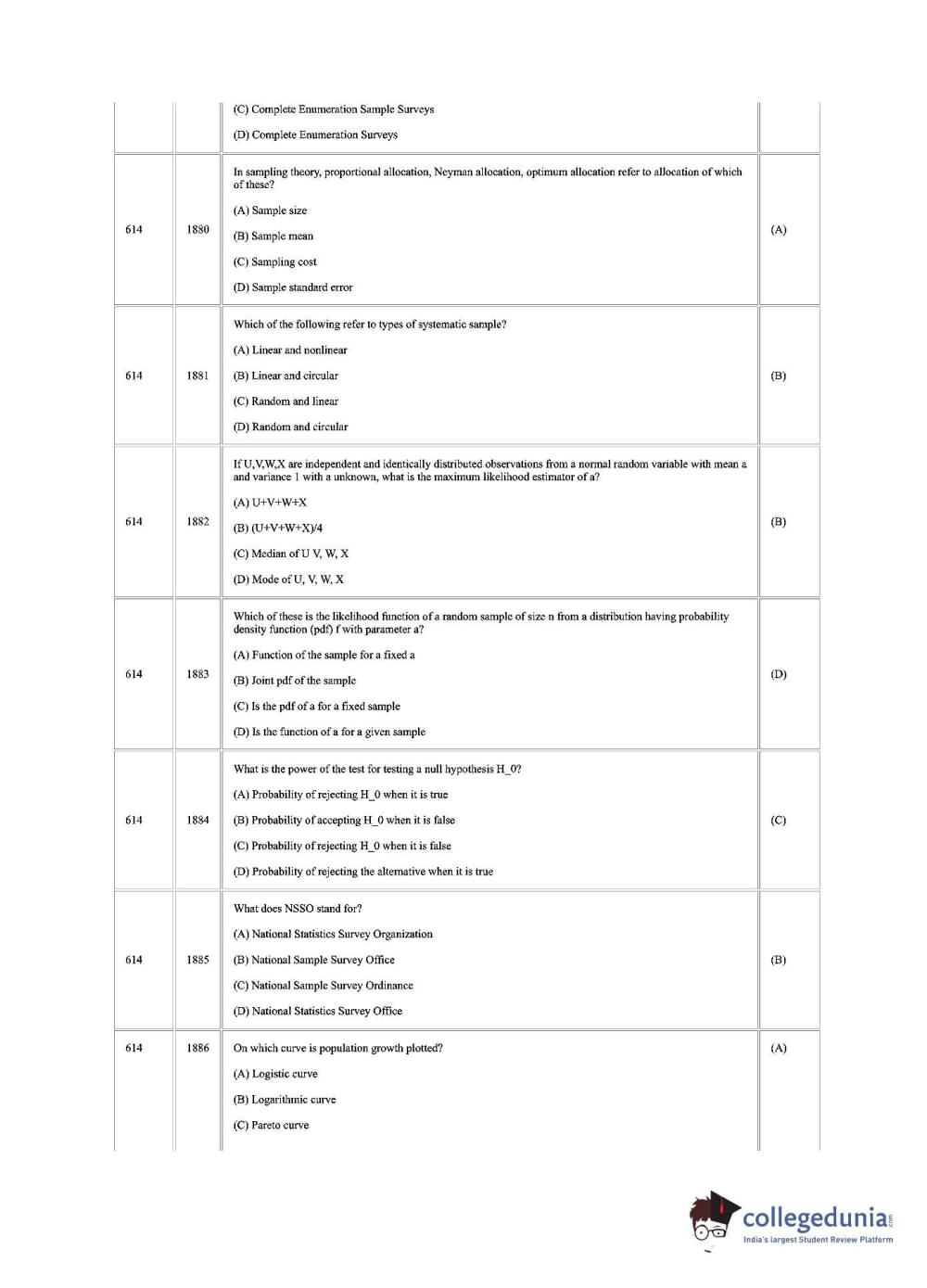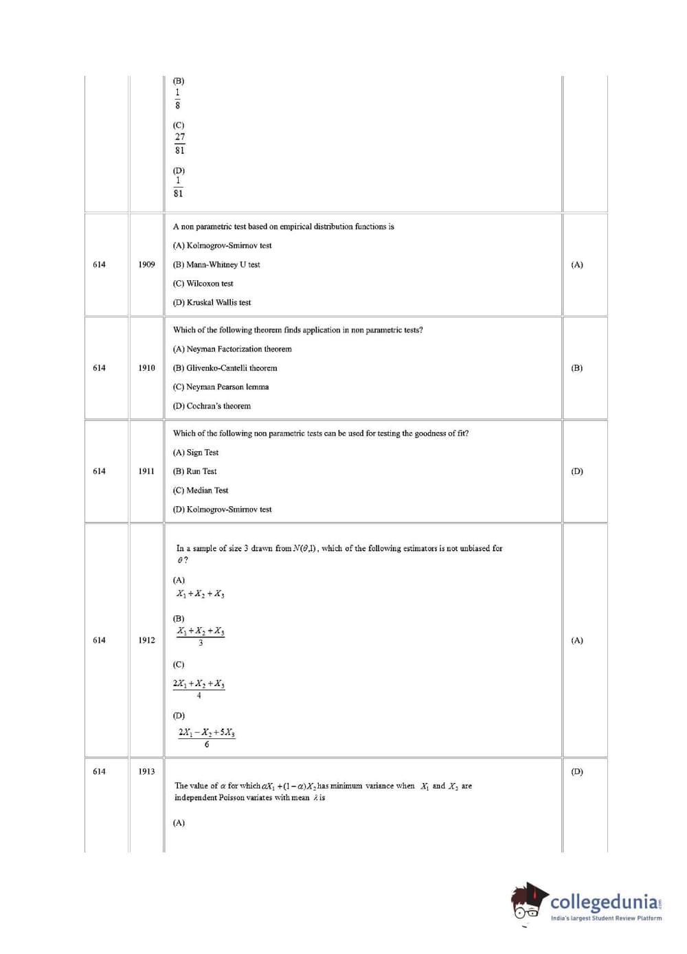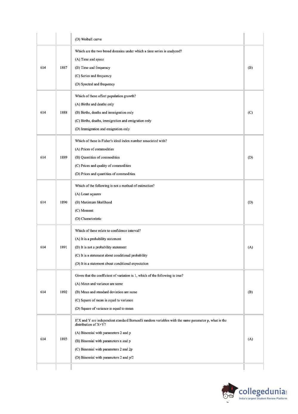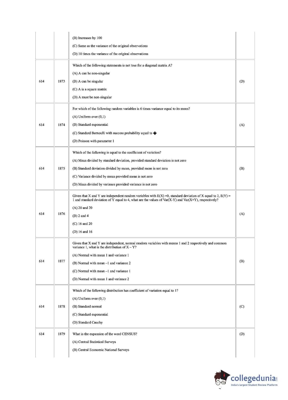 CUSAT CAT 2018 Statistics Question Paper with Answer Key PDFs