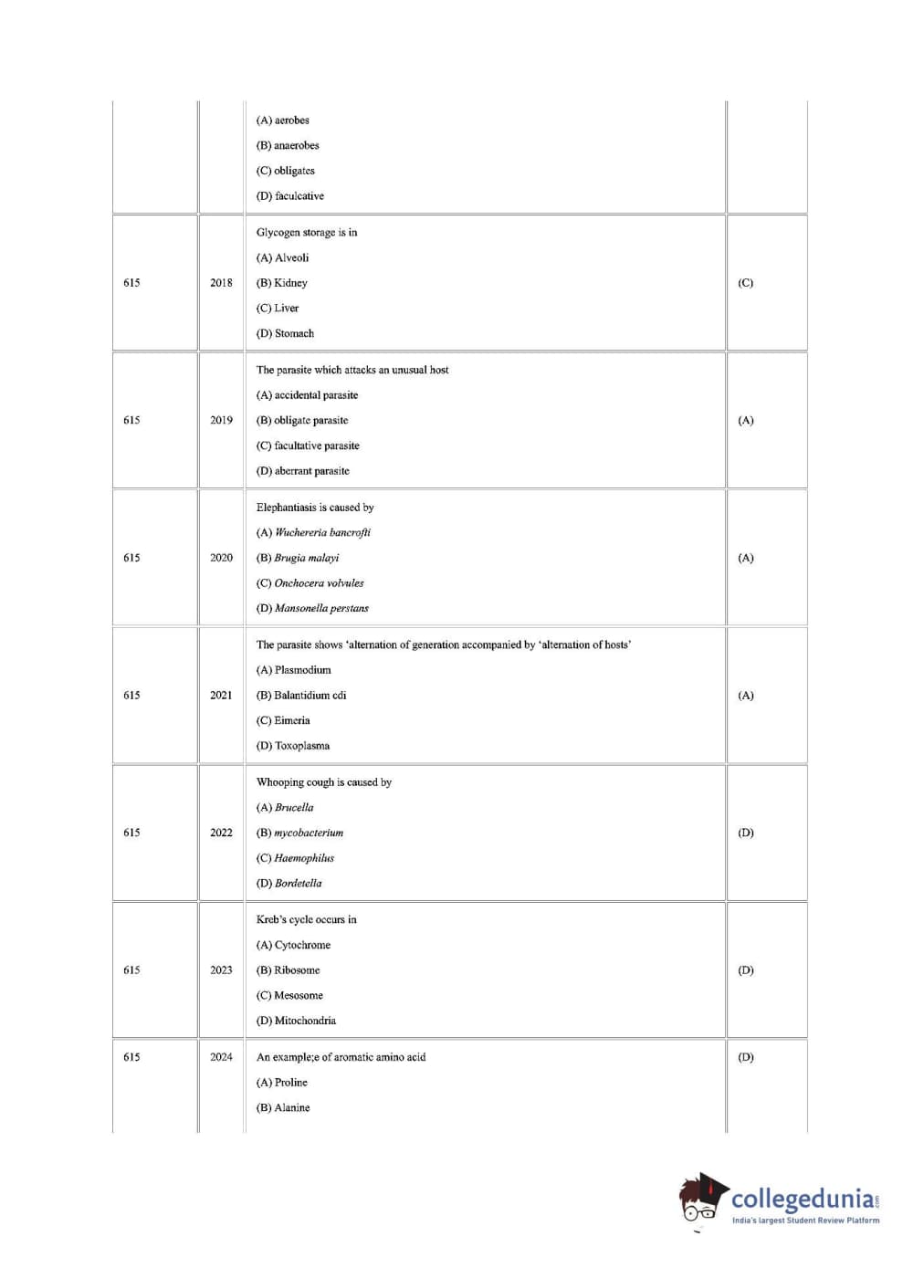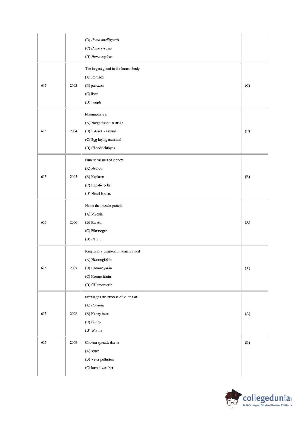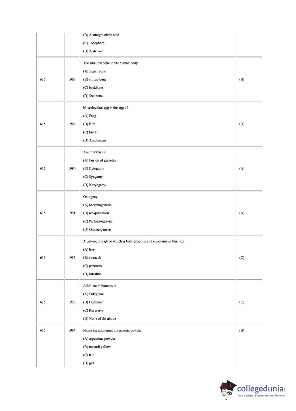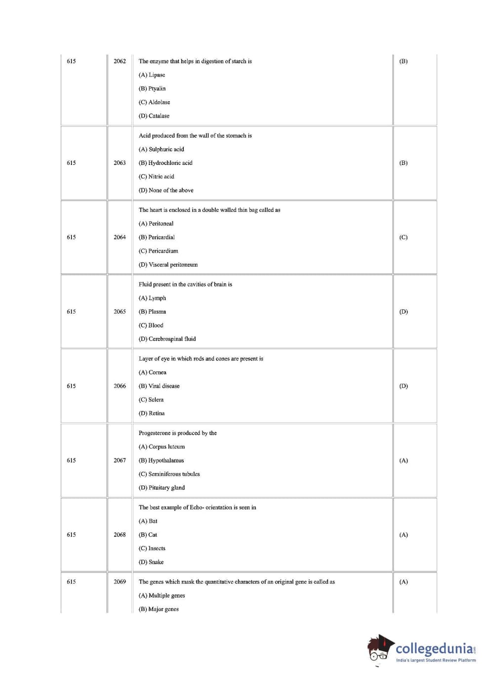 CUSAT CAT 2018 Zoology Question Paper with Answer Key PDFs