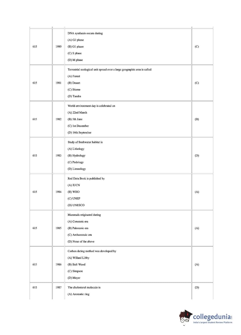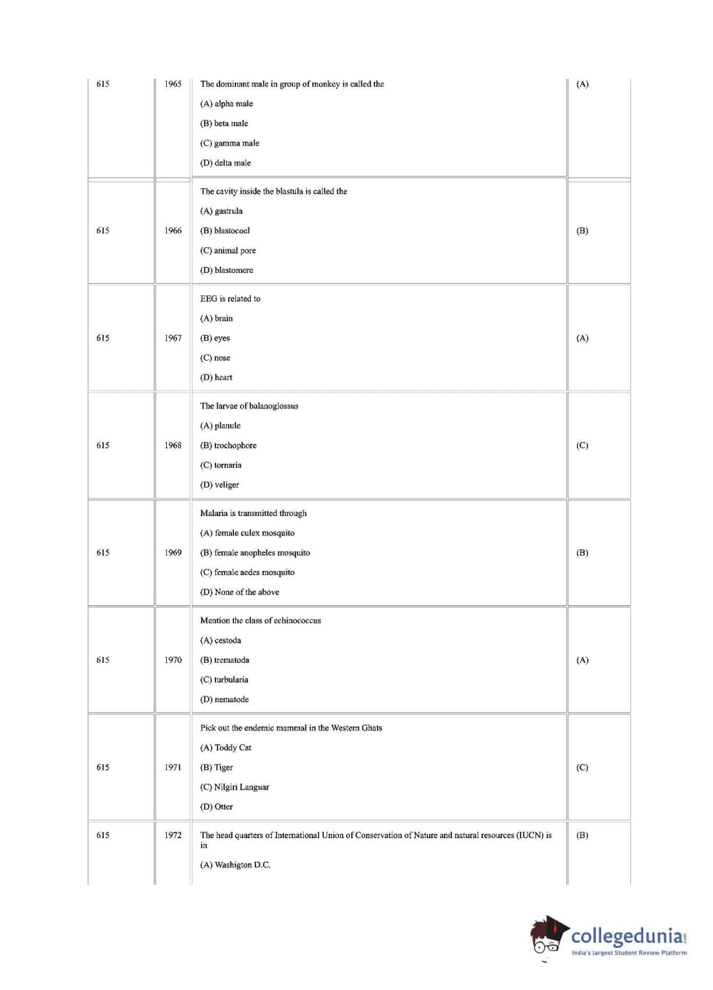 CUSAT CAT 2018 Zoology Question paper with answer key pdf is available for download. The exam was successfully organized by Cochin University of Science & Technology. The question paper comprised a total of 150 questions.