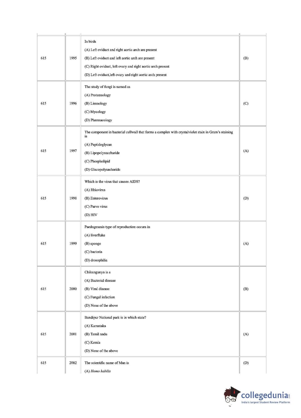 | CUSAT CAT 2018 Zoology Question Paper PDF | CUSAT CAT 2018 Zoology Answer Key PDF |