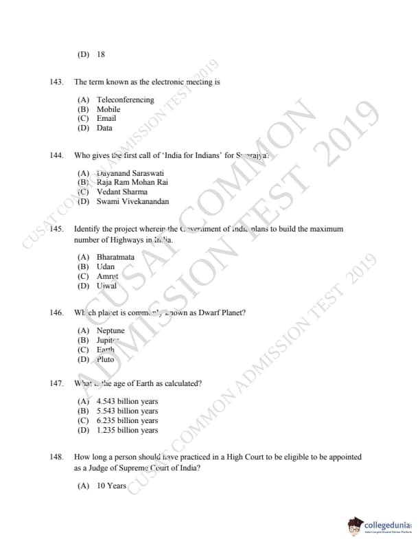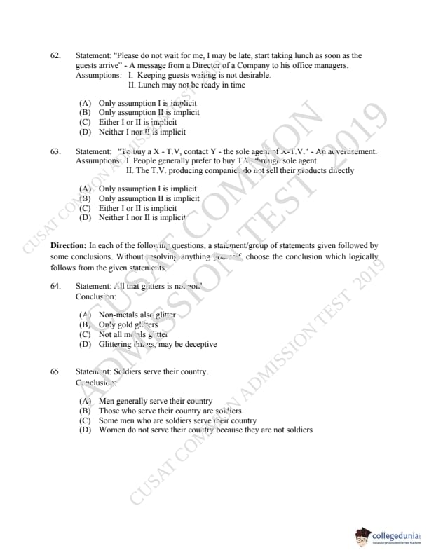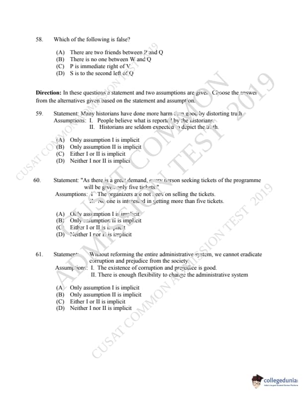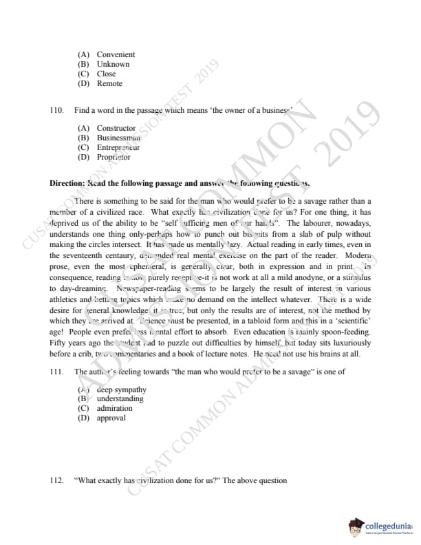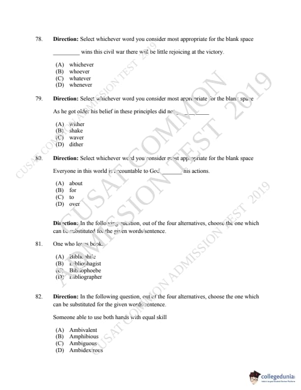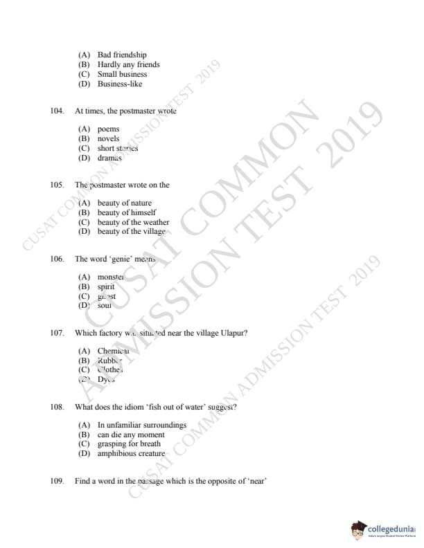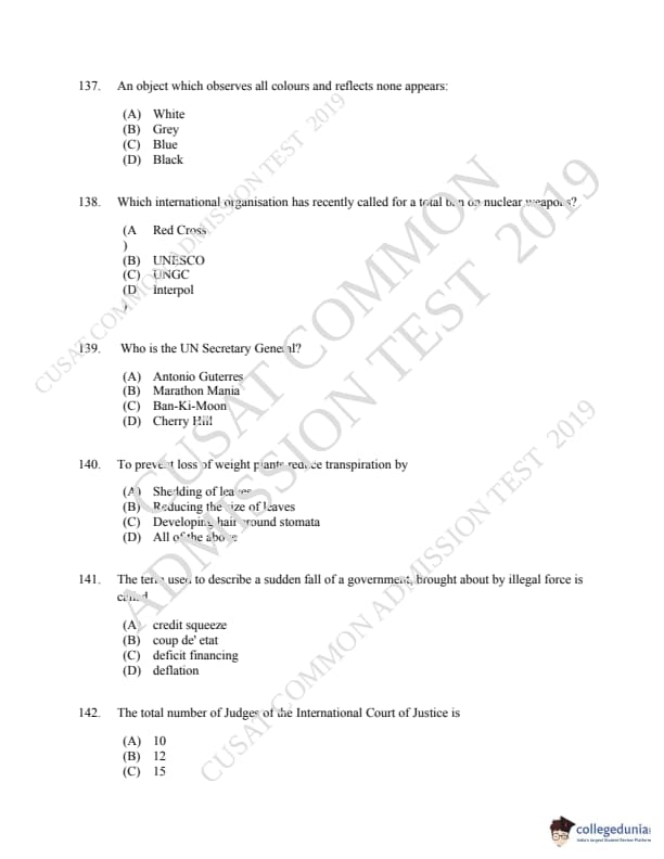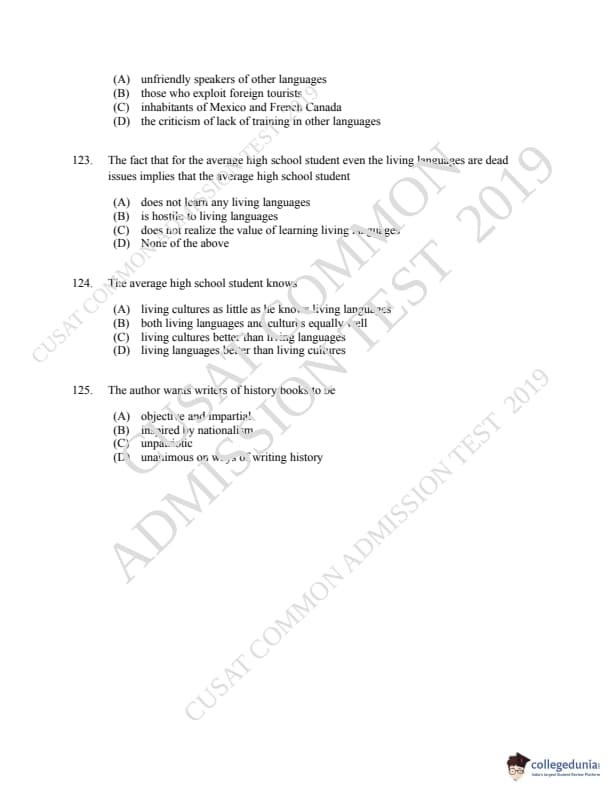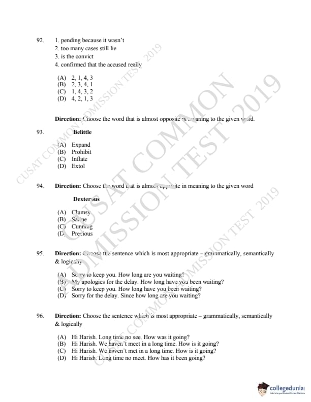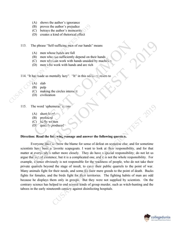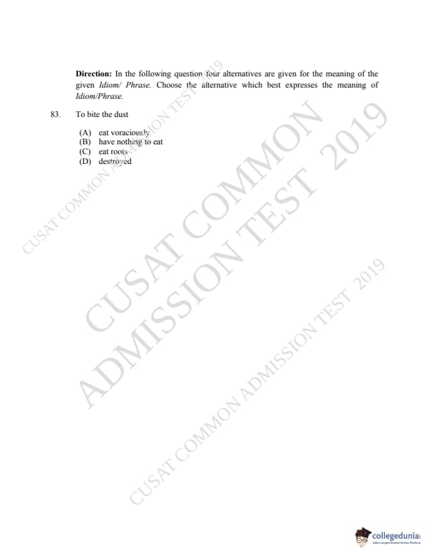 CUSAT CAT 2019 3 Year LLB Question paper with answer key pdf is available for download. The exam was successfully organized by Cochin University of Science & Technology. The question paper comprised a total of 150 questions.