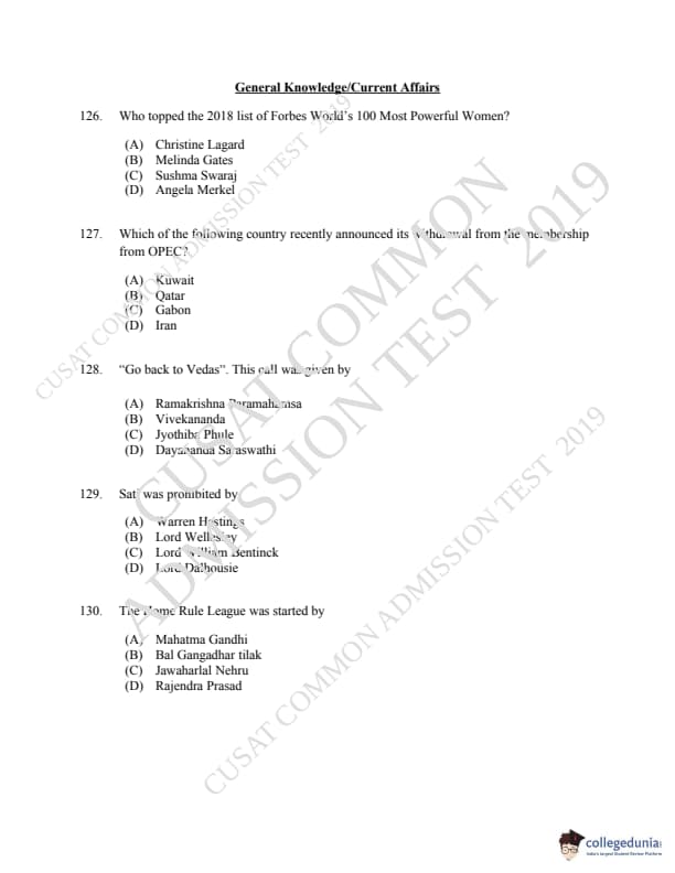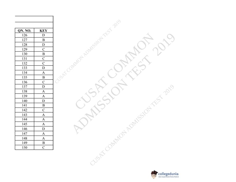 | CUSAT CAT 2019 3 Year LLB Question Paper PDF | CUSAT CAT 2019 3 Year LLB Answer Key PDF |