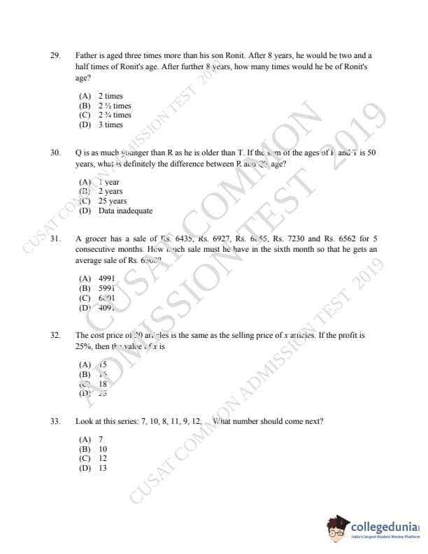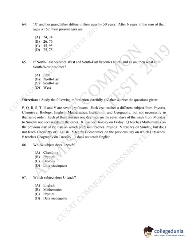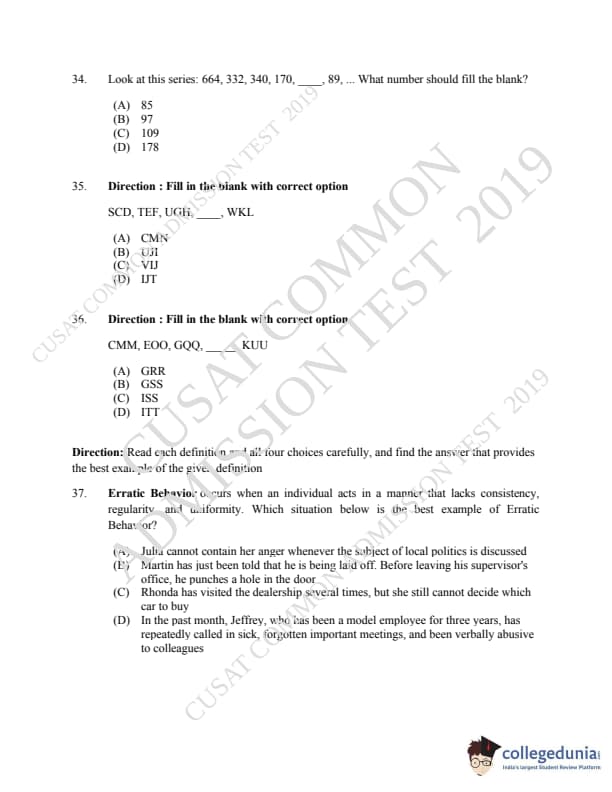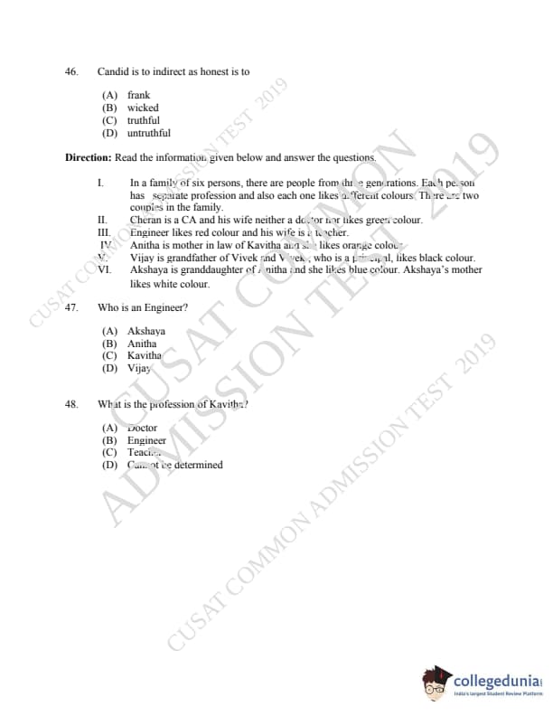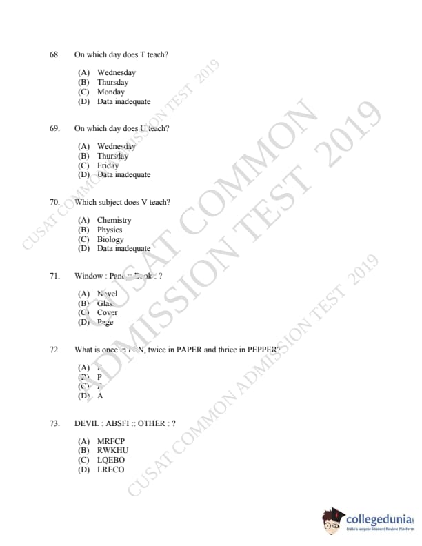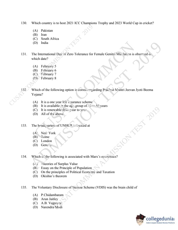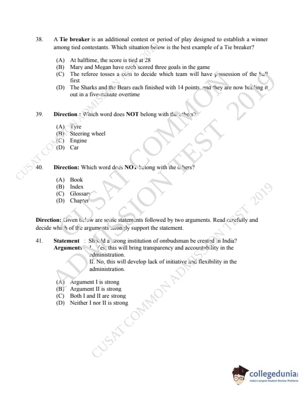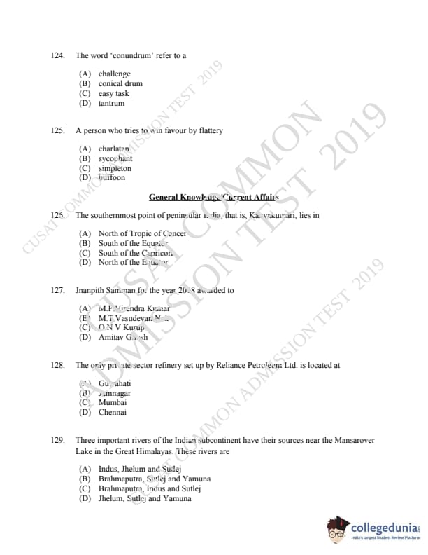 | CUSAT CAT 2019 5 Year LLB Question Paper PDF | CUSAT CAT 2019 5 Year LLB Answer Key PDF |