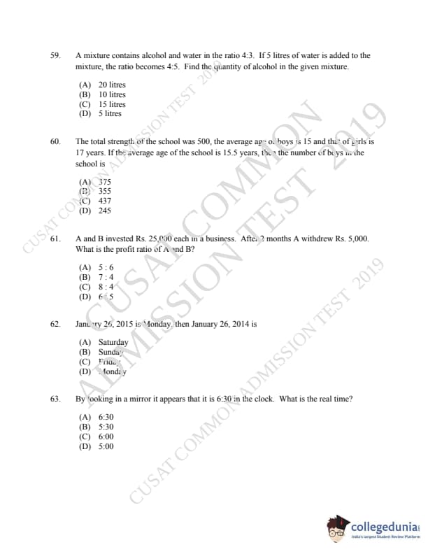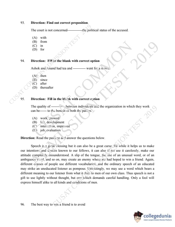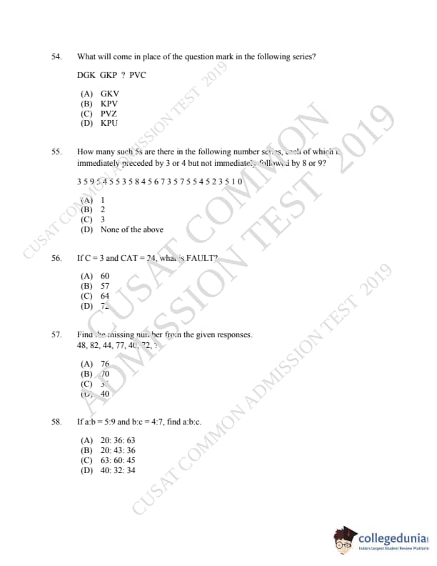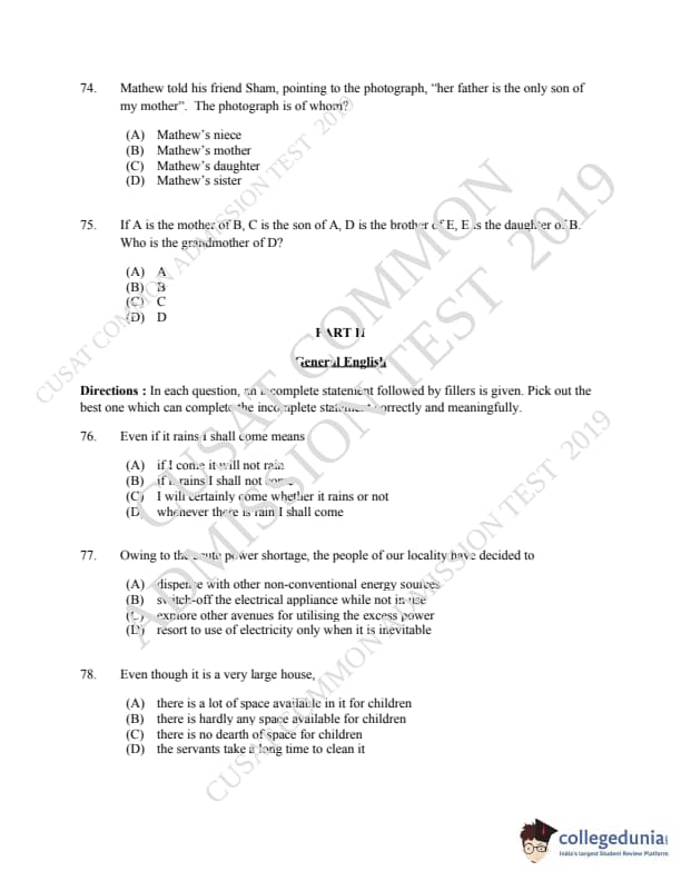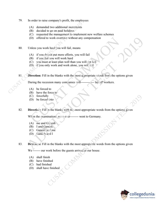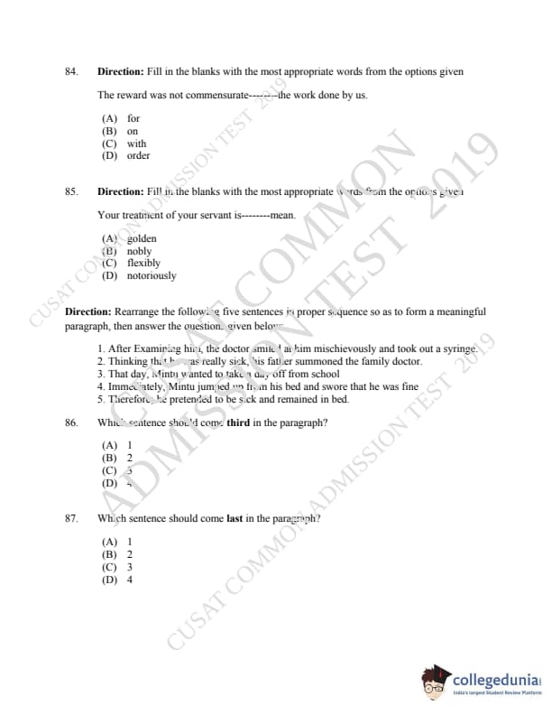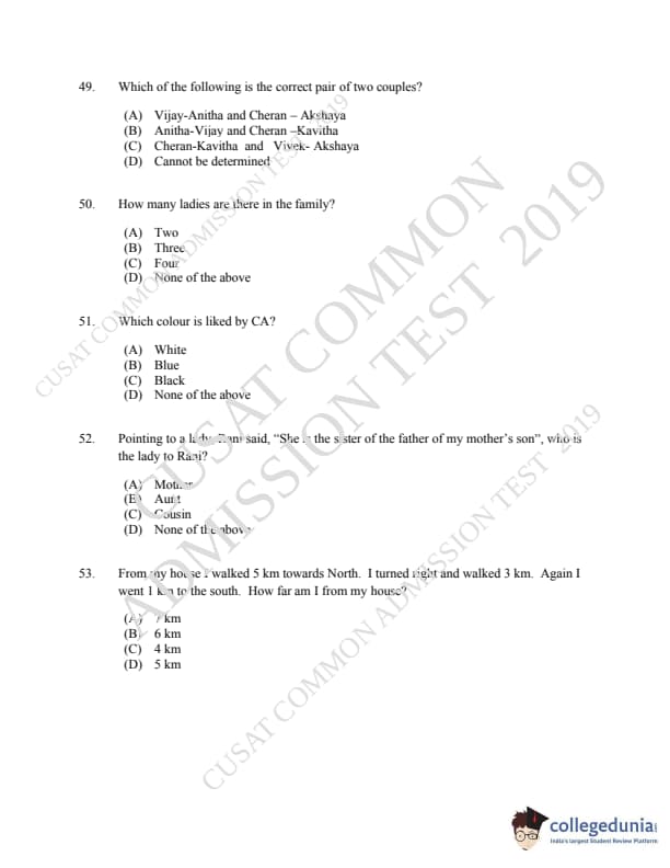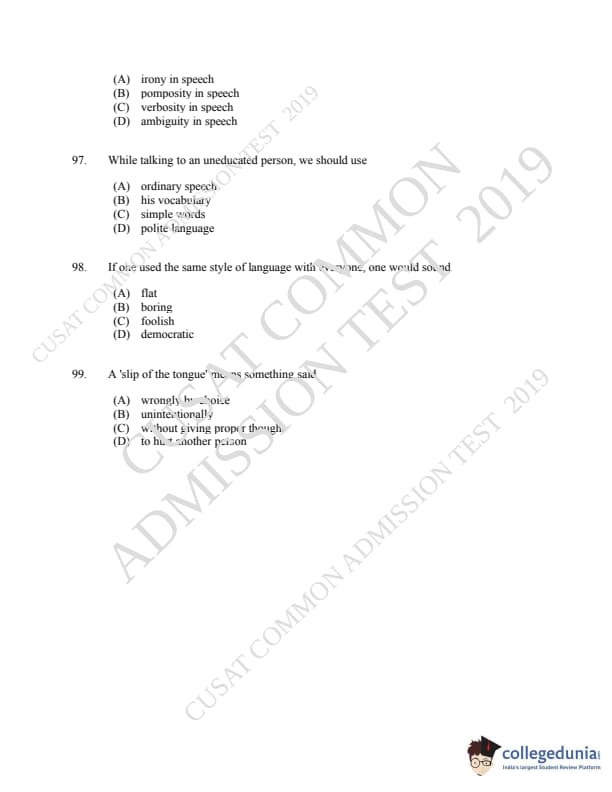CUSAT CAT 2019 5 Year LLB Question Paper with Answer Key PDFs
