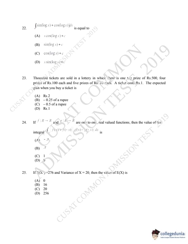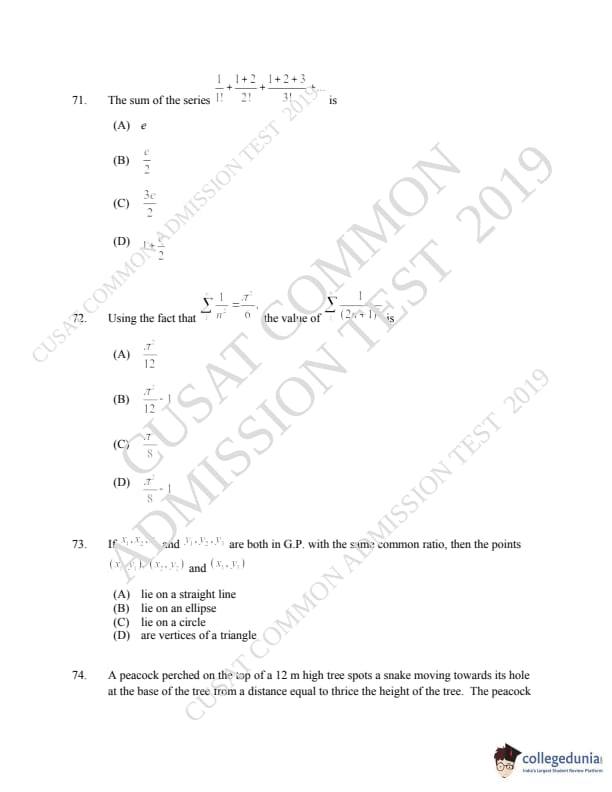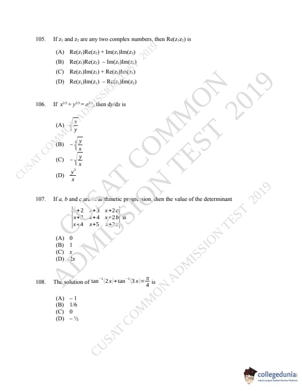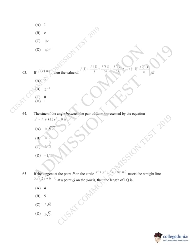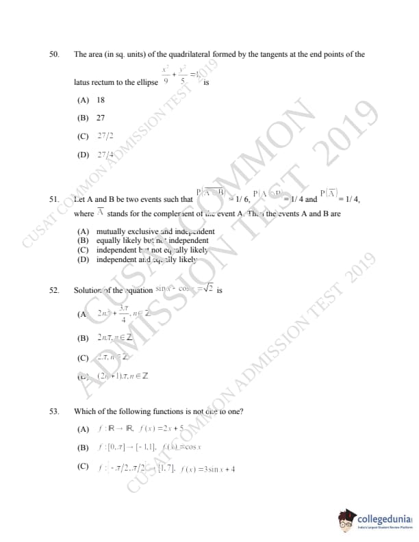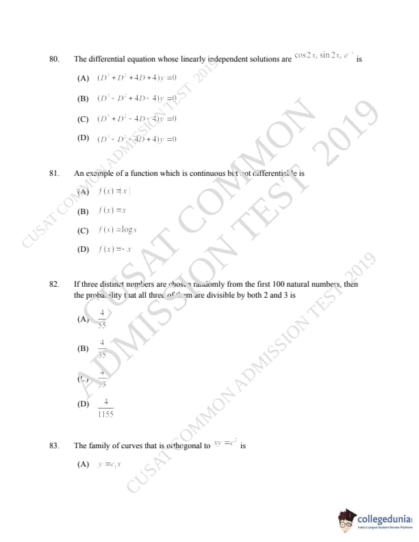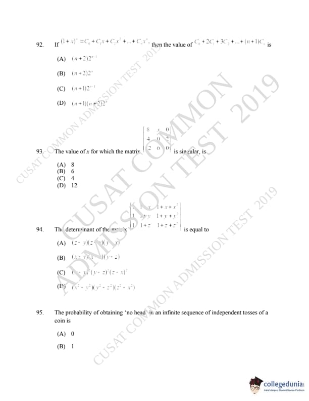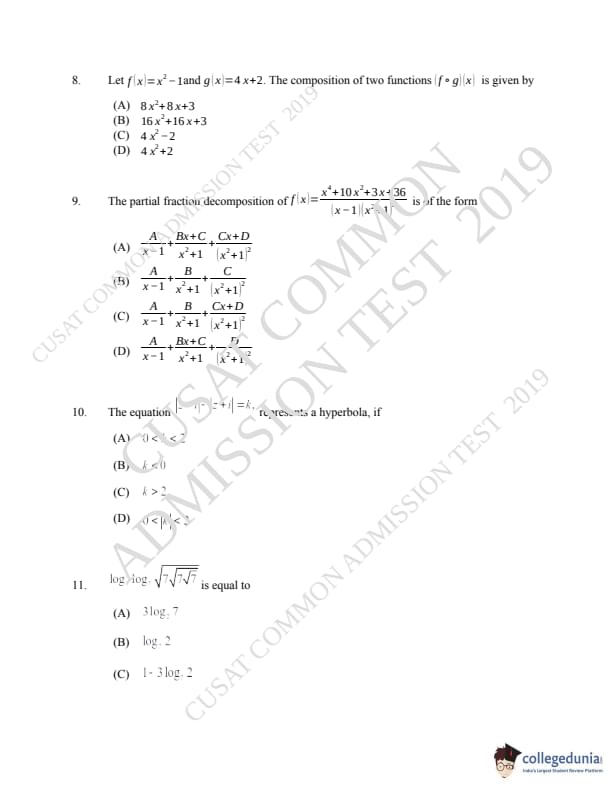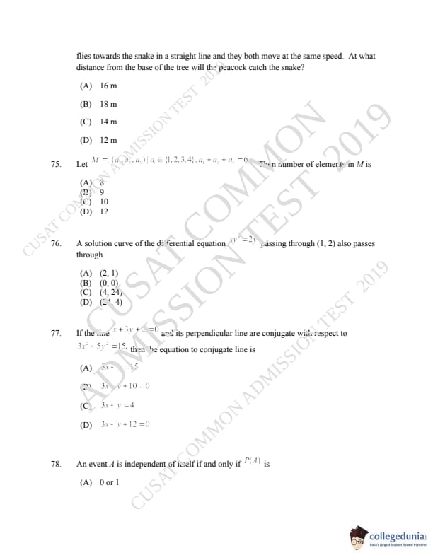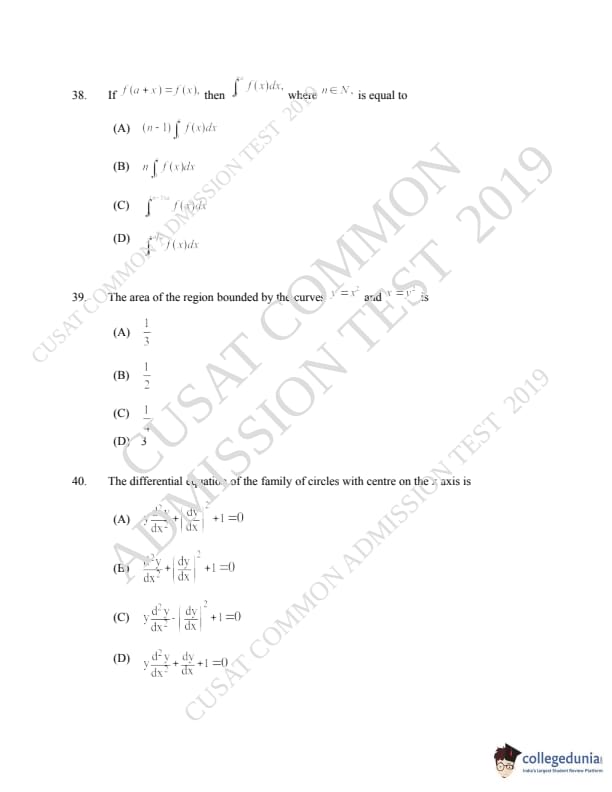 CUSAT CAT 2019 B.Tech Question Paper with Answer Key PDFs