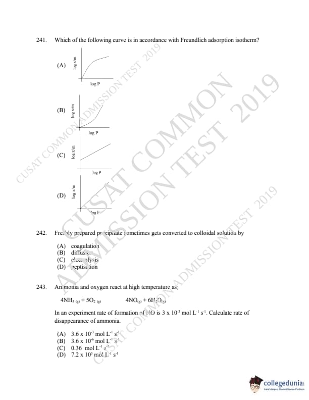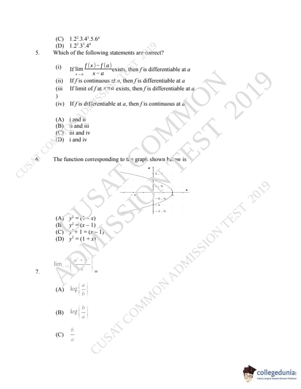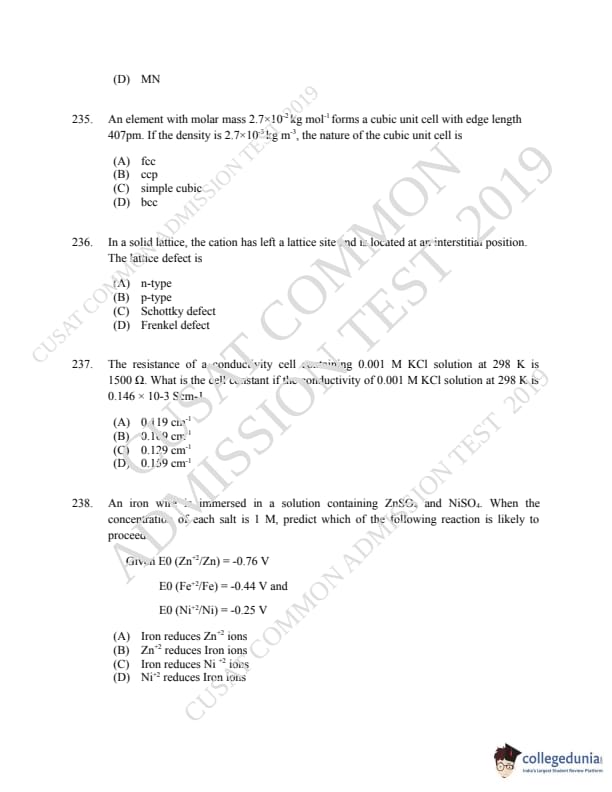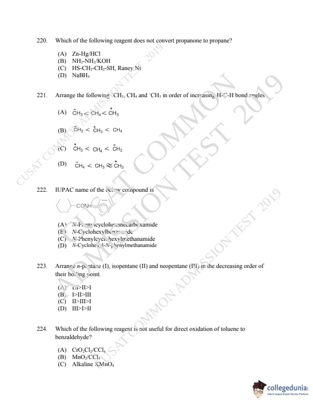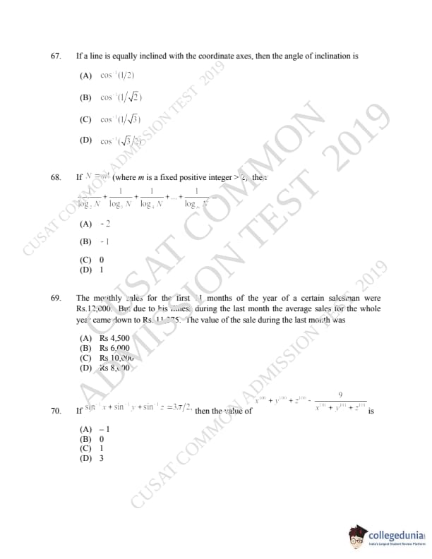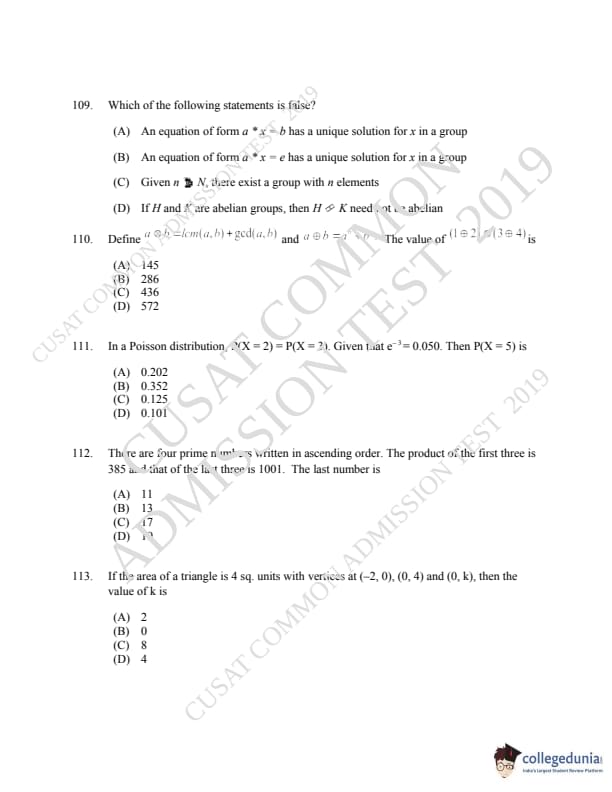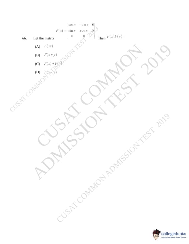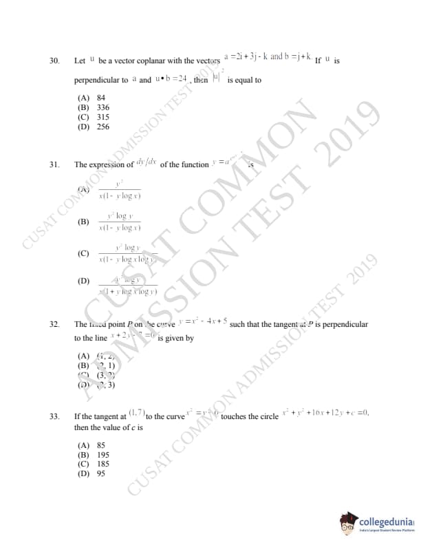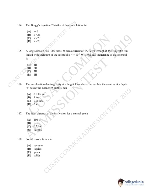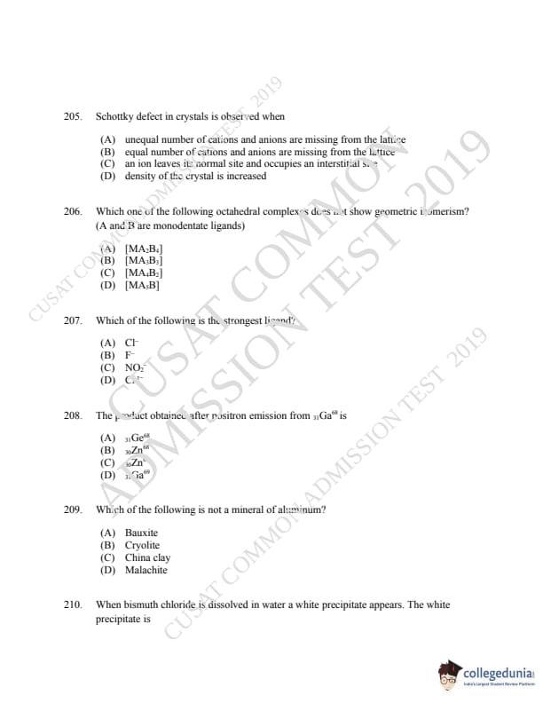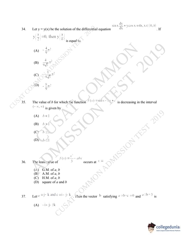 CUSAT CAT 2019 B.Tech Question Paper with Answer Key PDFs