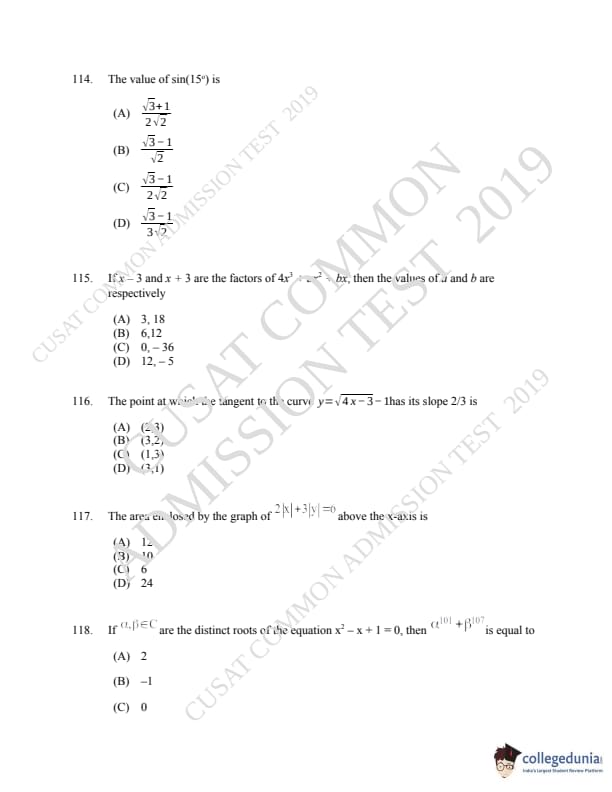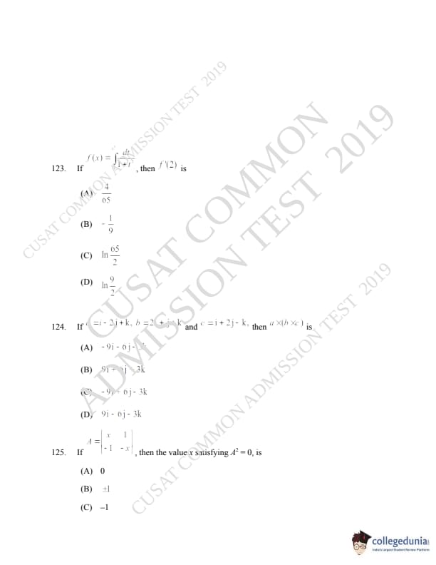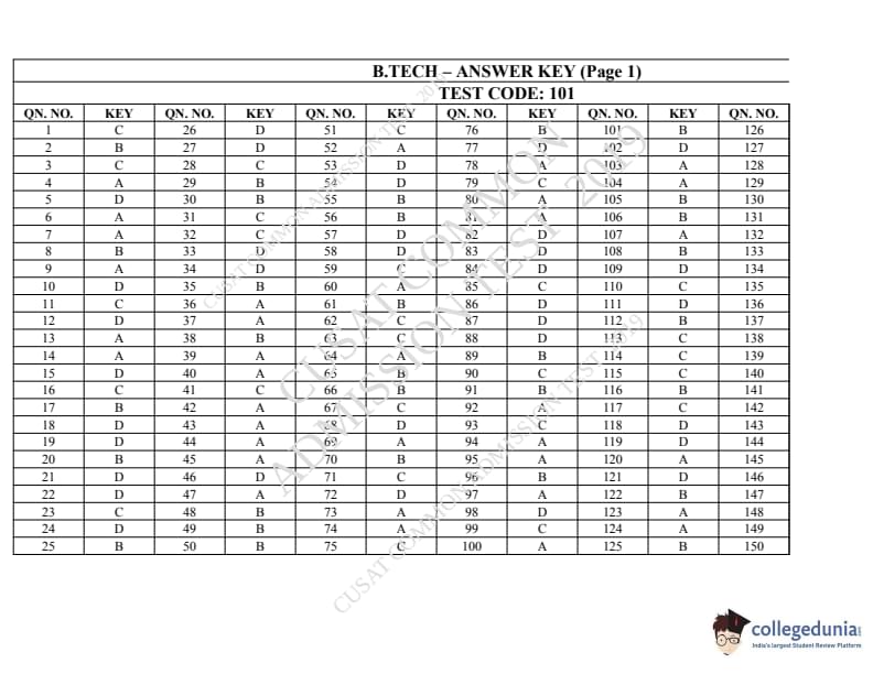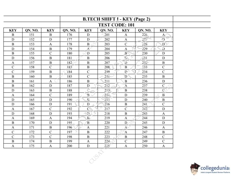 | CUSAT CAT 2019 B.Tech Question Paper PDF | CUSAT CAT 2019 B.Tech Answer Key PDF |