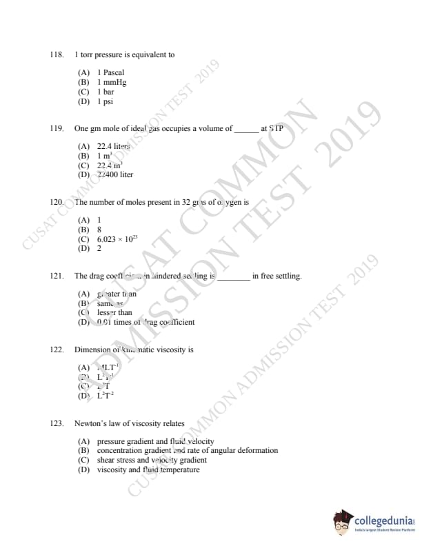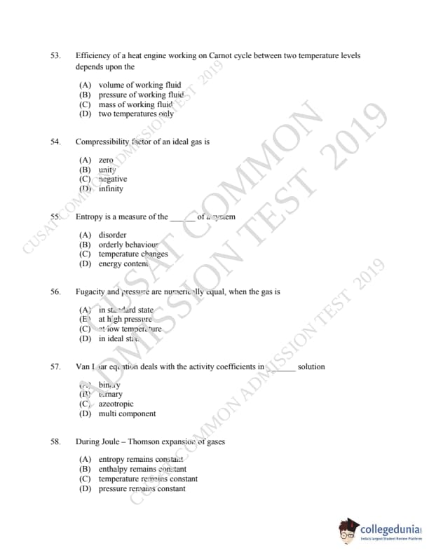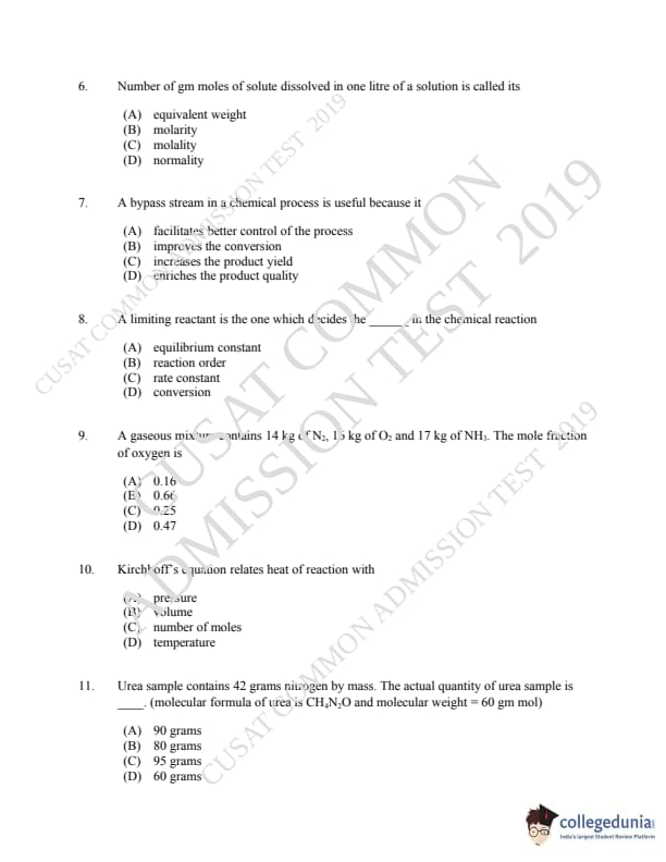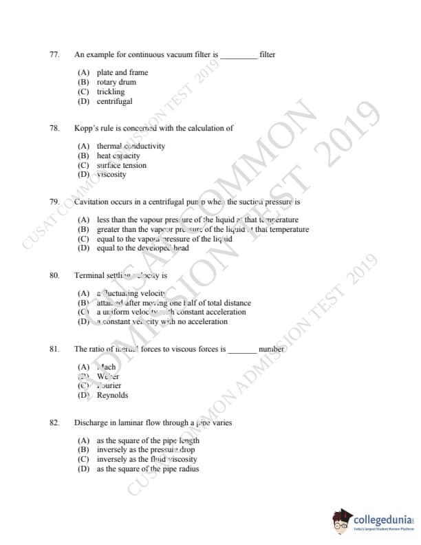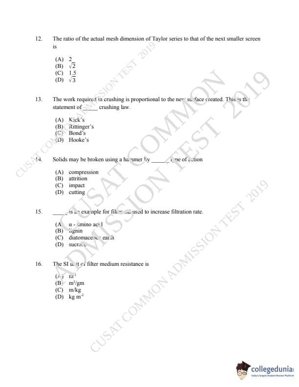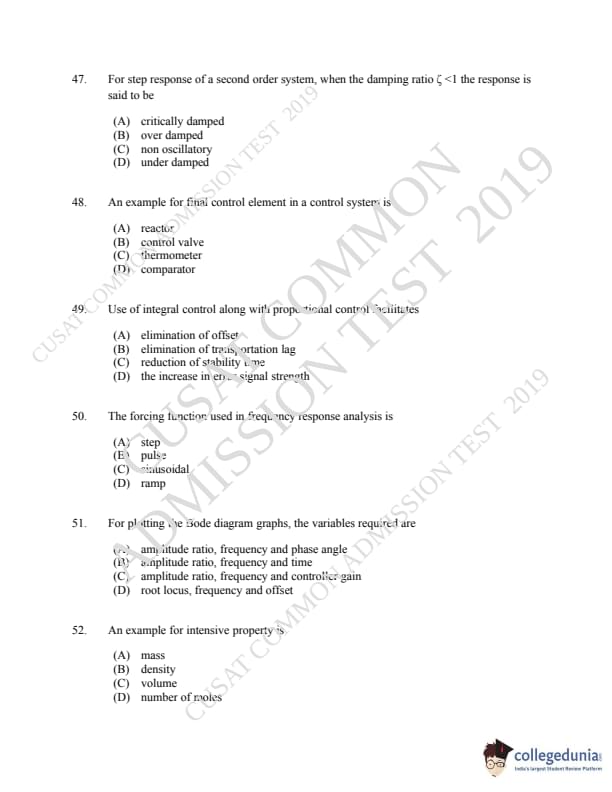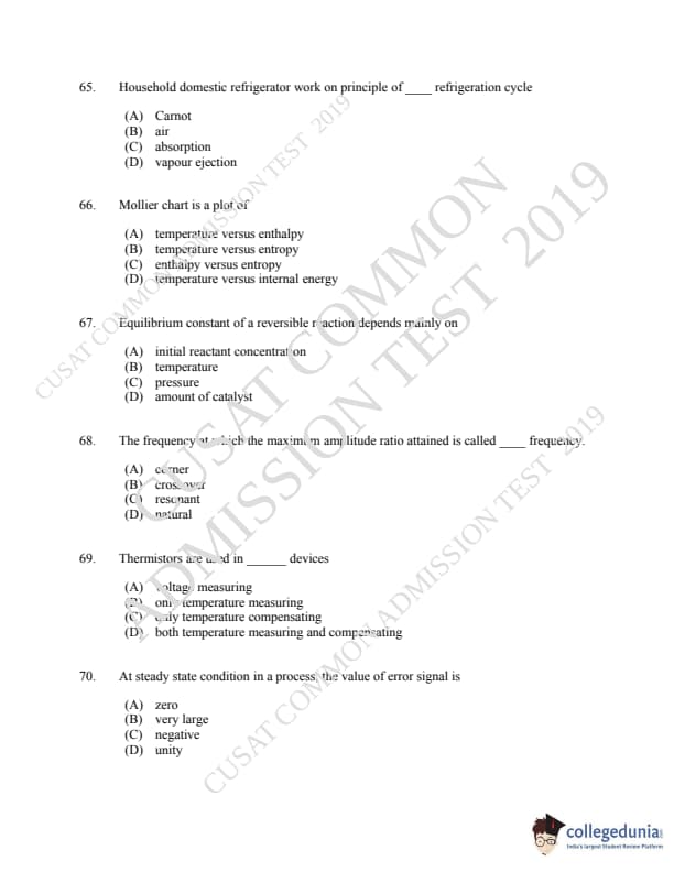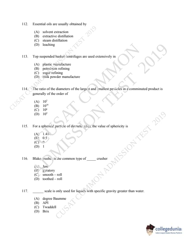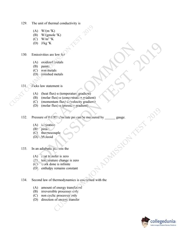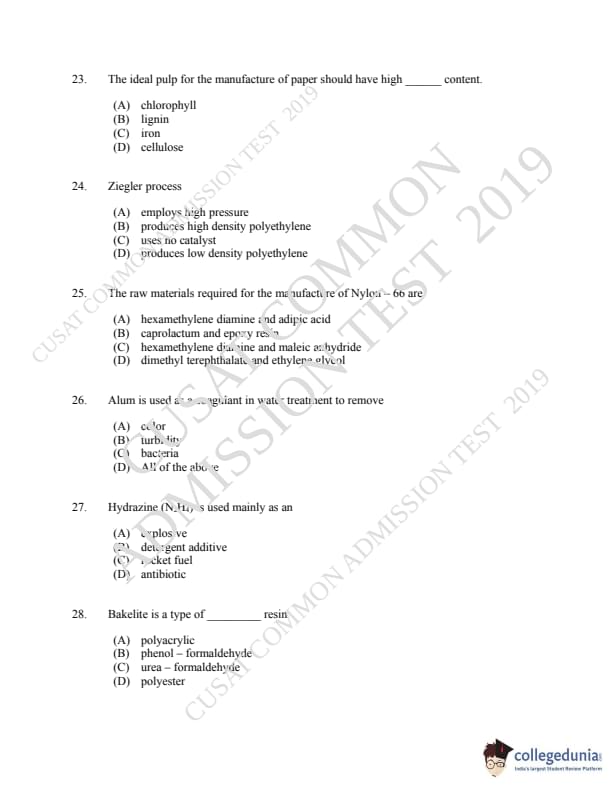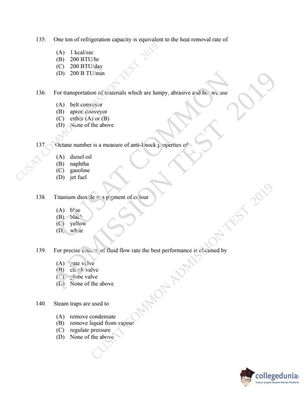 CUSAT CAT 2019 Chemical Engineering Question paper with answer key pdf is available for download. The exam was successfully organized by Cochin University of Science & Technology. The question paper comprised a total of 150 questions.