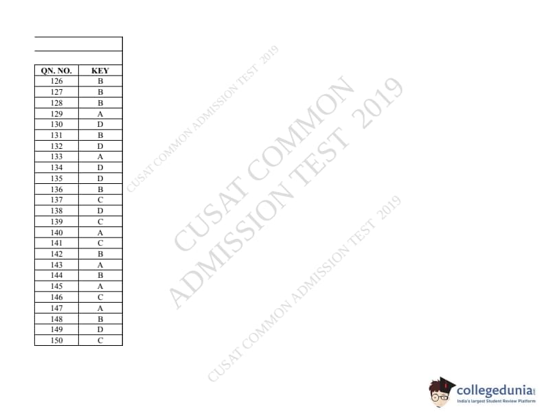 | CUSAT CAT 2019 Chemical Engineering Question Paper PDF | CUSAT CAT 2019 Chemical Engineering Answer Key PDF |