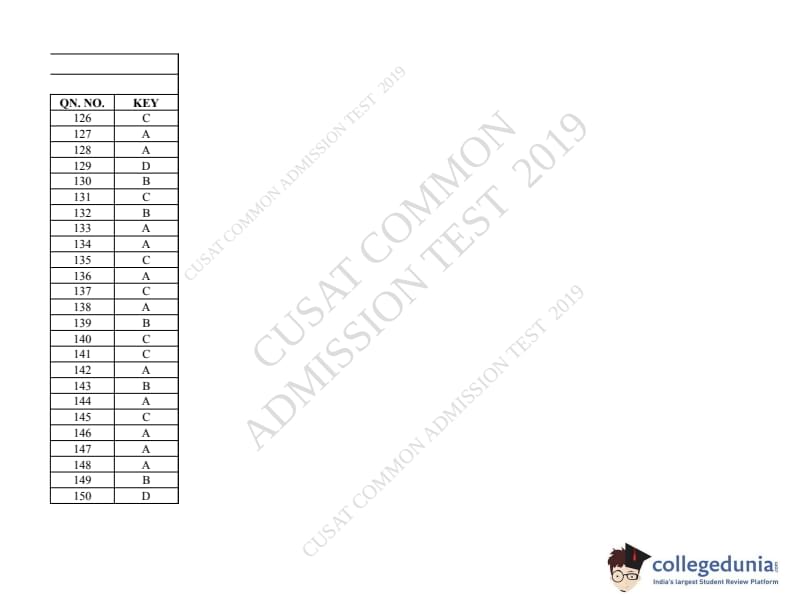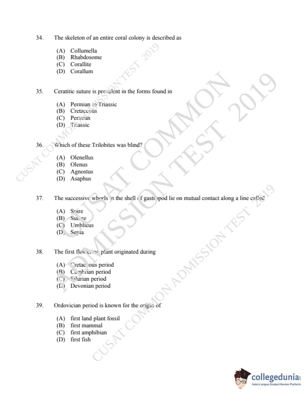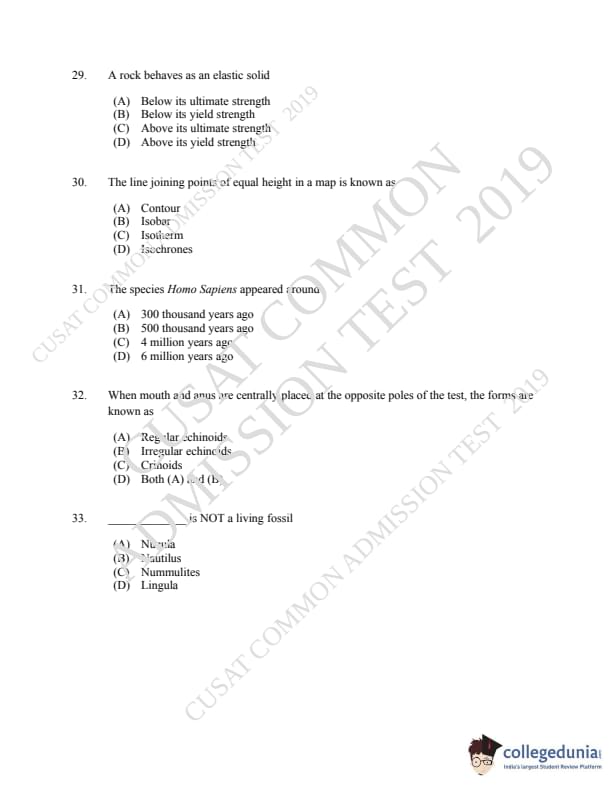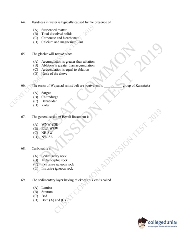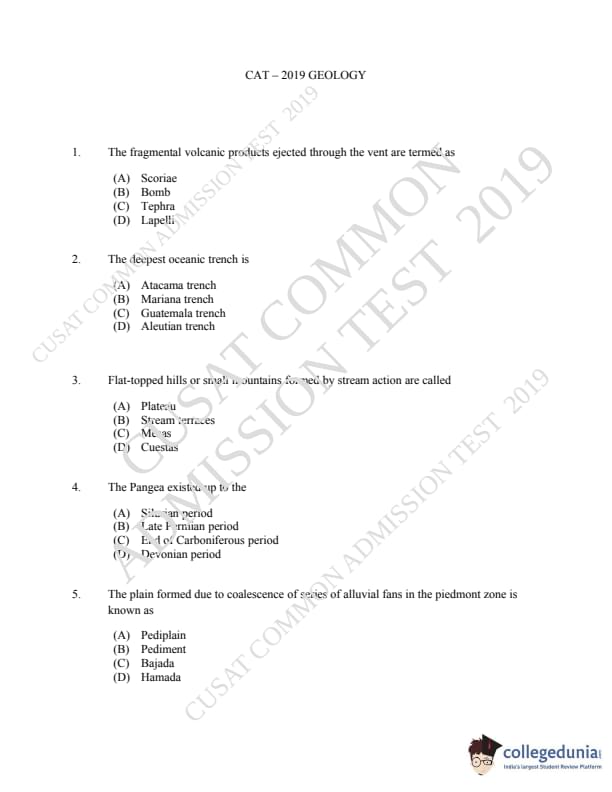 | CUSAT CAT 2019 Geology Question Paper PDF | CUSAT CAT 2019 Geology Answer Key PDF |