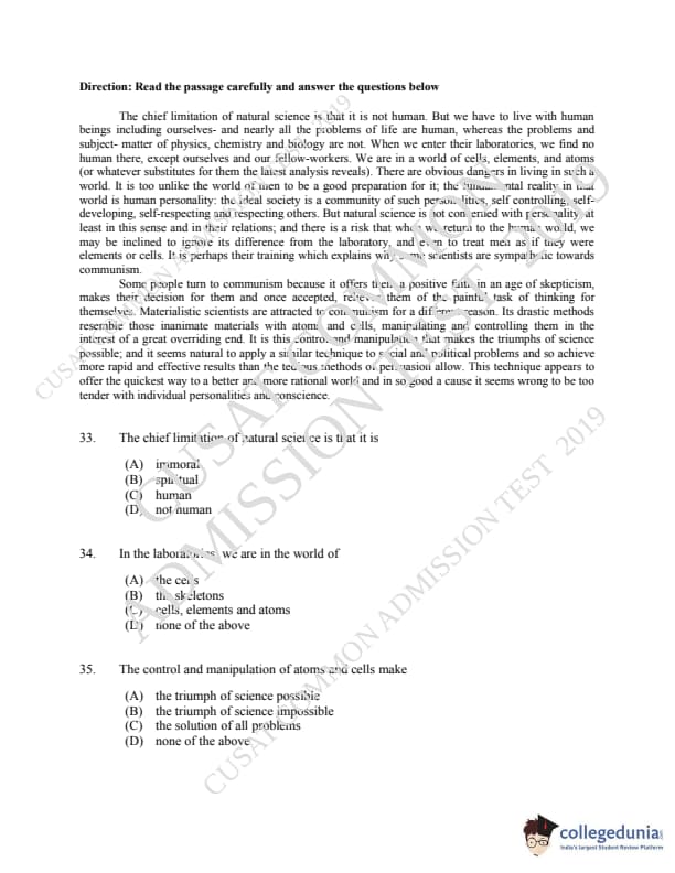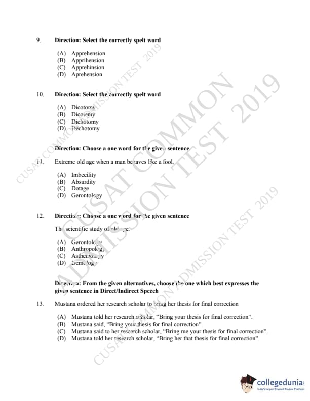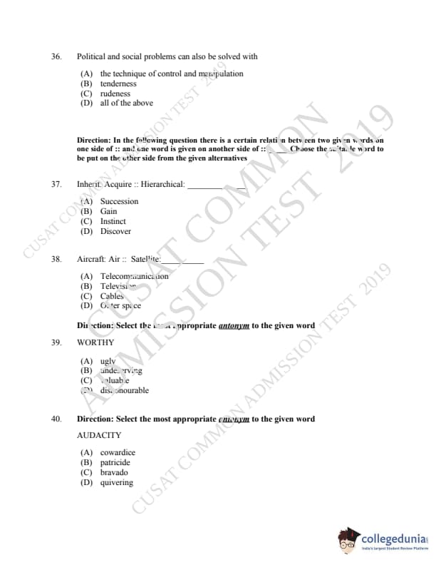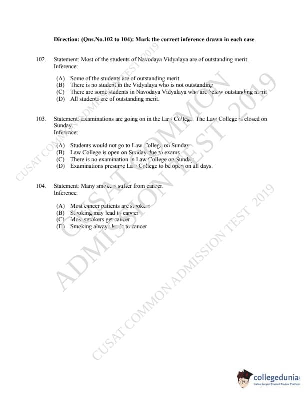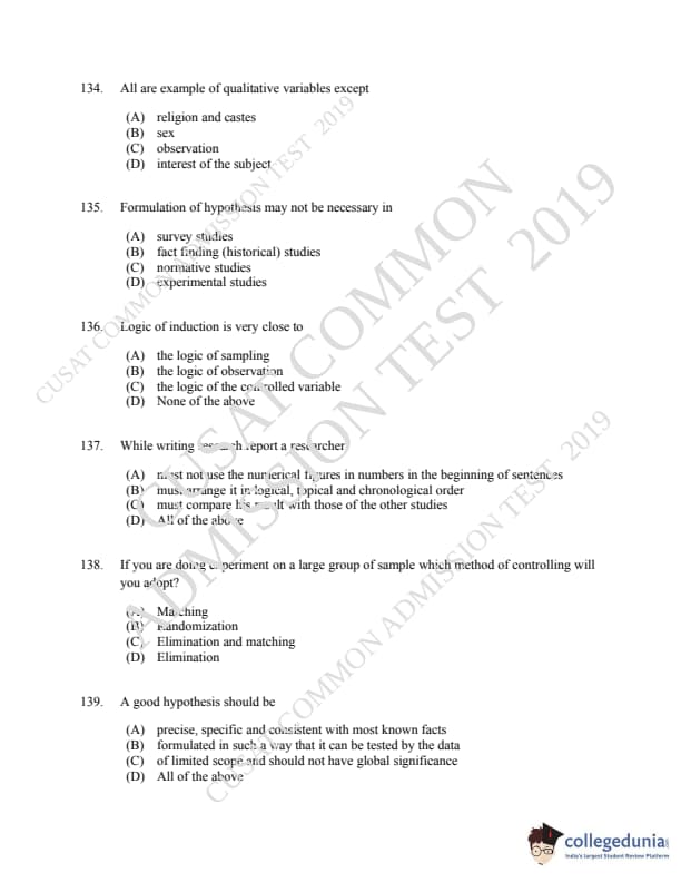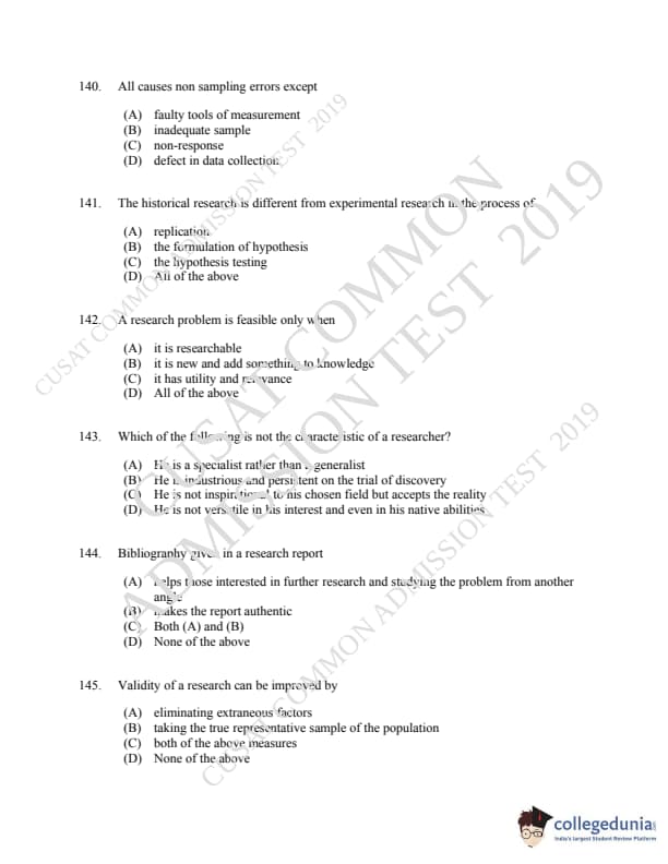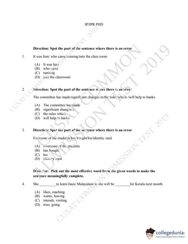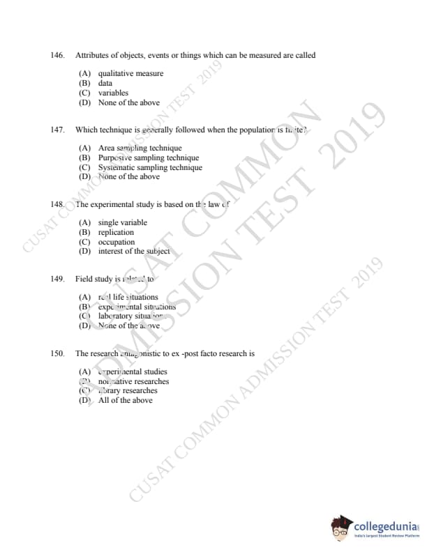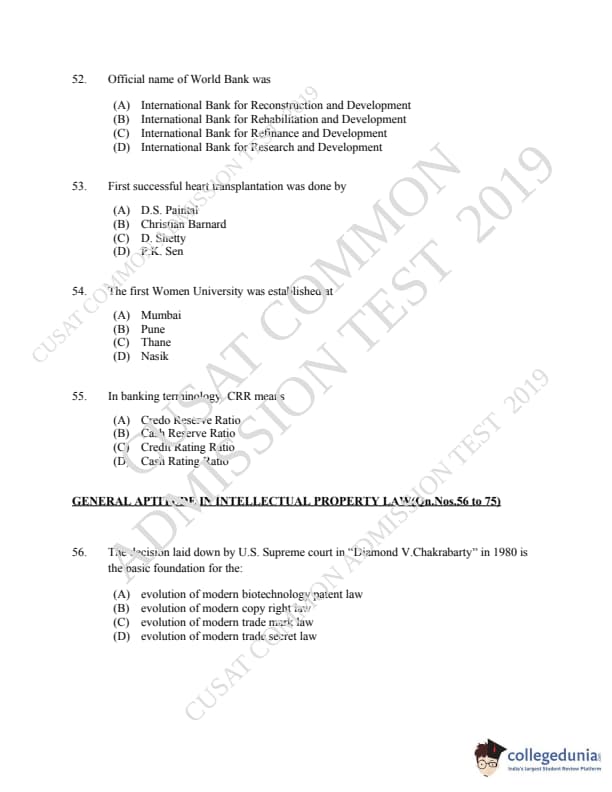 CUSAT CAT 2019 LLM IPR Ph.D Question paper with answer key pdf is available for download. The exam was successfully organized by Cochin University of Science & Technology. The question paper comprised a total of 150 questions.