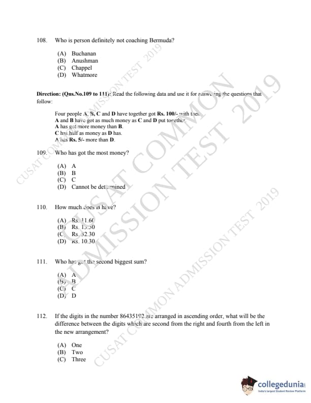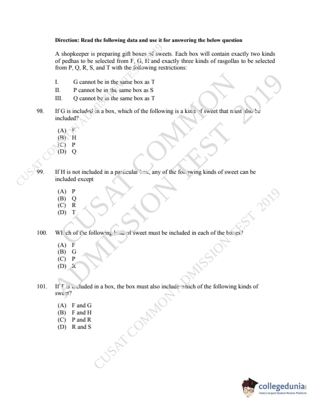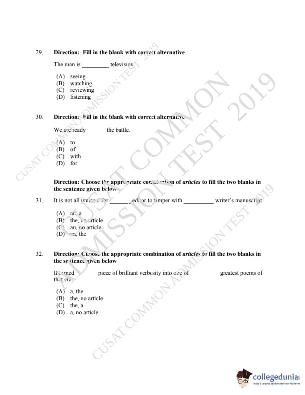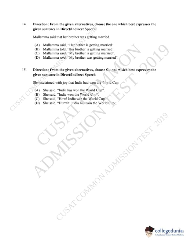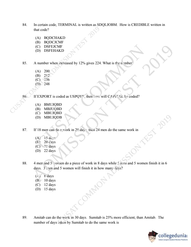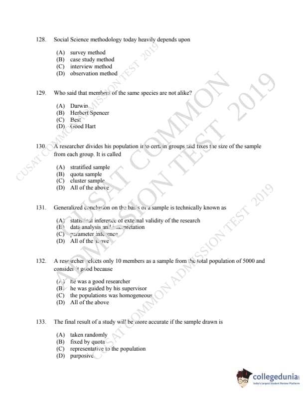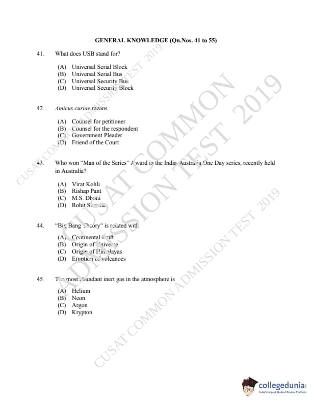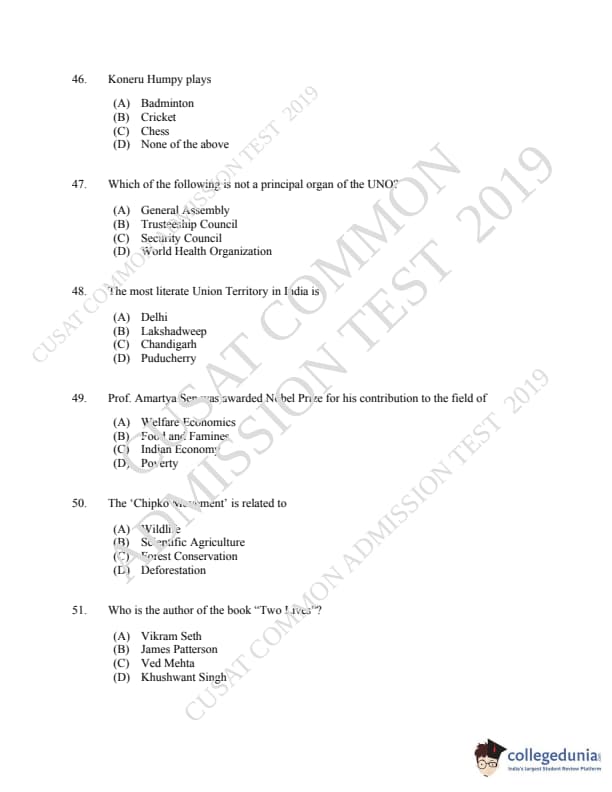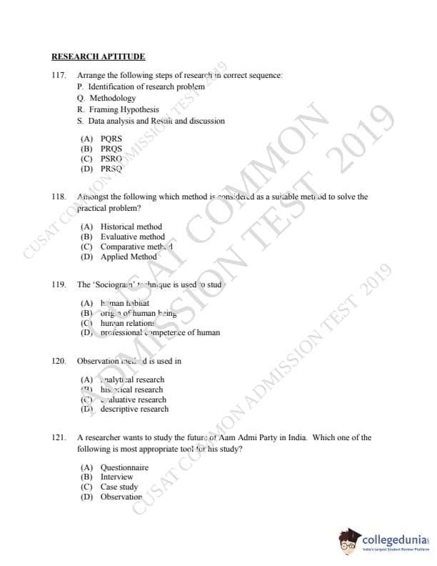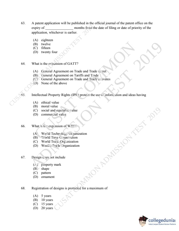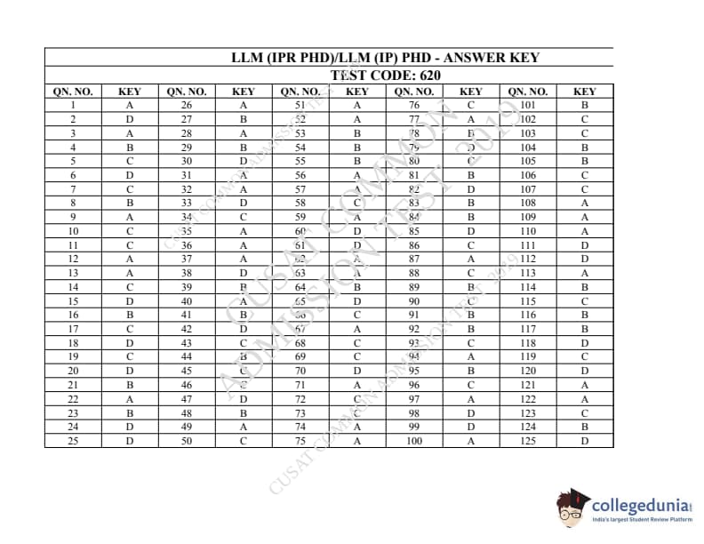 | CUSAT CAT 2019 LLM IPR Ph.D Question Paper PDF | CUSAT CAT 2019 LLM IPR Ph.D Answer Key PDF |