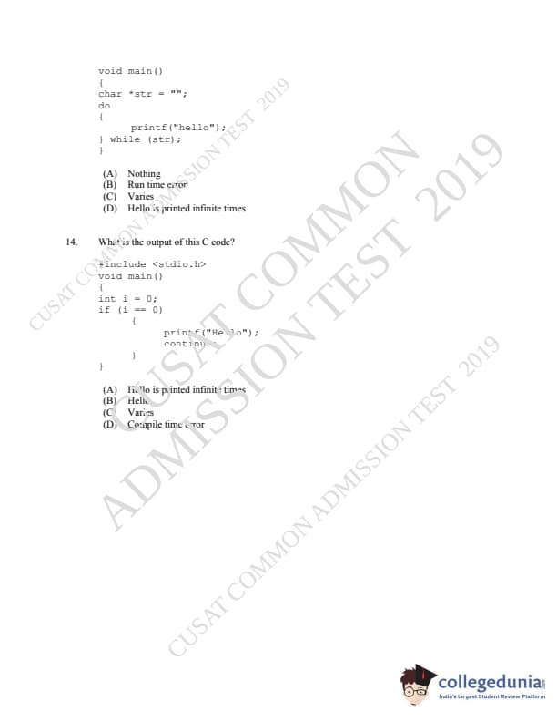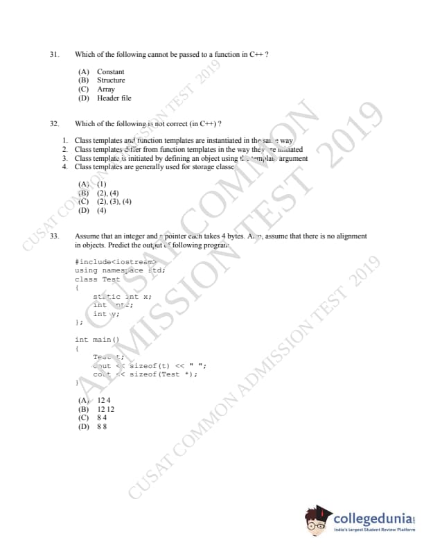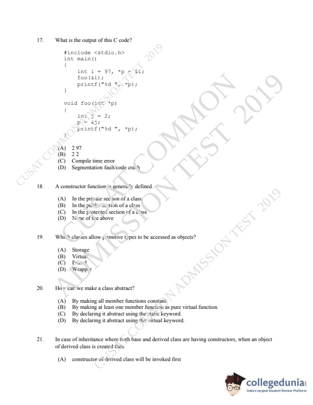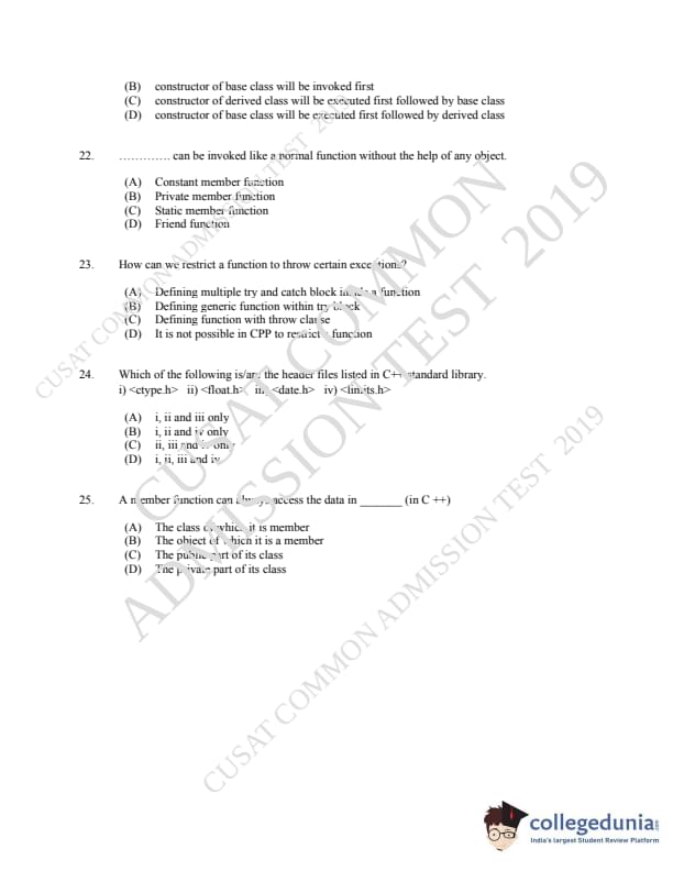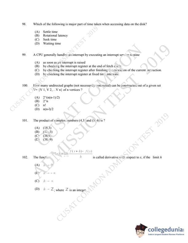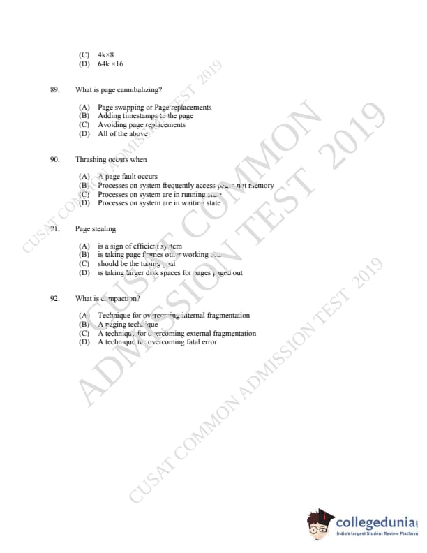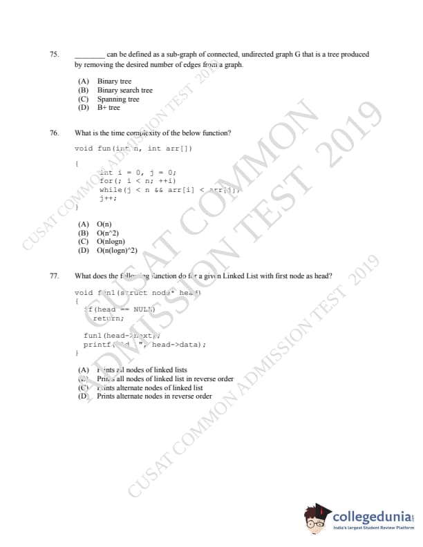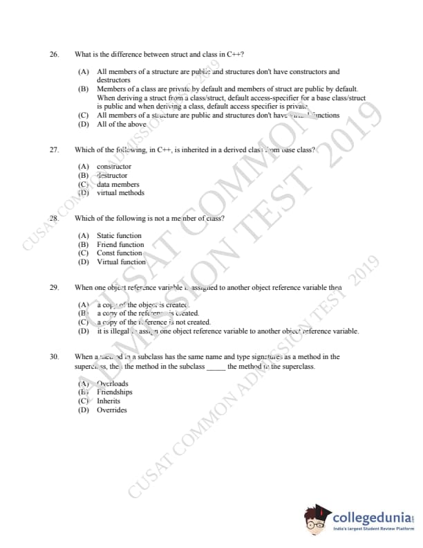 CUSAT CAT 2019 MCA LET Question paper with answer key pdf is available for download. The exam was successfully organized by Cochin University of Science & Technology. The question paper comprised a total of 150 questions.