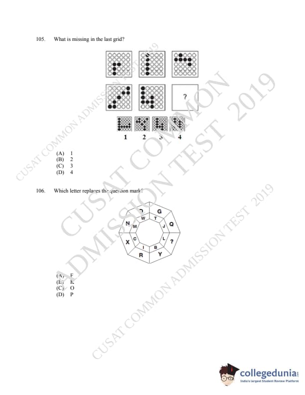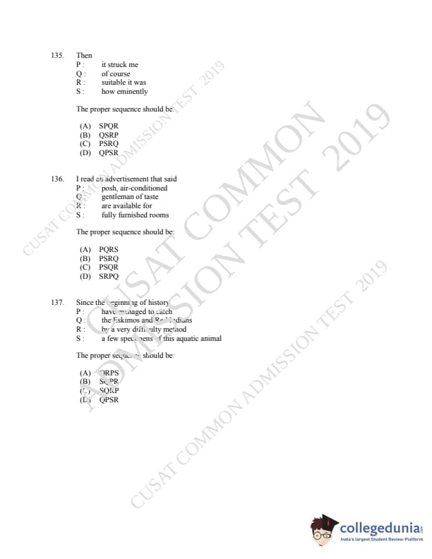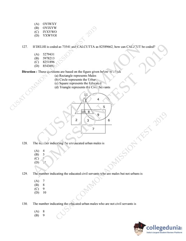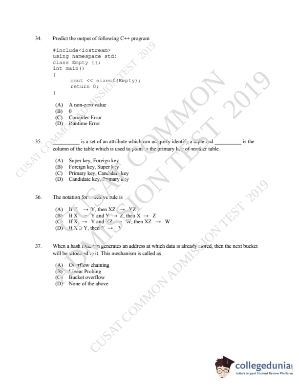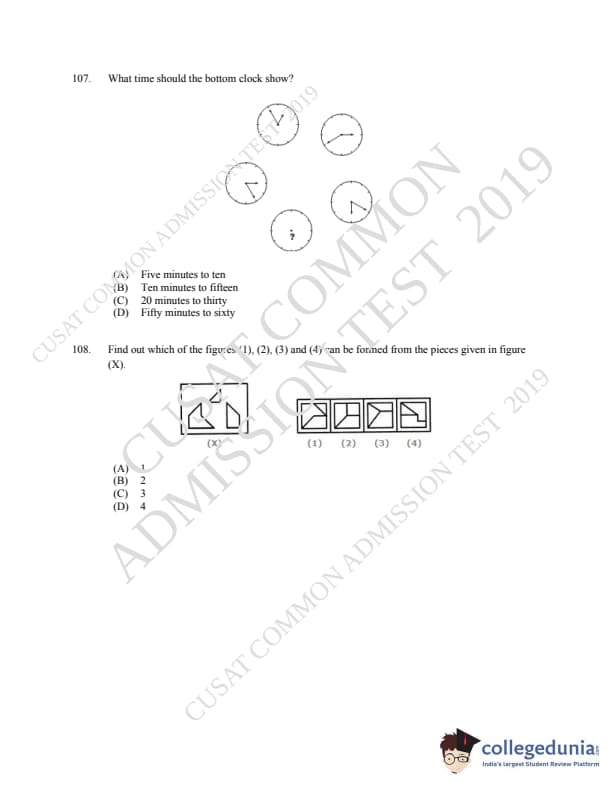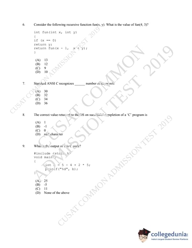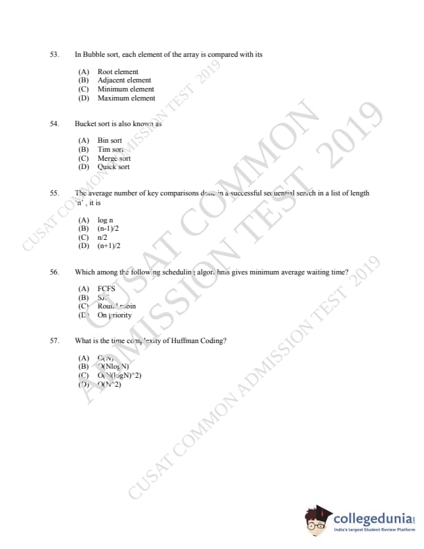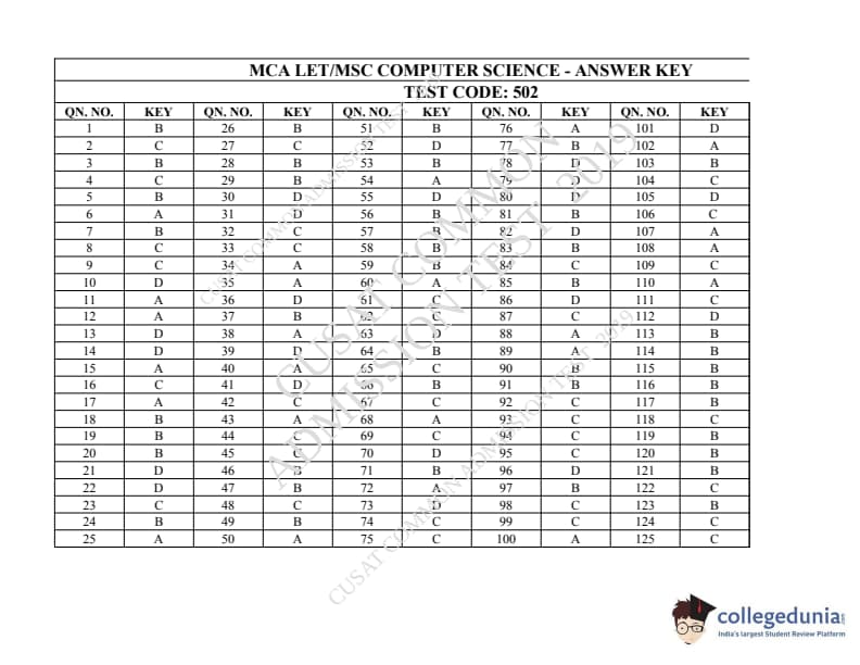 | CUSAT CAT 2019 MCA LET Question Paper PDF | CUSAT CAT 2019 MCA LET Answer Key PDF |