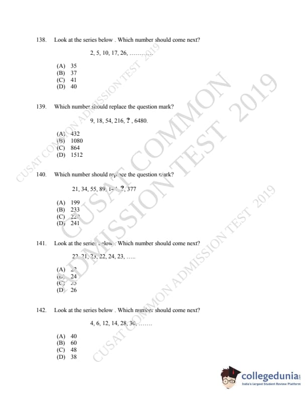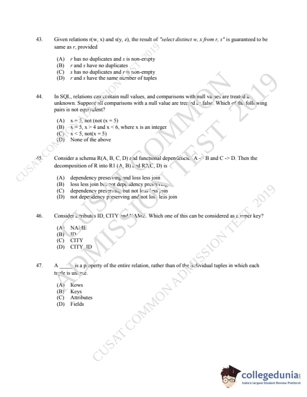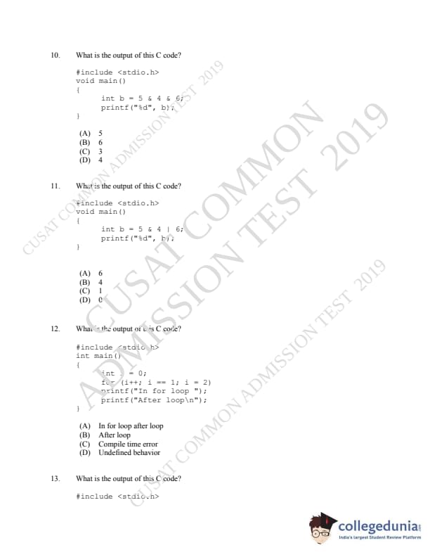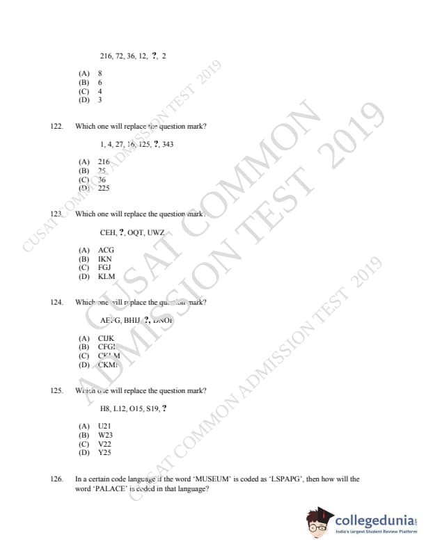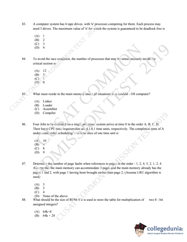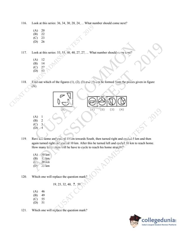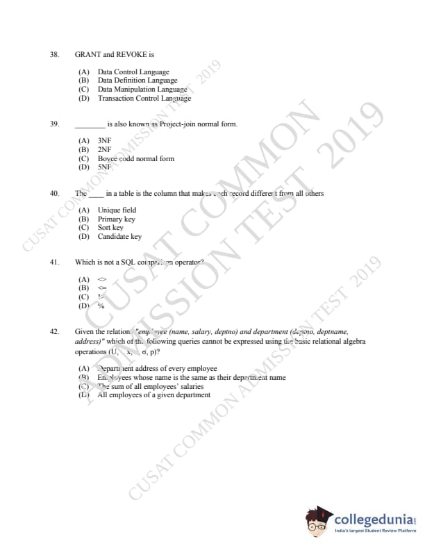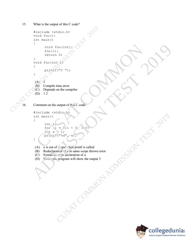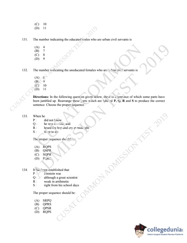 | CUSAT CAT 2019 MCA LET Question Paper PDF | CUSAT CAT 2019 MCA LET Answer Key PDF |
