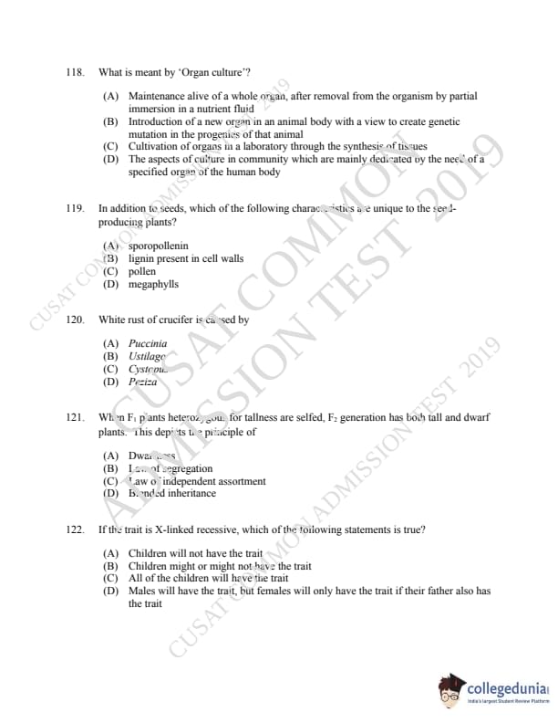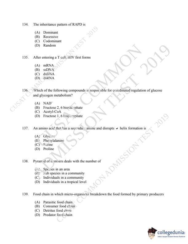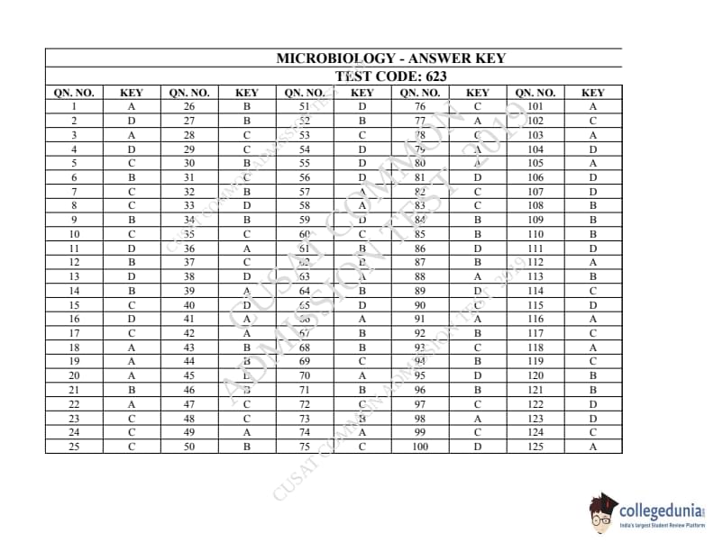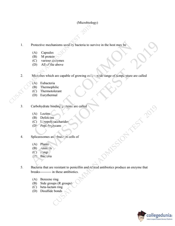 | CUSAT CAT 2019 Microbiology Question Paper PDF | CUSAT CAT 2019 Microbiology Answer Key PDF |