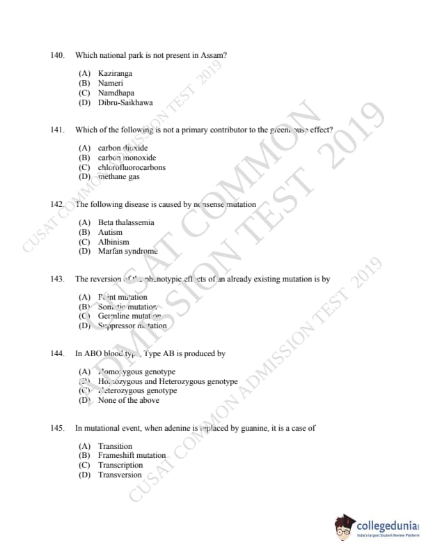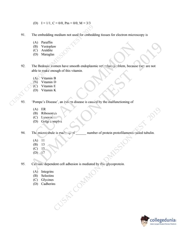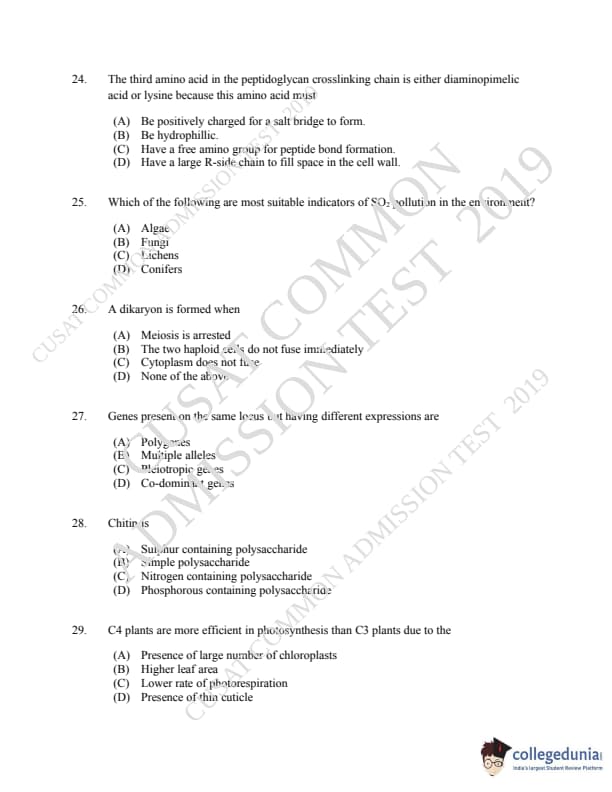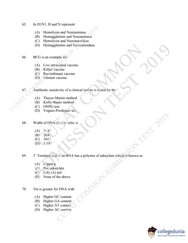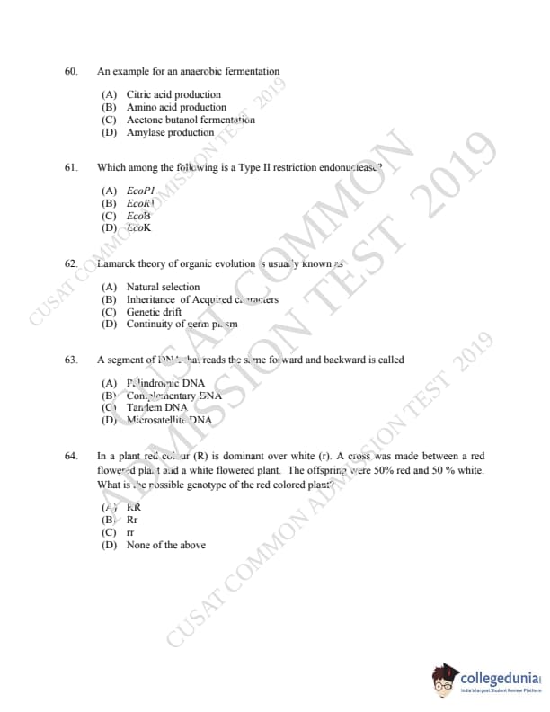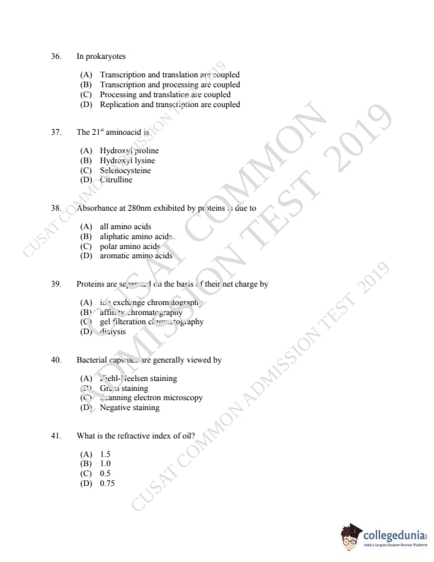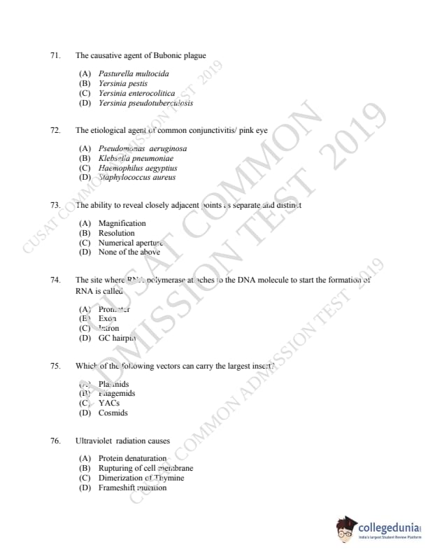 CUSAT CAT 2019 Microbiology Question Paper with Answer Key PDFs