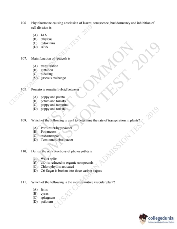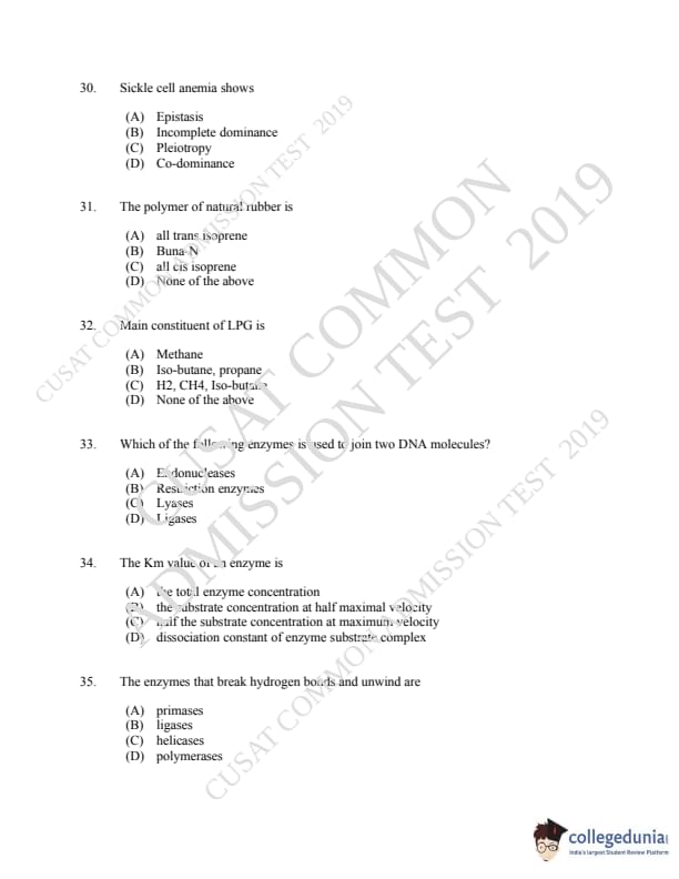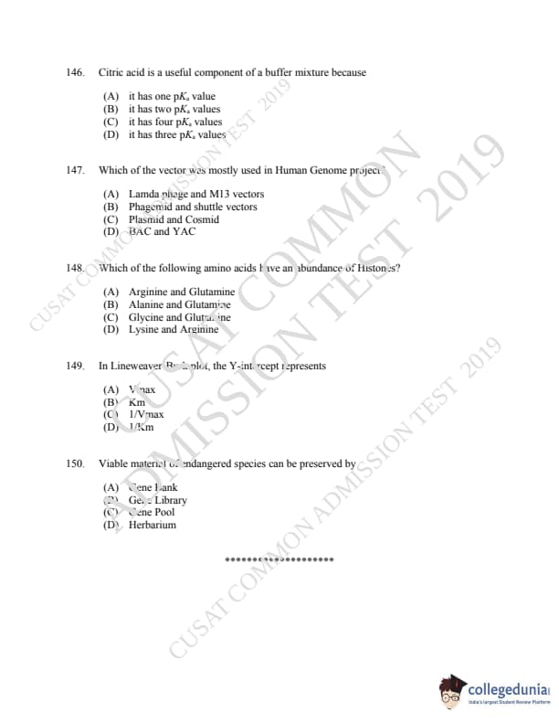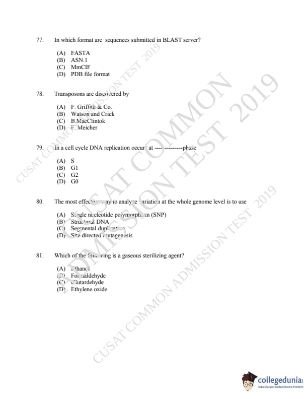 CUSAT CAT 2019 Microbiology Question paper with answer key pdf is available for download. The exam was successfully organized by Cochin University of Science & Technology. The question paper comprised a total of 150 questions.