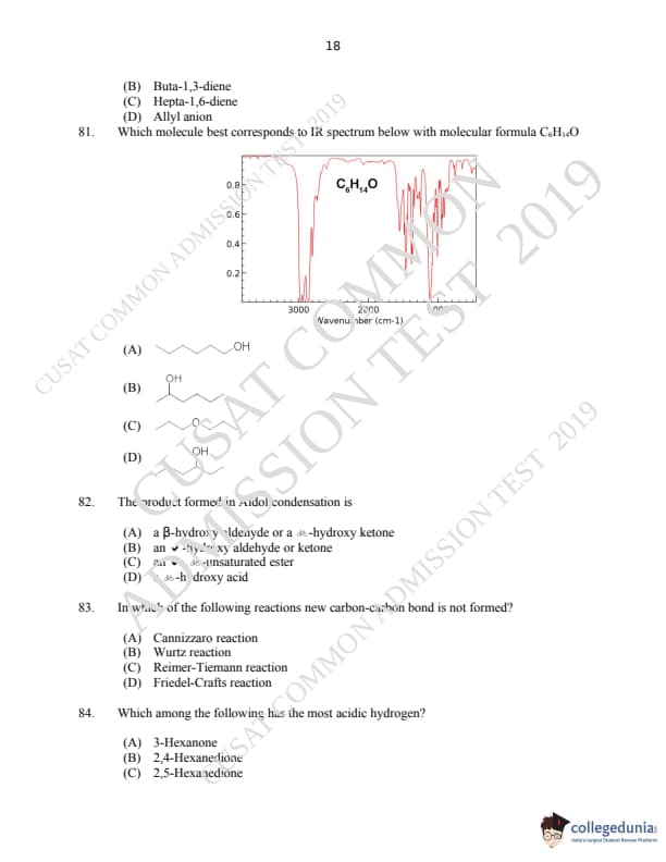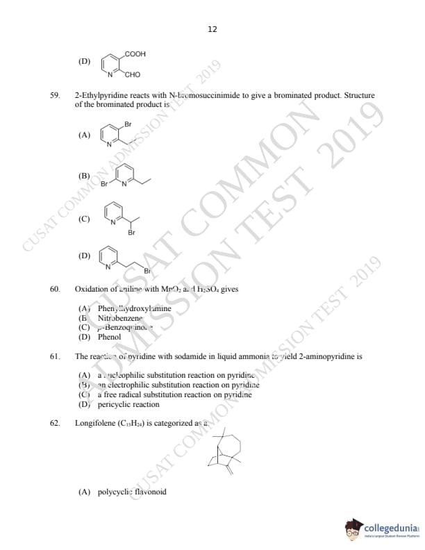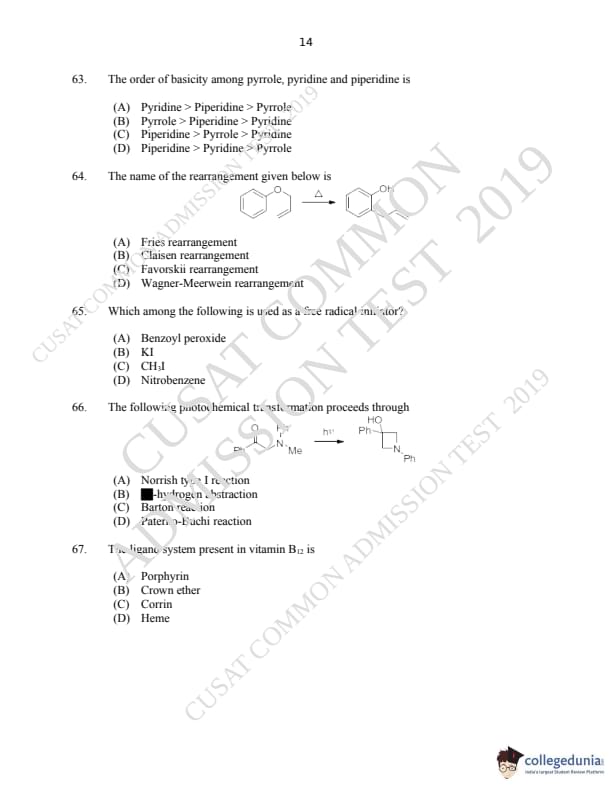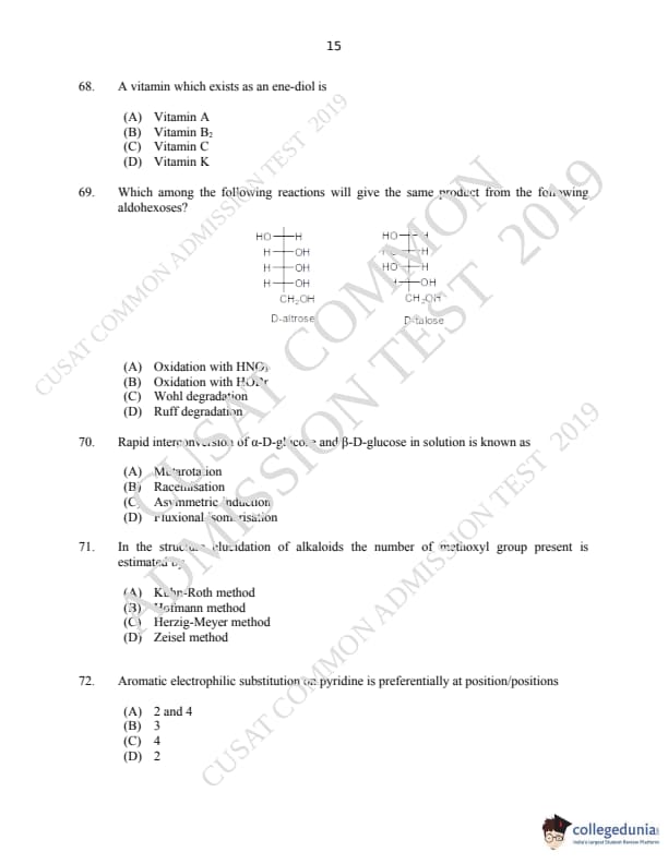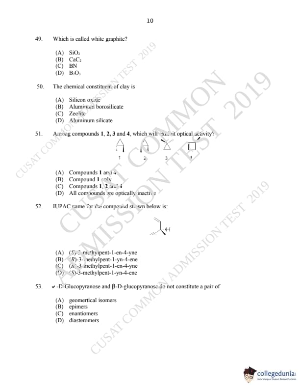 | CUSAT CAT 2019 M.Sc Chemistry Question Paper PDF | CUSAT CAT 2019 M.Sc Chemistry Answer Key PDF |