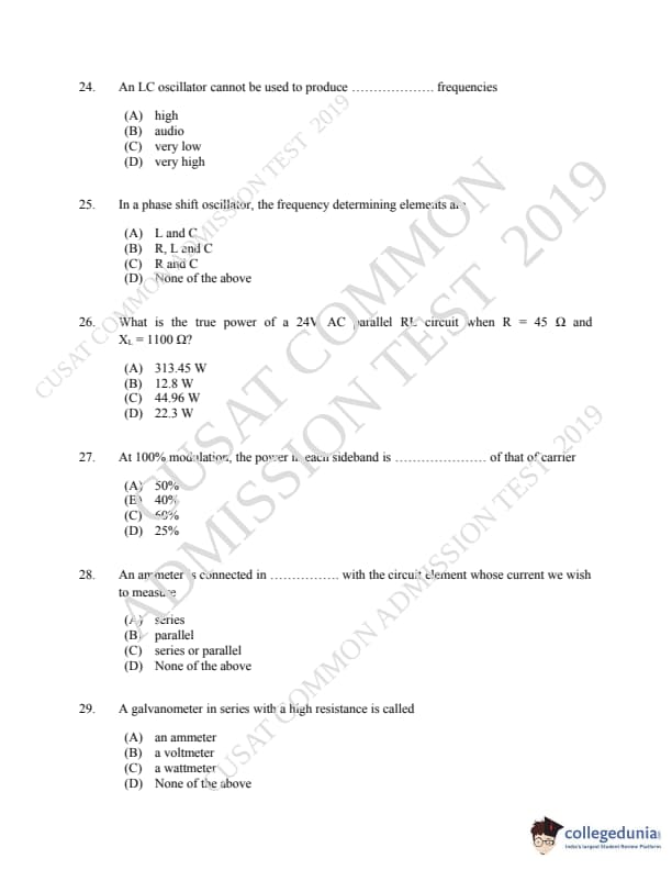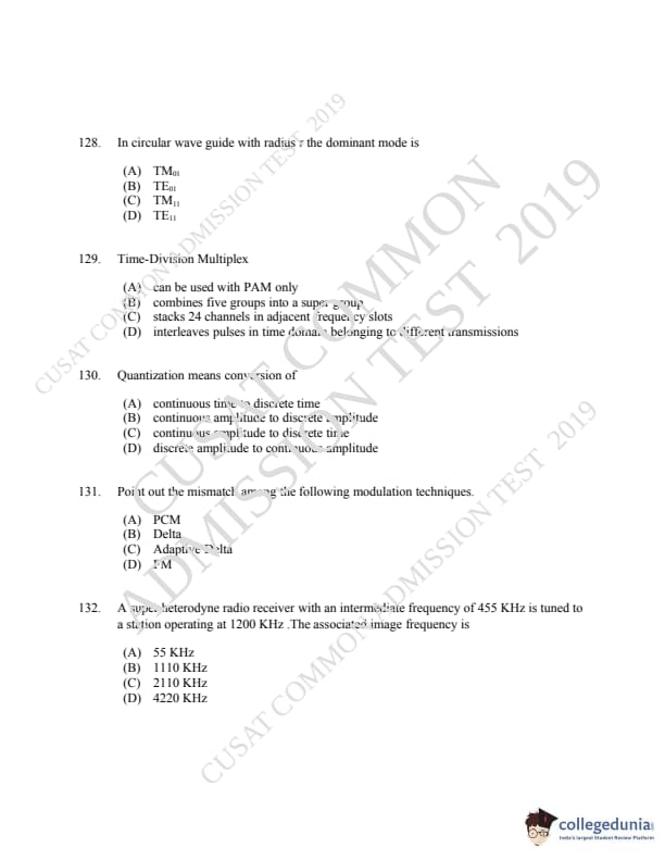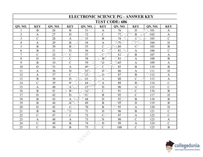 | CUSAT CAT 2019 M.Sc Electronics Question Paper PDF | CUSAT CAT 2019 M.Sc Electronics Answer Key PDF |