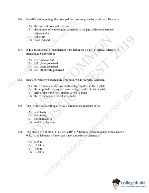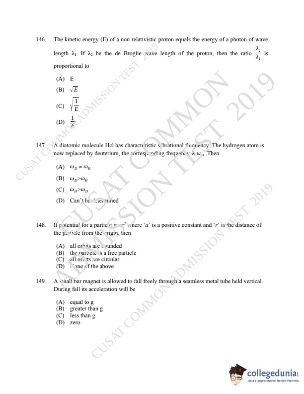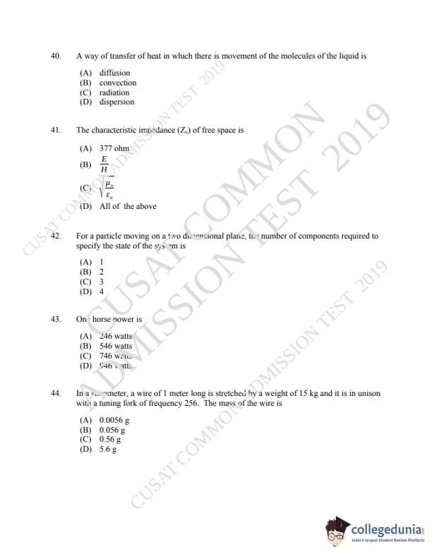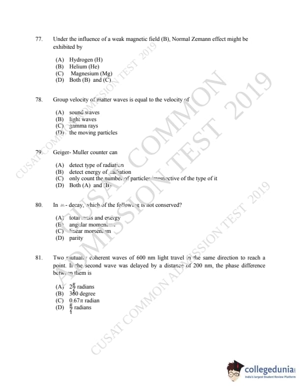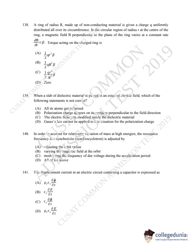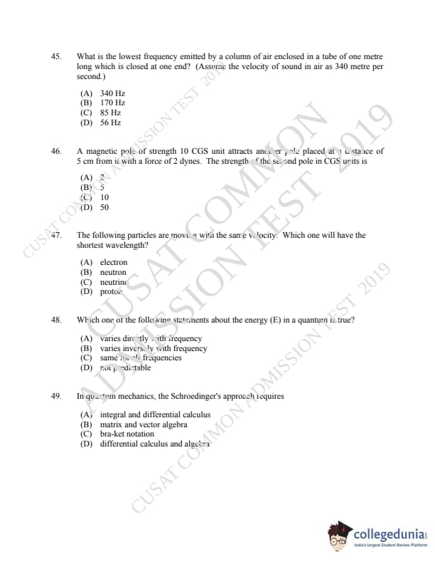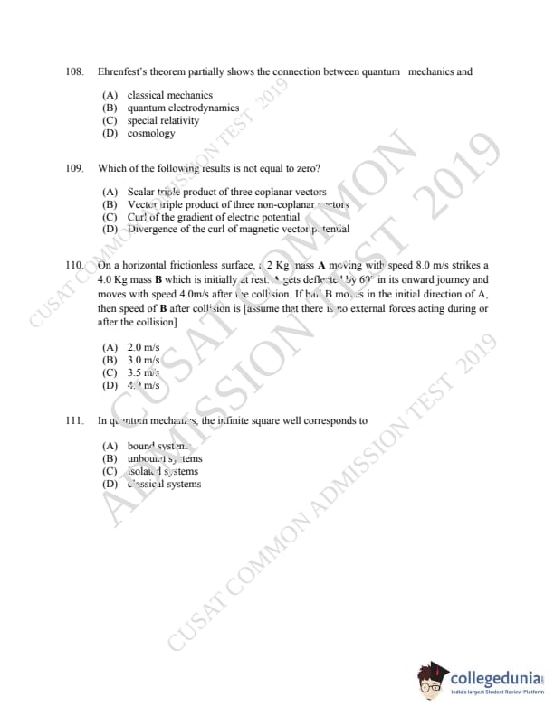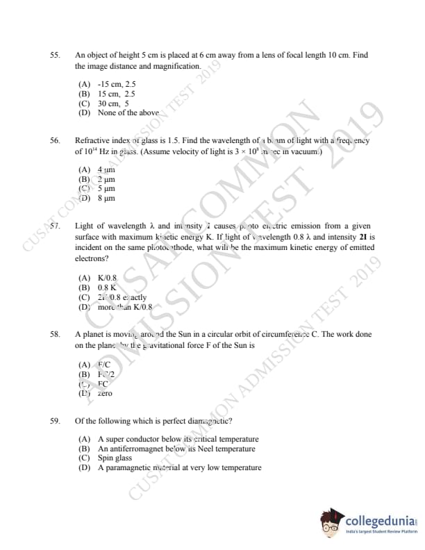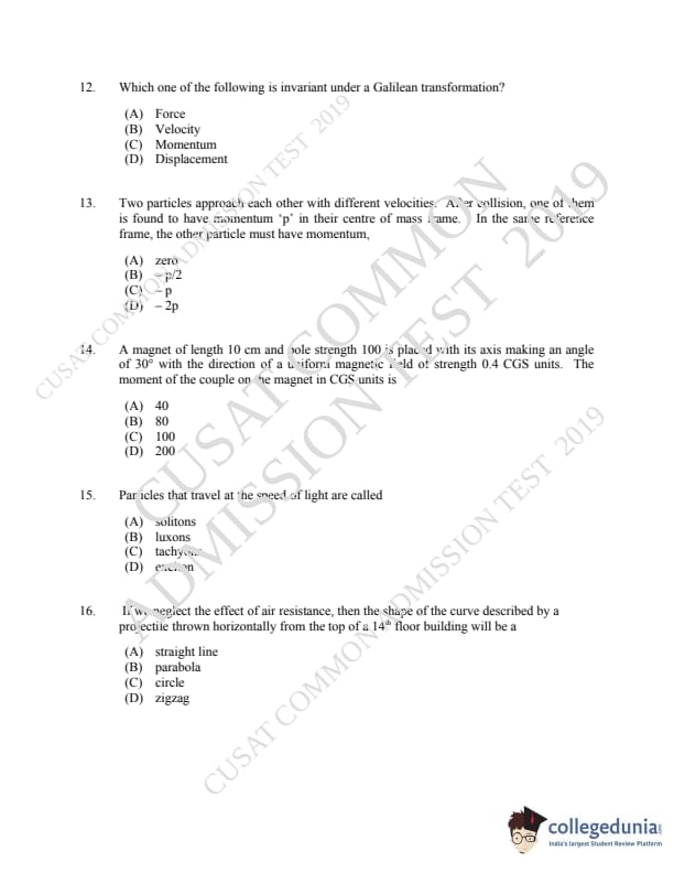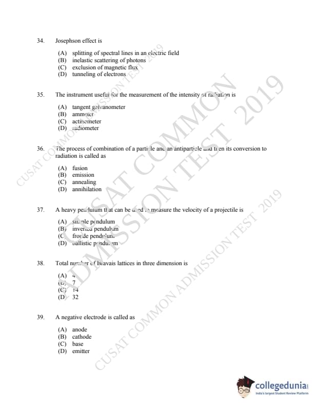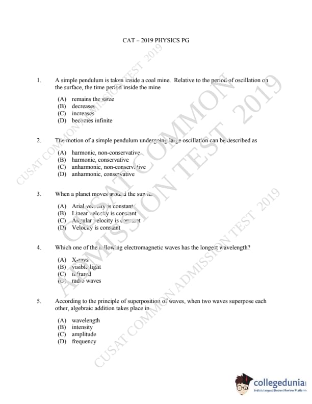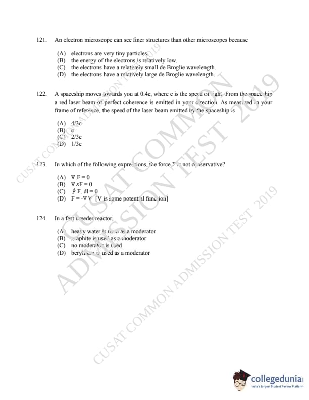 | CUSAT CAT 2019 M.Sc Physics Question Paper PDF | CUSAT CAT 2019 M.Sc Physics Answer Key PDF |