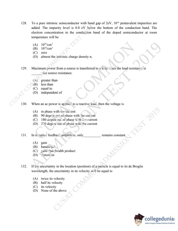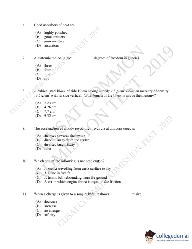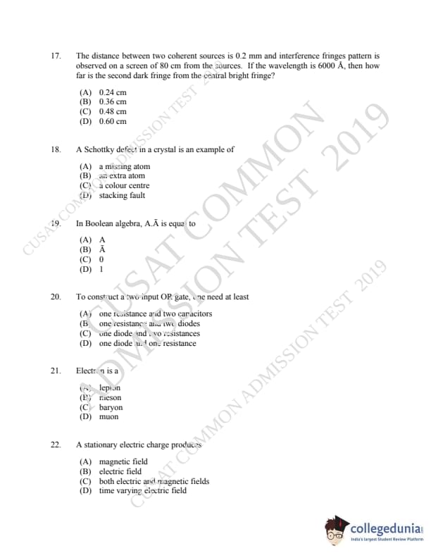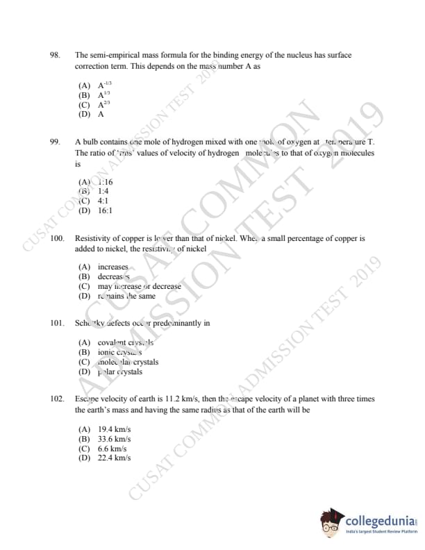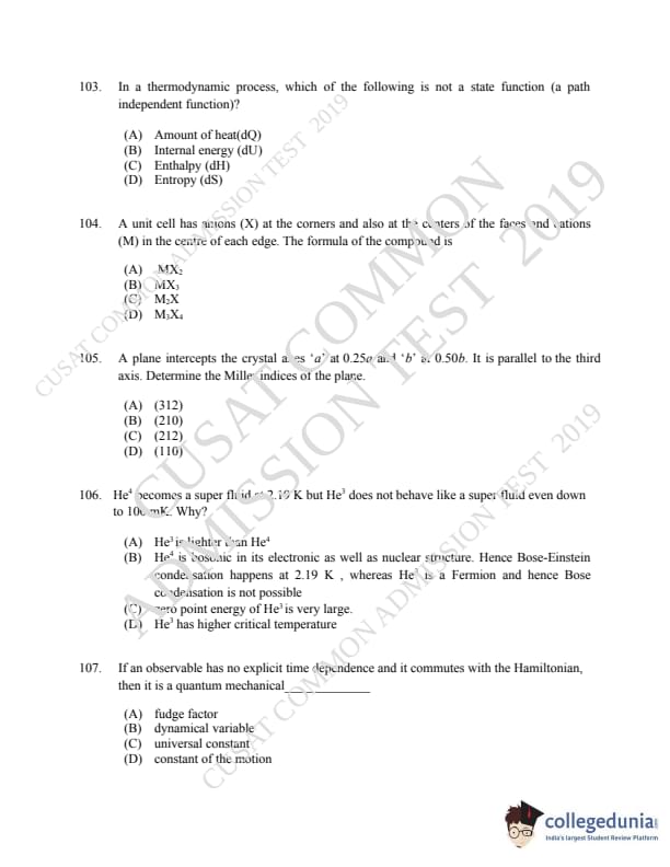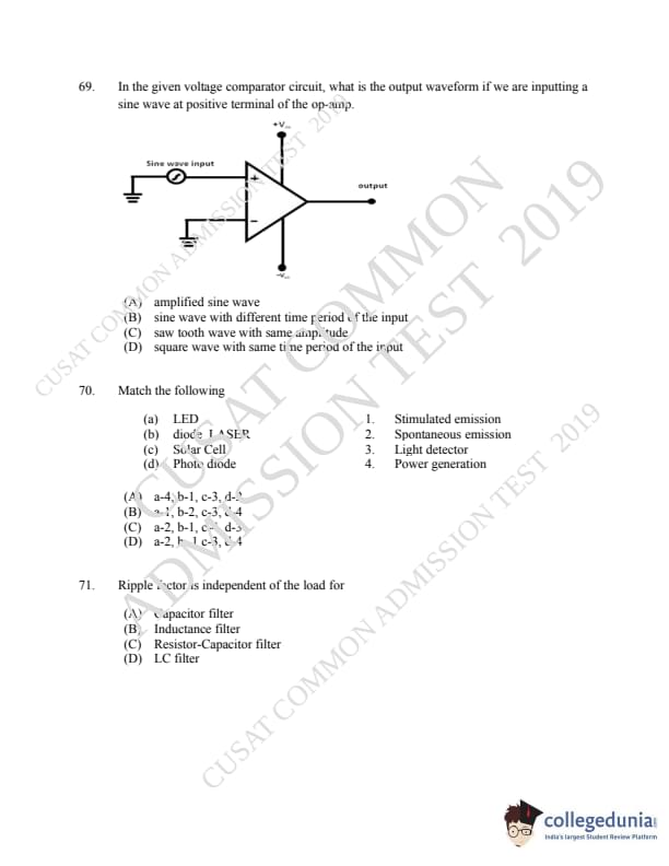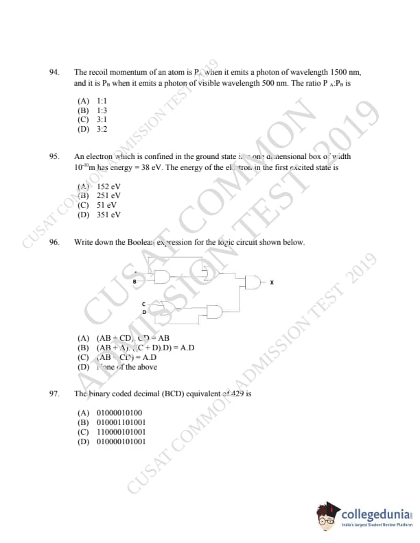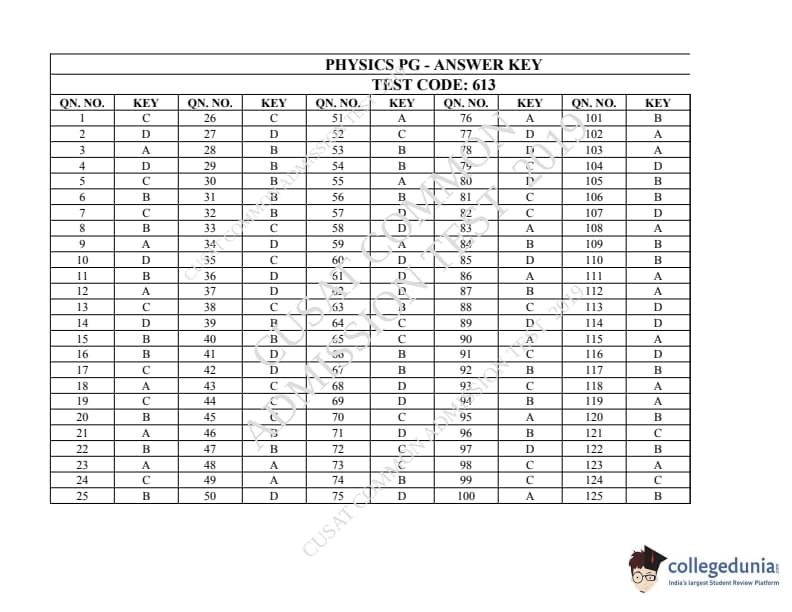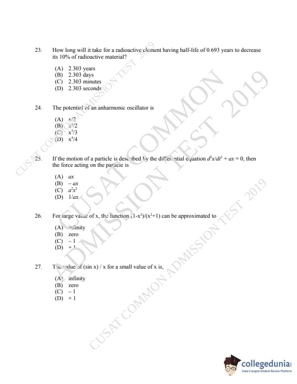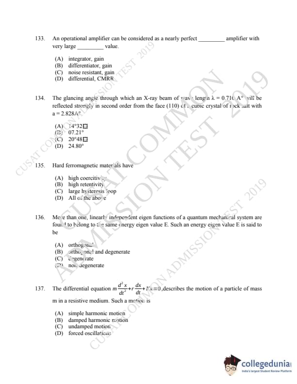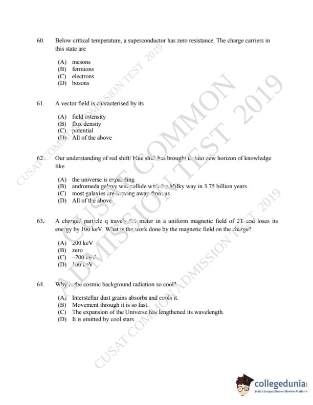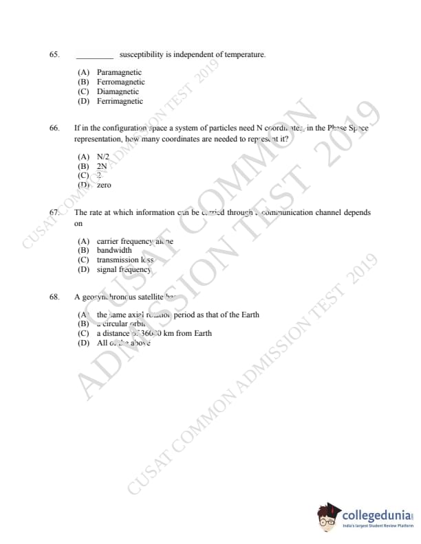 | CUSAT CAT 2019 M.Sc Physics Question Paper PDF | CUSAT CAT 2019 M.Sc Physics Answer Key PDF |