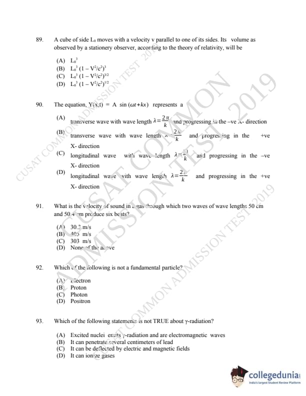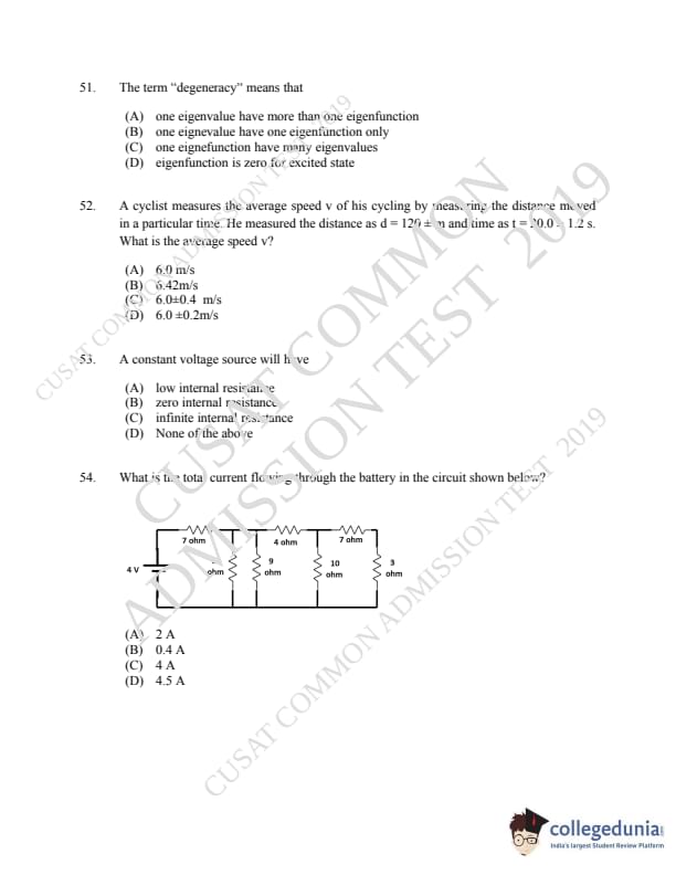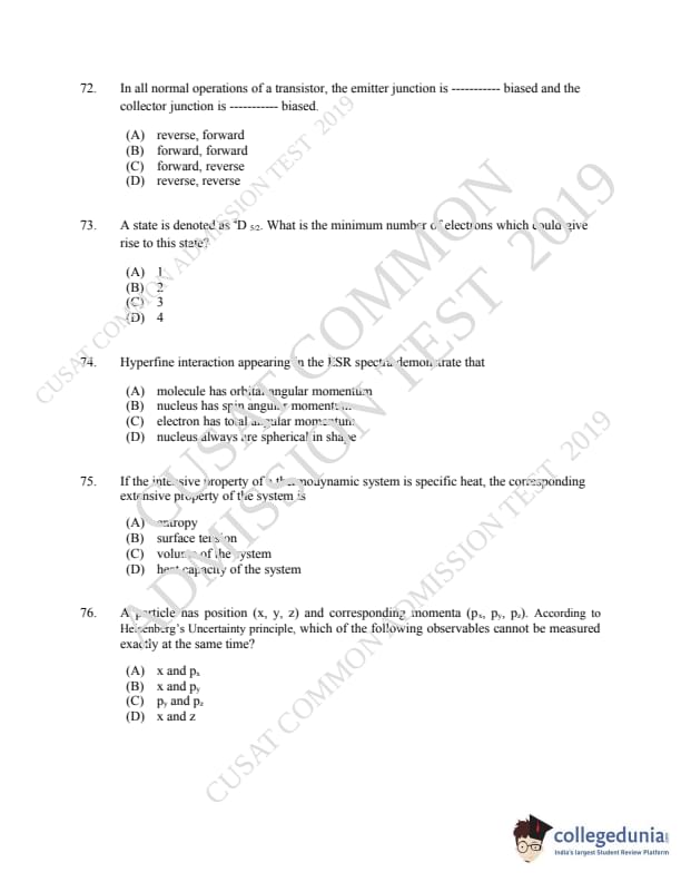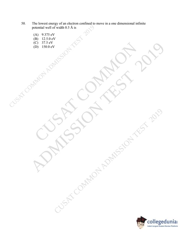 CUSAT CAT 2019 M.Sc Physics Question paper with answer key pdf is available for download. The exam was successfully organized by Cochin University of Science & Technology. The question paper comprised a total of 150 questions.