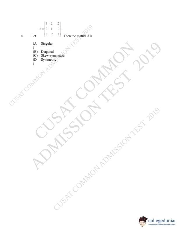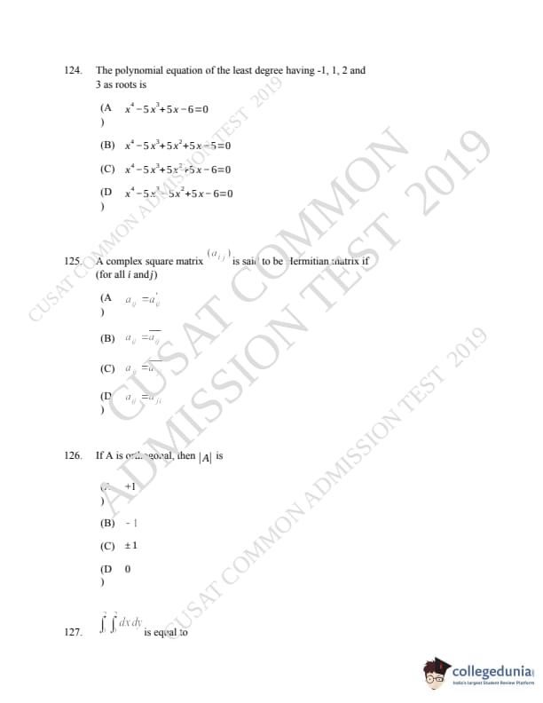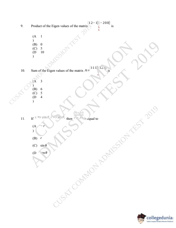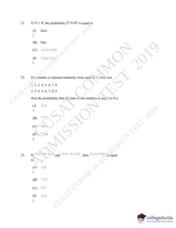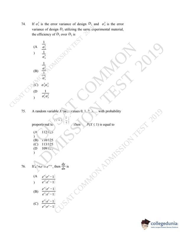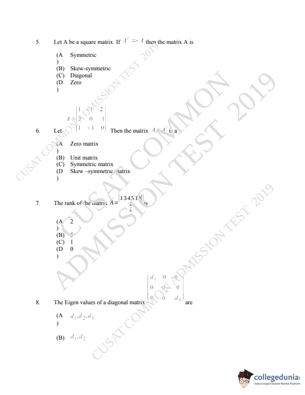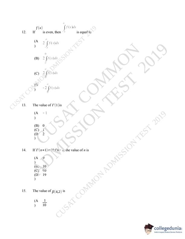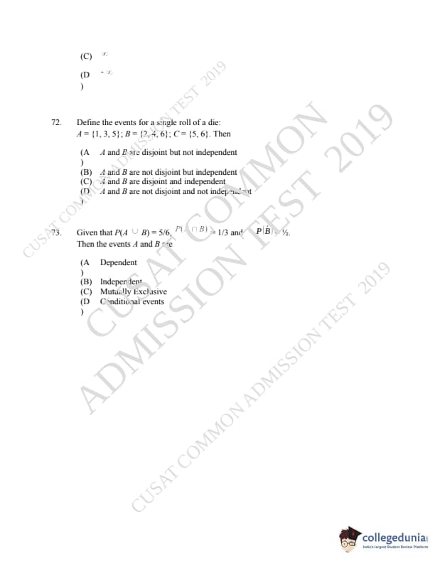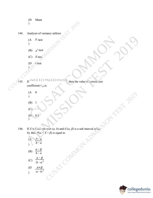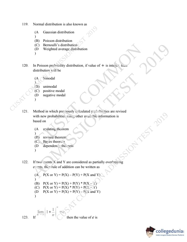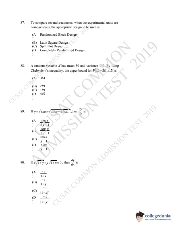 | CUSAT CAT 2019 M.Sc Statistics Question Paper PDF | CUSAT CAT 2019 M.Sc Statistics Answer Key PDF |